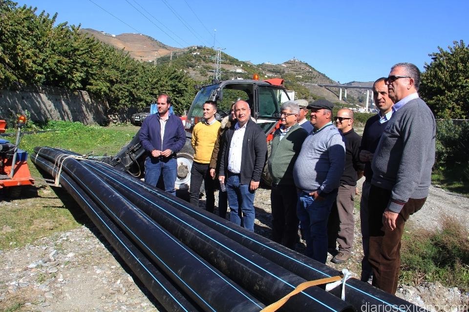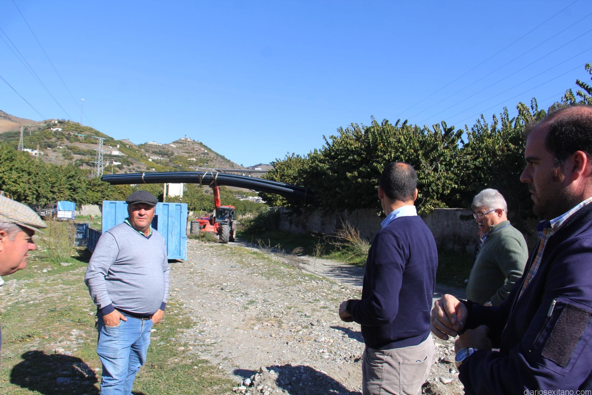 La instalación de la tubería para riego avanza paralelos al Rio Verde tal y como han comprobado los representantes de la Mancomunidad y Ayuntamiento de Almuñécar junto a comunidades de regantes sexitanas