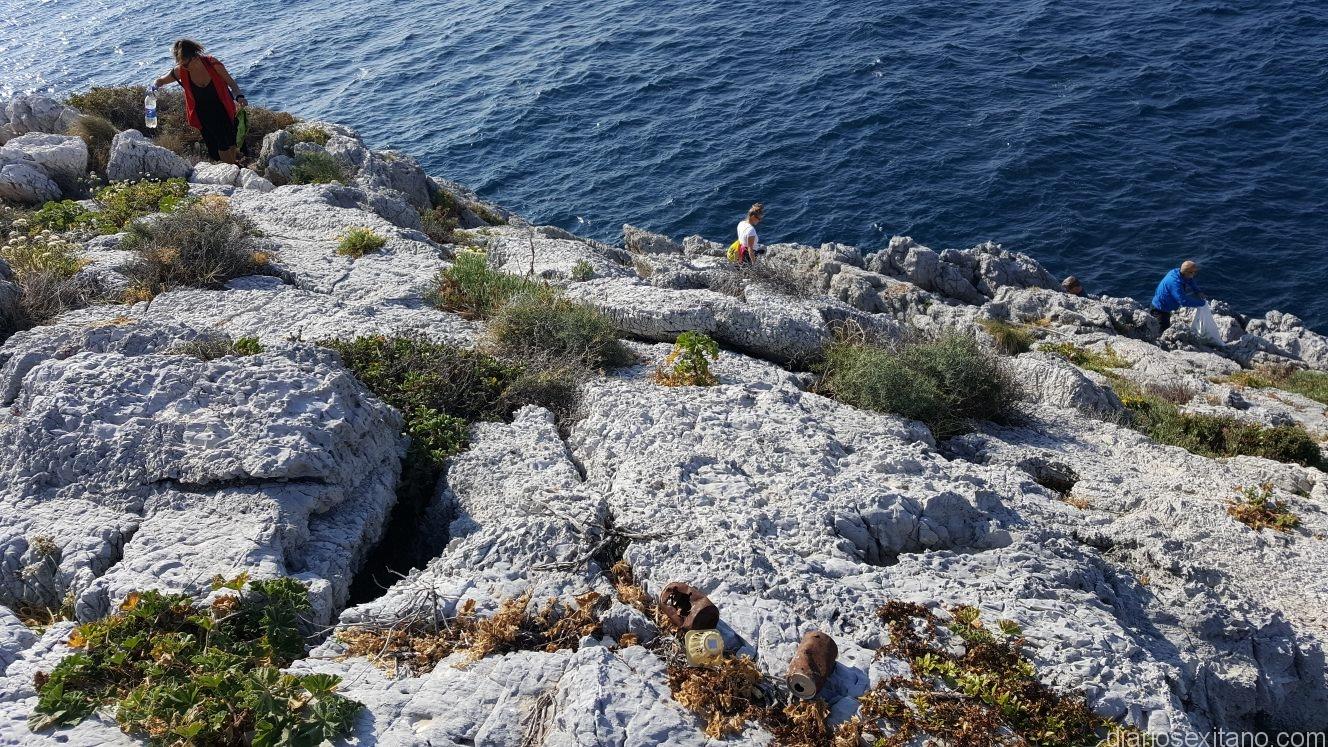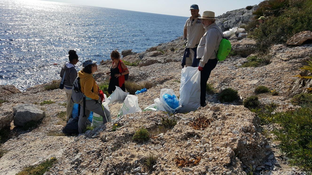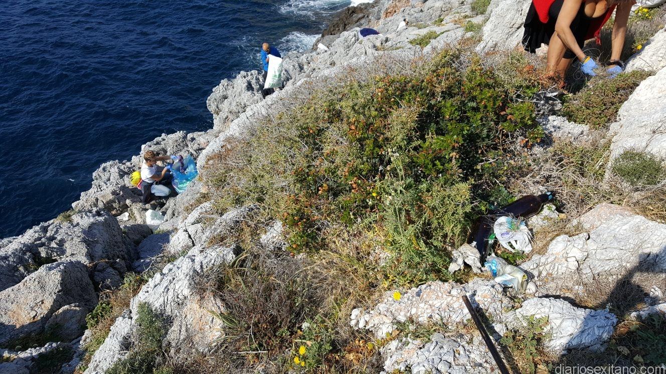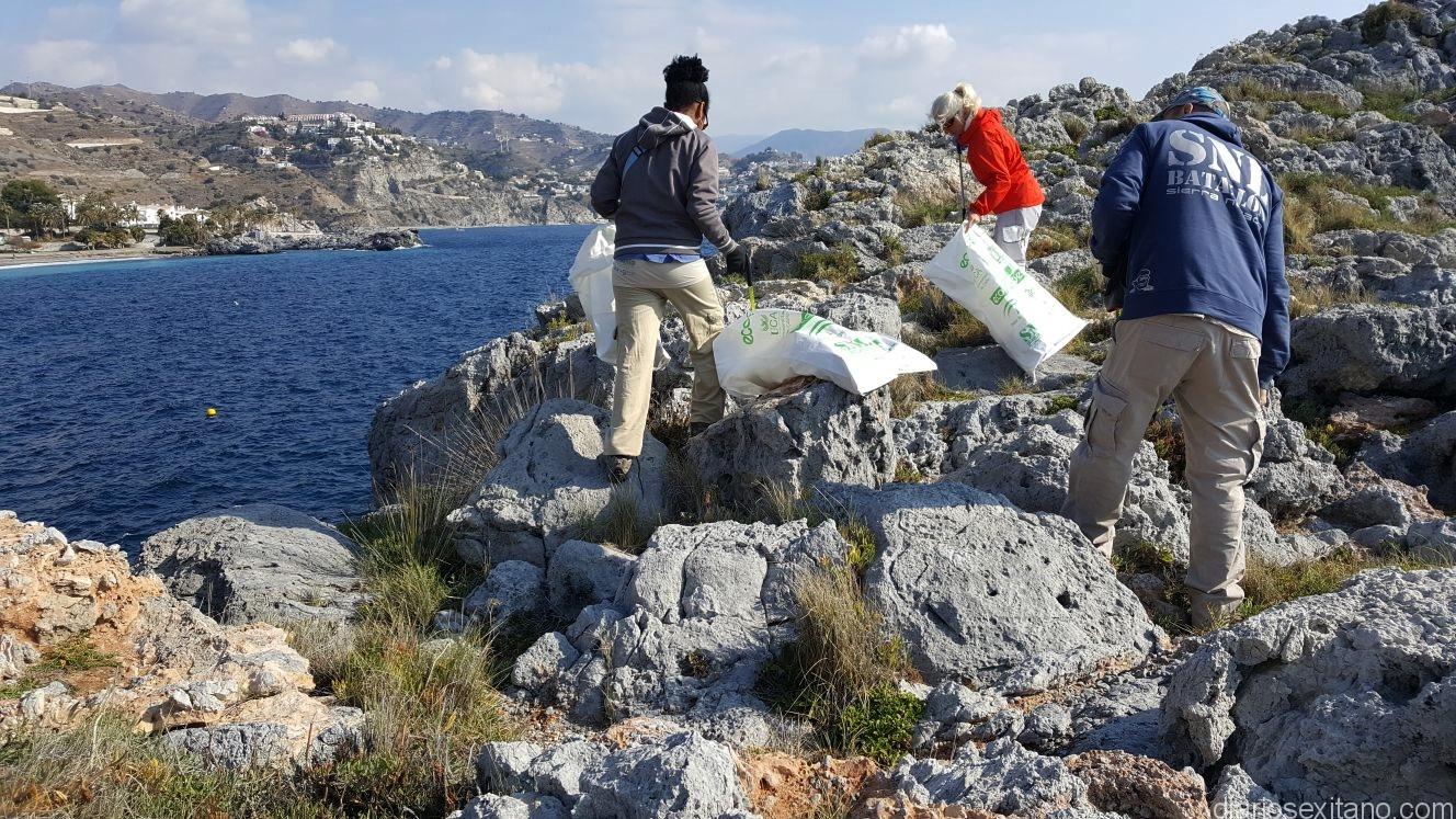 La acción consistió en la retirada de residuos de las rocas en la zona conocida como Punta de la Mona -también llamada por los pescadores como la Soguilla-, la Punta del Vapor y Los Berengueles y contó con el apoyo de la empresa concesionaria del servicio de limpieza municipal de Almuñécar, Fomento de Construcciones y Contratas (FCC), que se encargó de la recogida de la basura retirada por los voluntarios donde destacaba muchos resto de aparejo de pesca, pilas, latas y botellas de bebida…entre otras muchas, según informó el coordinador de la actuación, Carlos Ferrón