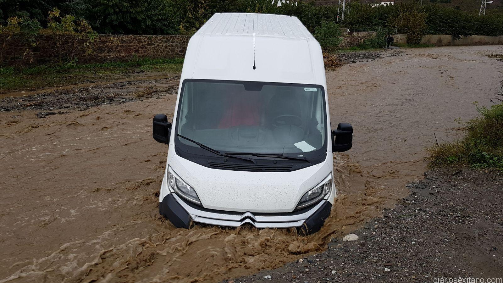 Los hechos han ocurrido a primera hora de esta tarde cuando el conductor, cuando una llamada alertó a la Policía Local de Almuñécar que a su vez solicitaron la ayuda de los bomberos. El hombre rescatado intentó cruzar el cauce con su furgoneta cuando transitaba entre el barrio El Moruno y el centro urbano almuñequero.