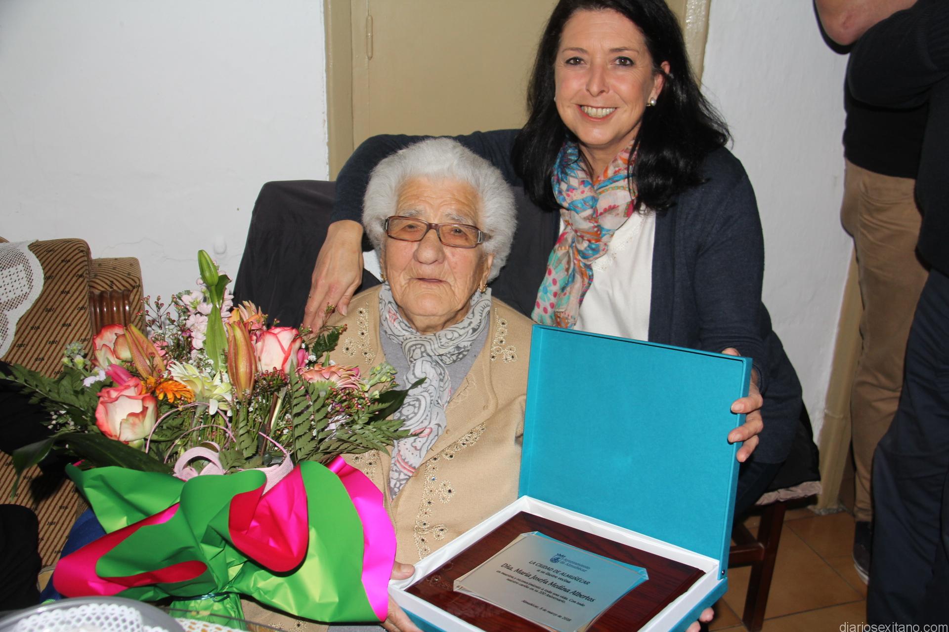 No todos los días hay cumpleaños tan entrañables y destacados como el que ayer cumplió la vecina de Almuñécar, María Josefa Medina Albertus, por ello la concejal delegada de Servicios Sociales y Tercera Edad, María del Carmen Reinoso, en nombre del Ayuntamiento sexitano quiso rendir un homenaje especial a esta vecina y por ello se sumó una entrañable fiesta que le preparó la familia de María Josefa.