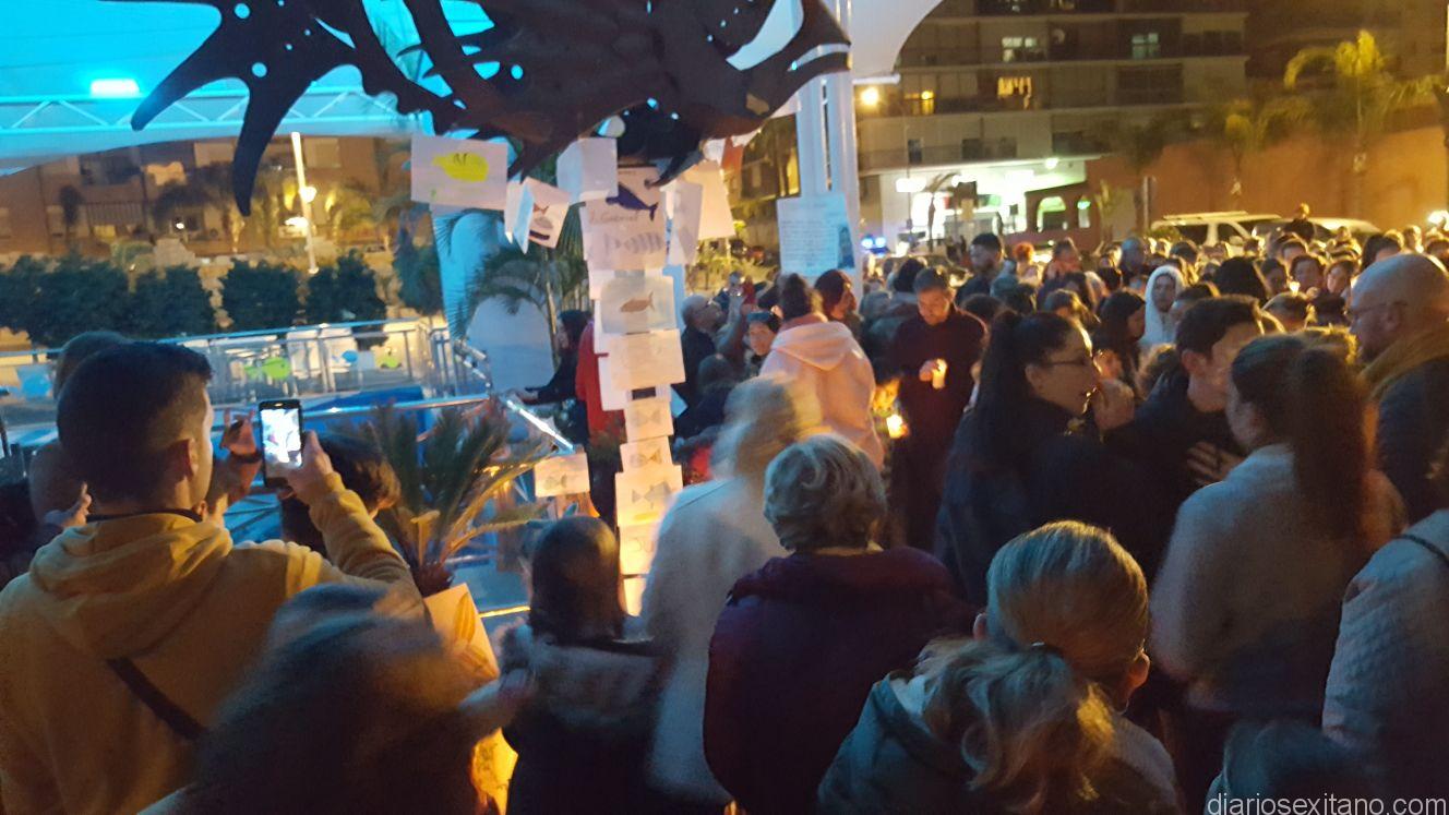 Herrera hizo la propuesta durante la concentración de varios cientos de vecinos, donde guardaron un minuto de silencio, portaron velas encendidas o depositaron dibujos de peces a la entrada del Acuario de Almuñécar.