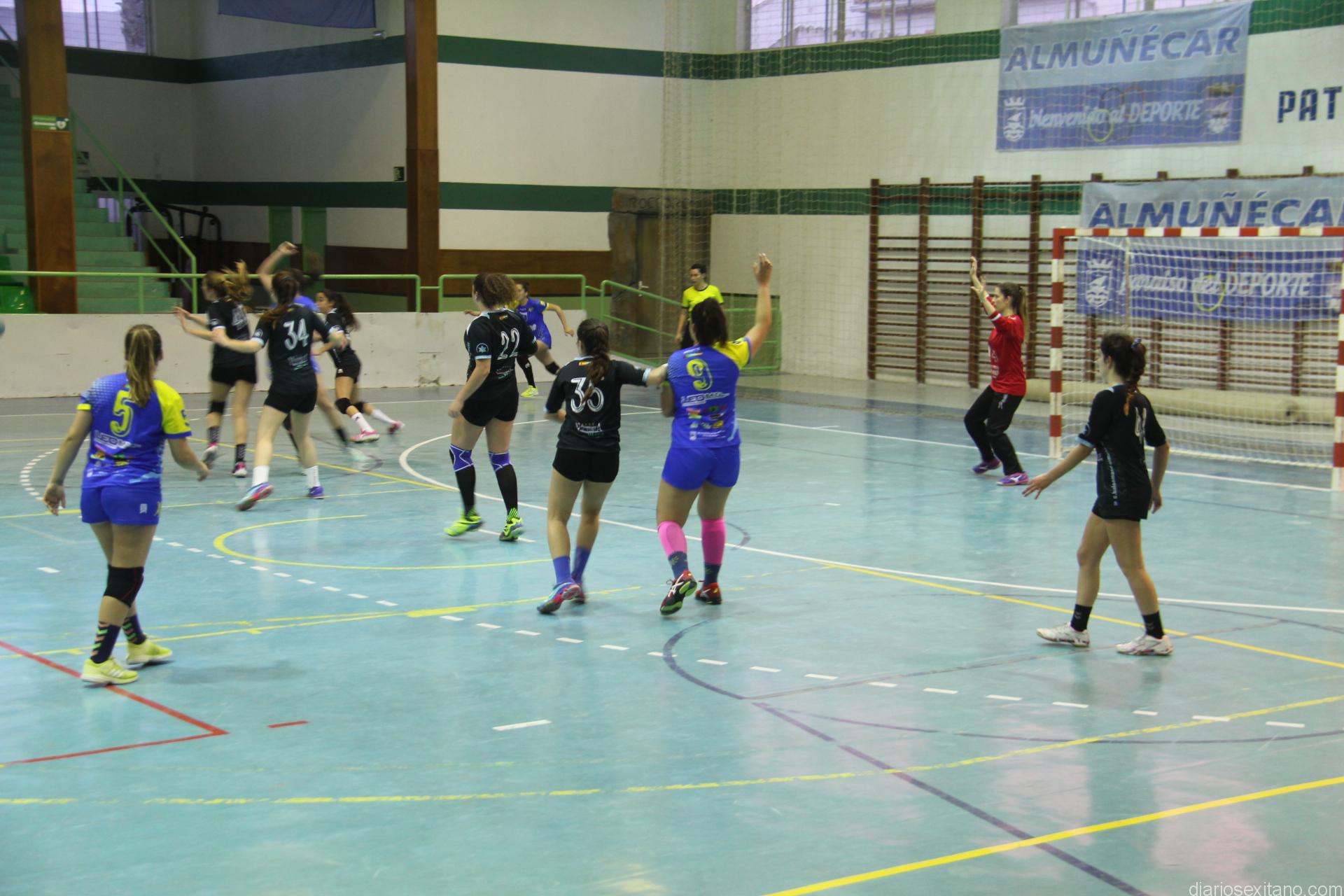 En la segunda parte, las malagueñas acortaron distancia e incluso llegaron a empatar el partido a falta de diez minutos para el final debido a las pérdidas de balón de las almuñequeras o las buenas intervenciones de la portera malagueña que fue la jugadora más destacada en este tiempo; sin embargo, las sexitanas volvieron a levantar el partido. Fue tras detener un penalti la portera suplente Elena. De nuevo tomaron ventaja en el marcador las locales con dos tantos que supieron mantener hasta el final, e incluso, pudieron ampliar en la última posesión del balón. En cuanto a las goleadoras destacar por las locales a Daniela Jerónimo (10) y Carmen Herrero (6); por las malagueñas y empatadas a 5 tantos: Carmen Peláez, Valery Fernández y Laura Sánchez.