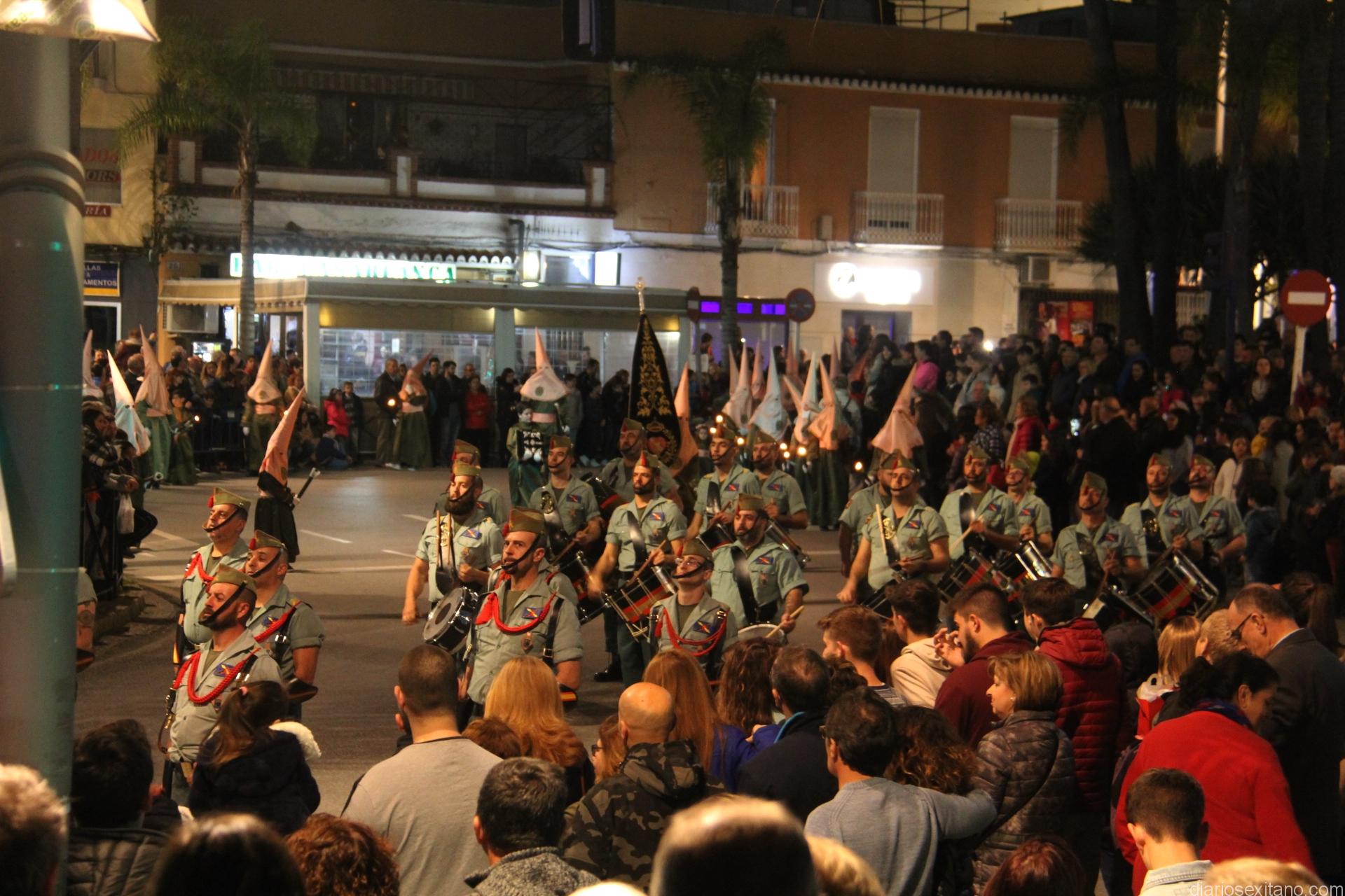 La buena temperatura y el gran cortejo procesional que abría una representación de tambores y cornetas de caballeros legionarios hicieron que las calles y avenidas se llenaran de público durante todo el recorrido. Nunca se recordaba un Lunes Santo con tantas personas en la calle. Desde una hora antes de la salida del paso, que realizara el imaginero granadino, Miguel Zúñiga Navarro, del templo parroquial de la Encarnación, ya aguardaba expectante el público.
