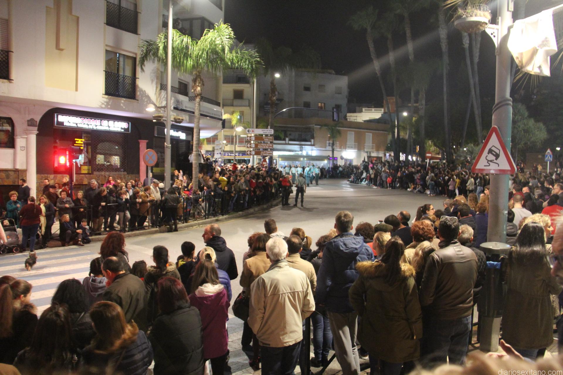 Miles de almuñequeros y visitantes se echaron a la calle para recibir el paso a la Cofradía de Nuestro Señor de la Oración en el Huerto. Tras una Domingo de Ramos intenso de la Semana Santa Sexitana, con las dos primeras cofradías que abrían el programa oficial: la Borroquita, por la mañana, y, el Despojado y Salud, en horario de tarde-noche, llegaba el turno, este Lunes Santo, a la citada cofradía conocida popularmente como el Huerto.