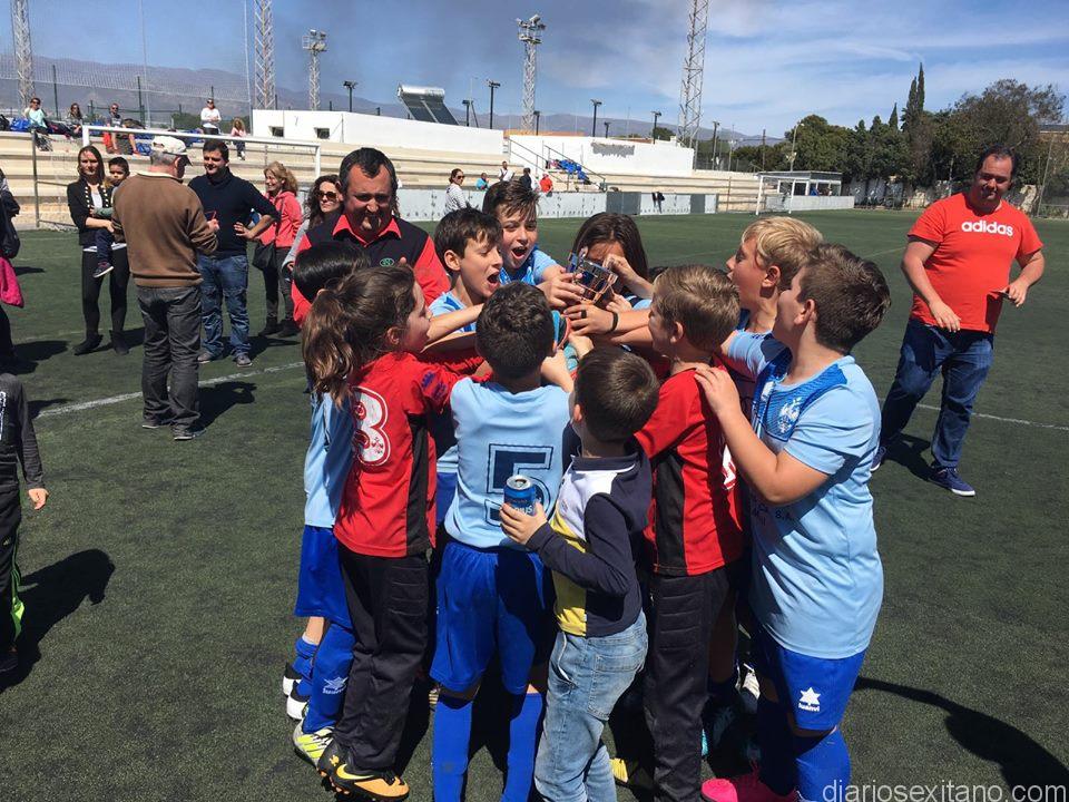 El equipo benjamín del Almuñécar 77, que entrena Miguel de la O, se le da bien por tierras almerienses donde juega porque en poco tiene lleva ya conseguidos dos torneos. Este pasado fin de semana se proclamó campeón del Torneo de Fútbol Base celebrado en la localidad almeriense de La Mojonera y viene a sumarse al VII Trofeo Andújar Oliver que se celebró en Huércal de Almería.