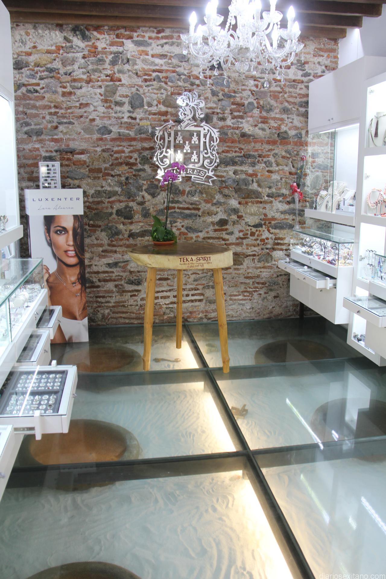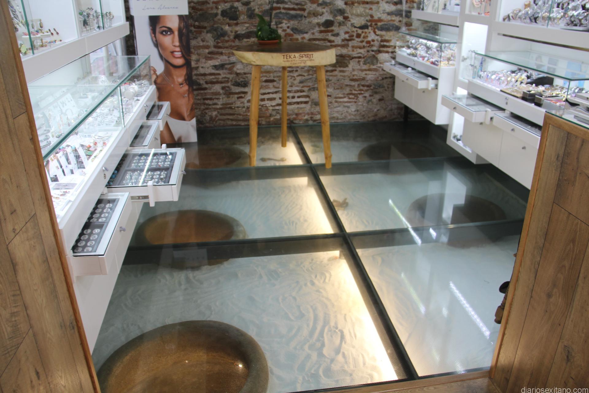 Entrar en la joyería con el suelo acristalado e iluminado y moverse sobre el mismo para algunas personas no llegan a aceptarlo por miedo, pero la mayoría tras la sorpresa, no dudan, incluso, en hacer fotografías.