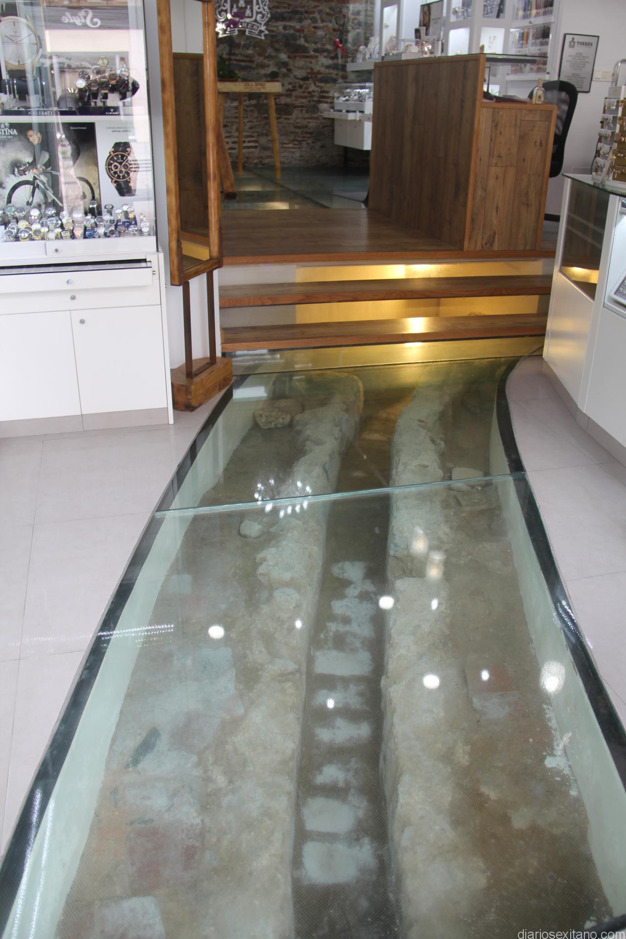 La iniciativa partió del propietario, Manuel Torres, que regenta esta joyería desde hace 25 años, junto a su familia. “La necesidad de ampliar el establecimiento hizo que adquiriera este local de 46 m2 y que está colindante al anterior y en el mismo edificio. Cuando decidimos iniciar las obras para rehabilitarlo nos encontramos con estos elementos históricos: las tinajas, que ya sabíamos de su existencia, y la canalización, que surge al iniciar la excavación para el instalar el saneamiento. Así las cosas, con la ayuda y asesoramiento de un arqueólogo, apostamos por incorporarlo al local como un atractivo más”, explica Manuel Torres.