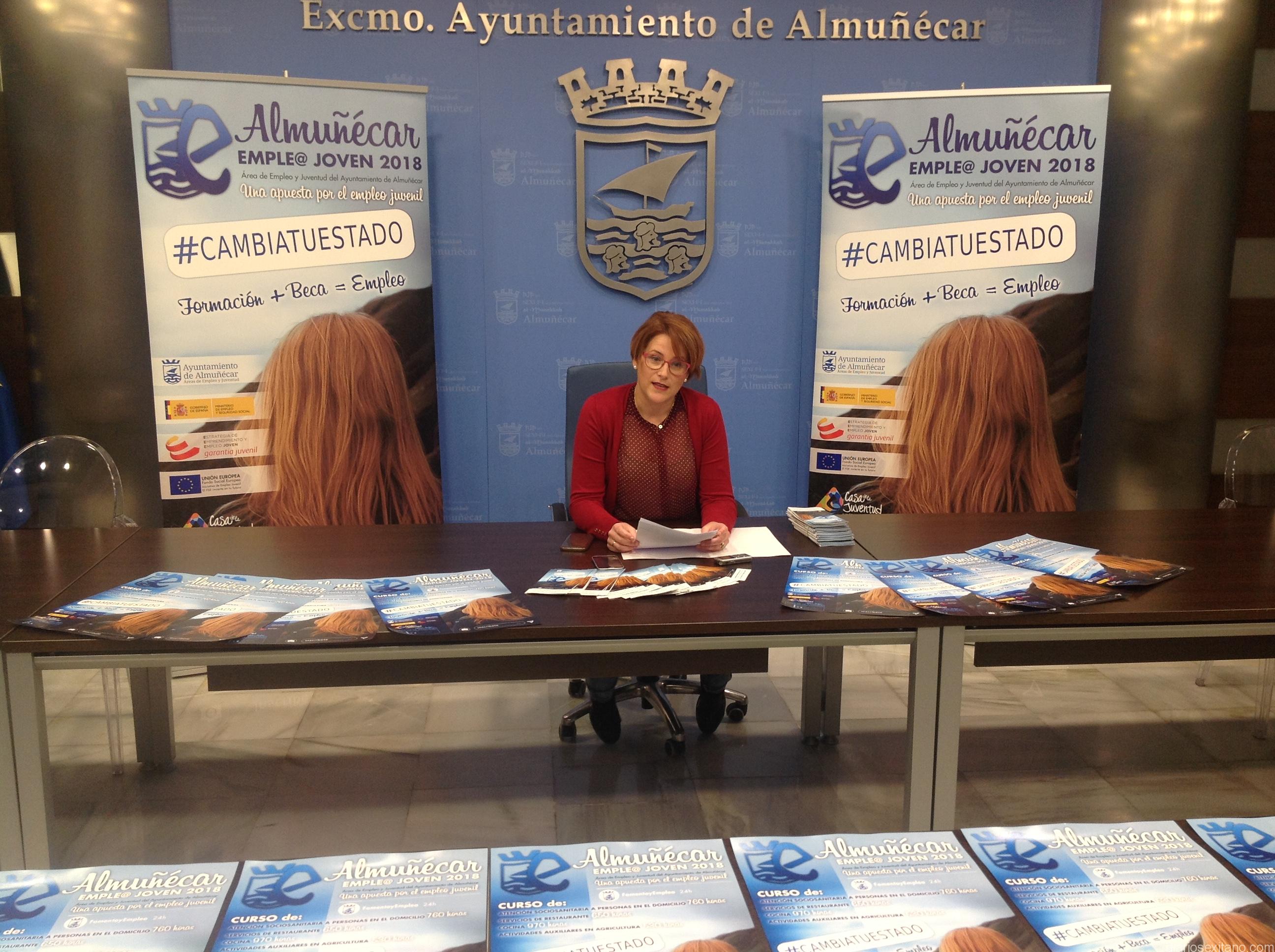 La concejal-delegada de Empleo y Juventud del Ayuntamiento de Almuñécar, María del Mar Medina, ha presentado el programa de empleo juvenil que, bajo el nombre de “Almuñécar Empleo Joven 2018”, se pondrá en marcha en las próximas semanas con el objetivo general de “mejorar las competencias profesionales de las personas jóvenes no ocupadas y no integradas en los sistemas de educación o formación independientemente de su nivel formativo, con el fin de reforzar su empleabilidad y conseguir las integración de las mismas en el mercados de trabajo”, según manifestó la edil almuñequera de Empleo y Juventud.