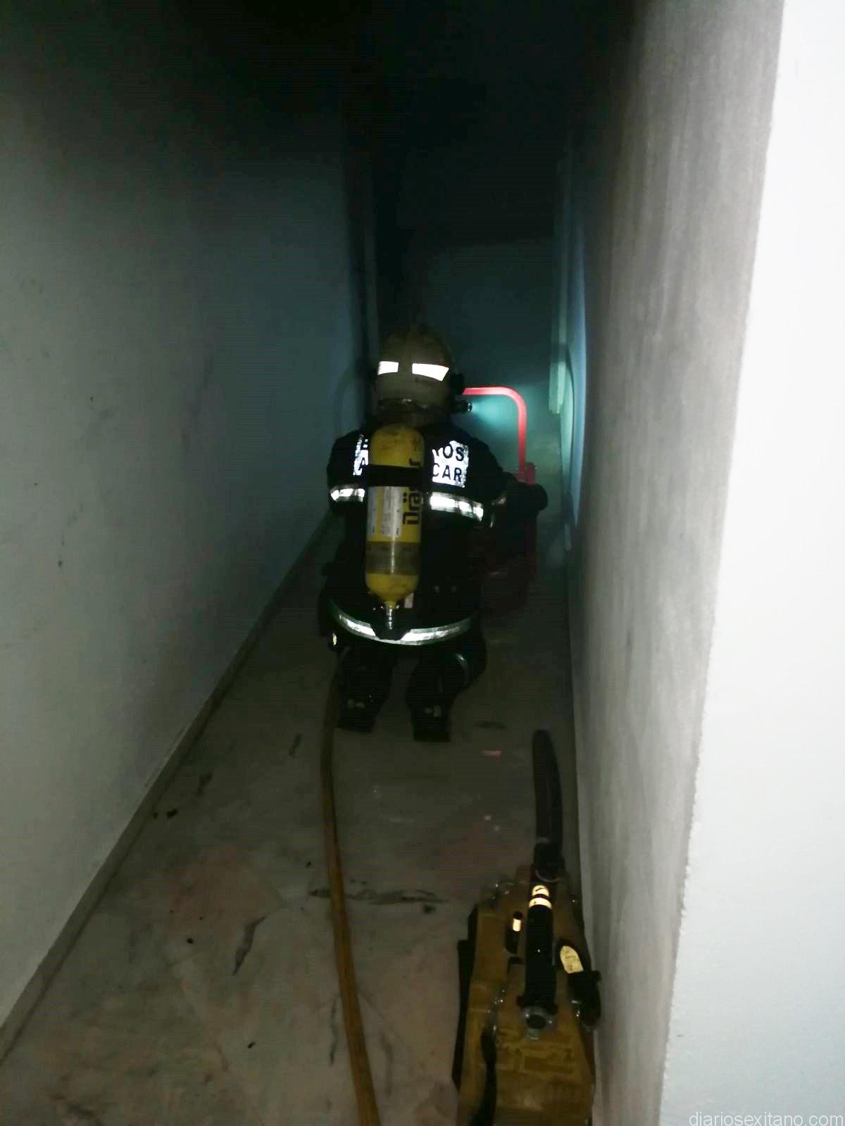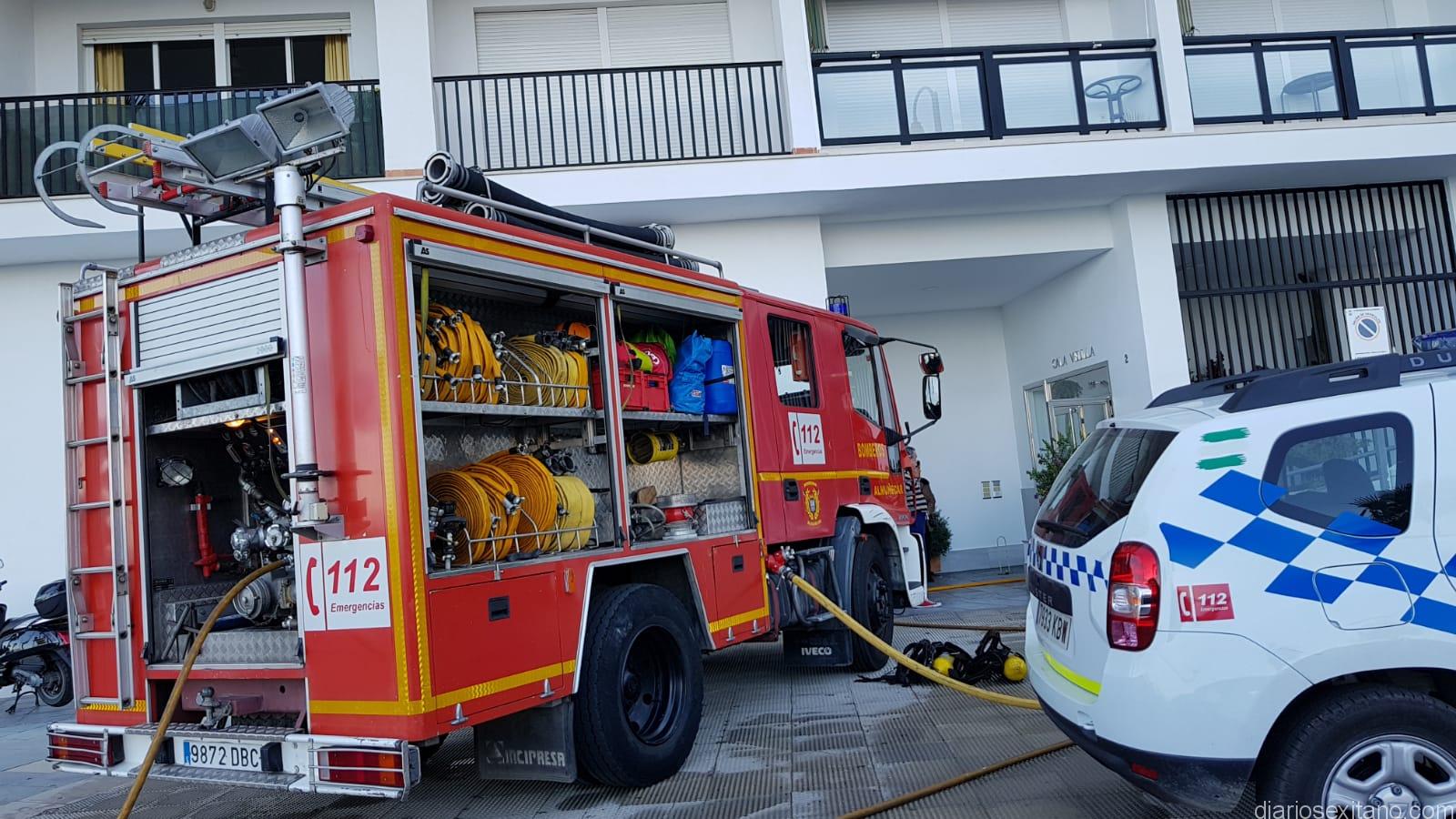 Los hechos se iniciaron sobre las 18,30 horas cuando el retén de guardia del Parque de Bomberos de Almuñécar recibió la llamada del Servicio de Emergencias alertando del fuego de un vehículo en el citado edificio.
