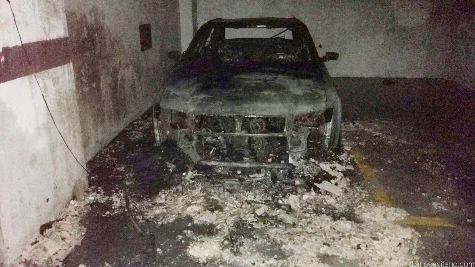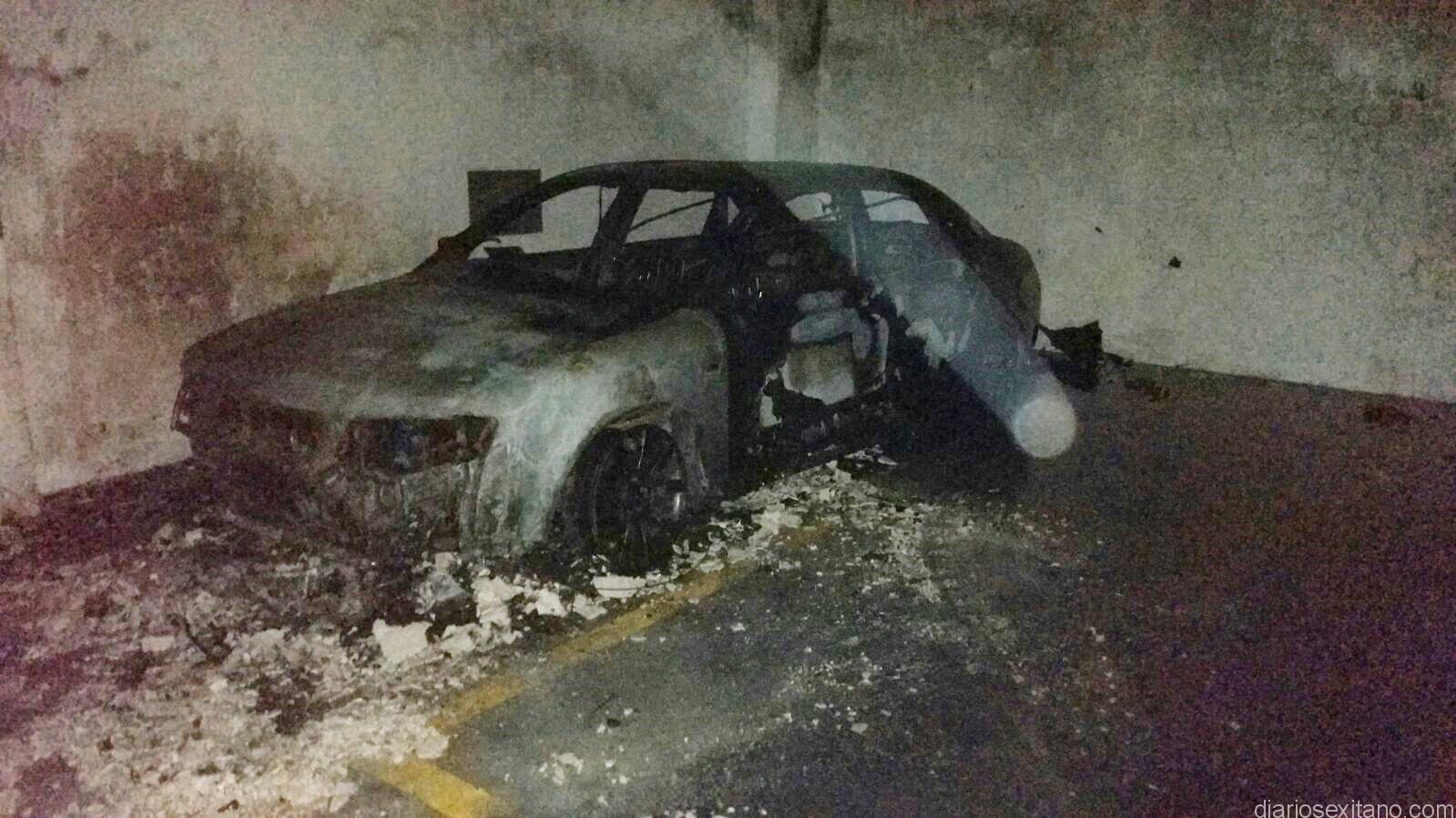 Un vehículo quedó totalmente calcinado tras sufrir un incendio cuando estaba estacionado en el aparcamiento privado situado en la tercera planta superior del edificio Cala Velilla, en el número 2 del Paseo de Velilla. El fuego fue sofocado por los Bomberos de Almuñécar que tuvieron que emplearse a fondo durante tres horas para evitar que las llamas se propagaran a las viviendas, según informó un portavoz de los Bomberos sexitanos.