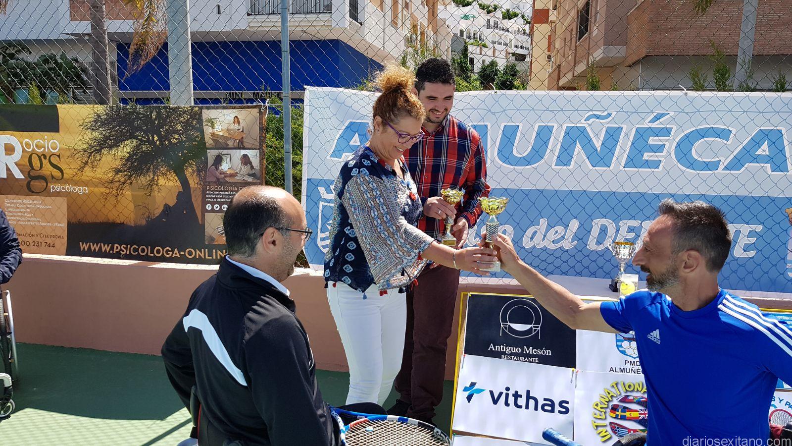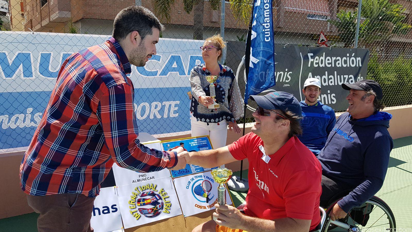 En el acto de entrega de entrega de premios estuvo presente el coordinador de Deportes, Javier García, quien ha colaborado, codo con codo, con la organización. Después de entregar los trofeos se le concedió al jugador de Málaga, Alfonso Jiménez, el óscar del club “ya que debutaba como jugador y sólo con tres meses de entrenamiento ya se le ve la técnica. Promete ser un gran tenista de esta modalidad”, según manifestaba, María Dolores Ruiz, quien felicitó a los jugadores y agradeció el apoyo de la Federación Andaluza de Tenis, el Comité de Tenis de Silla de Ruedas y al Patronato de Deportes de Almuñécar “porque pone todo muy fácil cuando hay un evento en sus instalaciones”, señaló.