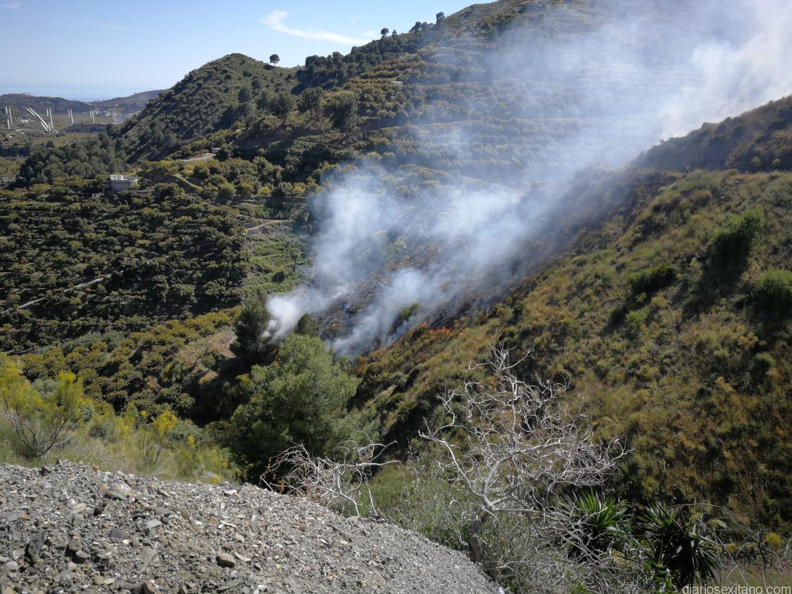 El fuego, que arrancó sobre las 16 horas, se produjo como consecuencia de una quema de resto de poda de chirimoyo y se prolongó hasta las 21 horas. Durante este tiempo el reten de bomberos de Almuñécar con el ayuda de vehículos BRP y UPI, tuvieron que emplearse a fondo para controlarlo y apagarlo, utilizando para ello agua de algunas albercas de riego situadas en la zona.