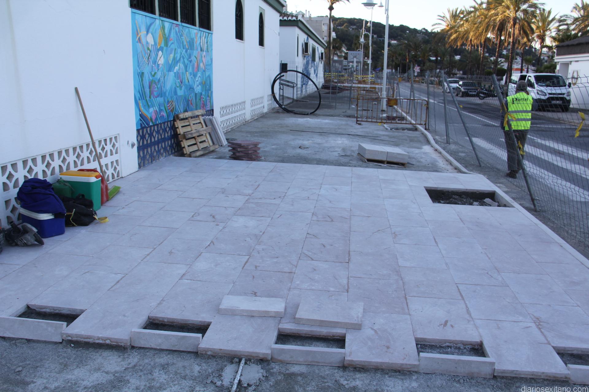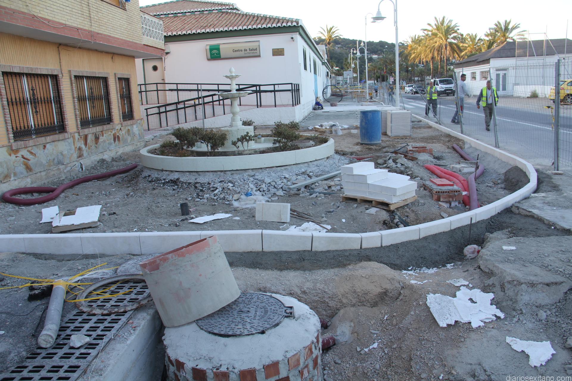 Por cierto que desde esta semana ya se procede al nuevo acerado para lo cual se está utilizando marmolillo blancos y solería de mármol de Sierra Elvira, que realzará todo el entorno de acceso principal. Mientras tanto, se ha procedido a la retirada de las palmeras que ocupaban la zona de influencia de la rotonda en la puerta del Mercado Municipal y calle Gonzalo Barbero, al tiempo que sigue adelante la construcción de las canalizaciones en la desembocadura de la Rambla del Espinar.