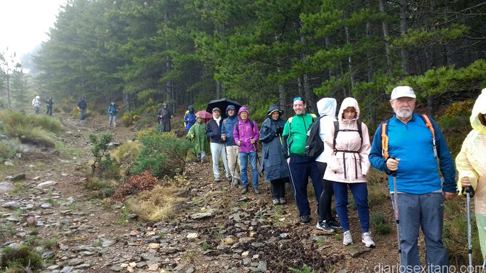 Los senderistas sexitanos, guiados por Enrique Garín y Francisco Novo, disfrutaron de una espectacular ruta que no defraudó a los participantes. Arrancó con un día perfecto de temperatura teniendo en cuenta que transcurre por una altitud cercana a los 1200 metros sobre el nivel del mar. Los elementos climatológicos estuvieron presentes, incluido una ligera llovizna al final del recorrido.