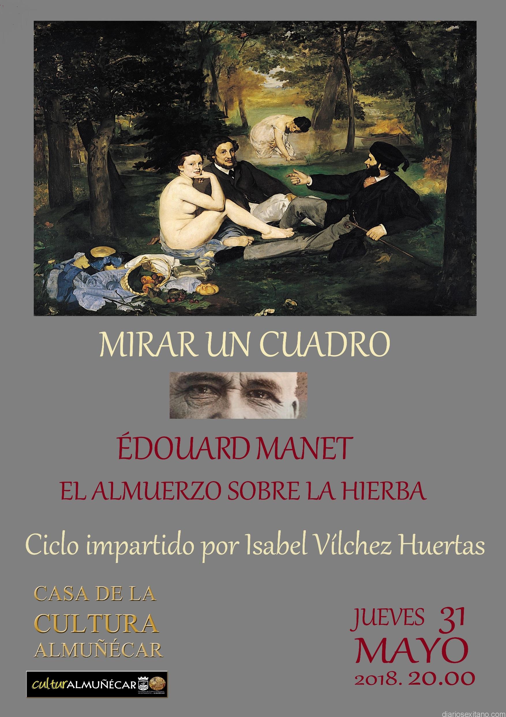 La charla conferencia sobre la obra “El almuerzo sobre la hierba” del pintor francés, Édouard Manet, pone este jueves el broche, no solamente a la agenda cultural del mes de mayo en Almuñécar, sino también el cuarto ciclo “Mirar un cuadro”, que imparte la especialista y licenciada en Arte, Isabel Vílchez Huertas.