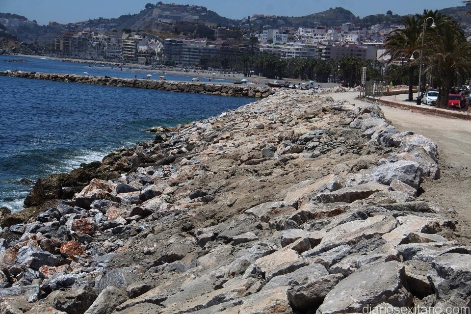 Costas ha finalizado este viernes los trabajos de reparación de la escollera de protección del paseo Reina Sofía de Almuñécar que fue dañada por el temporal del pasado mes de marzo, provocando grandes socavones en la citada escollera lo que puso en peligro la seguridad del paseo almuñequero.