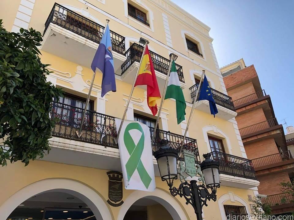 El Ayuntamiento de Almuñécar se sumó a la campaña #LuzporlaELA que promueve la Fundación Luzón y a la que se sumaron los principales municipios de toda Andalucía: con un lazo verde en la fachada del Consistorio e iluminando de verde a la Puerta de Almuñécar.