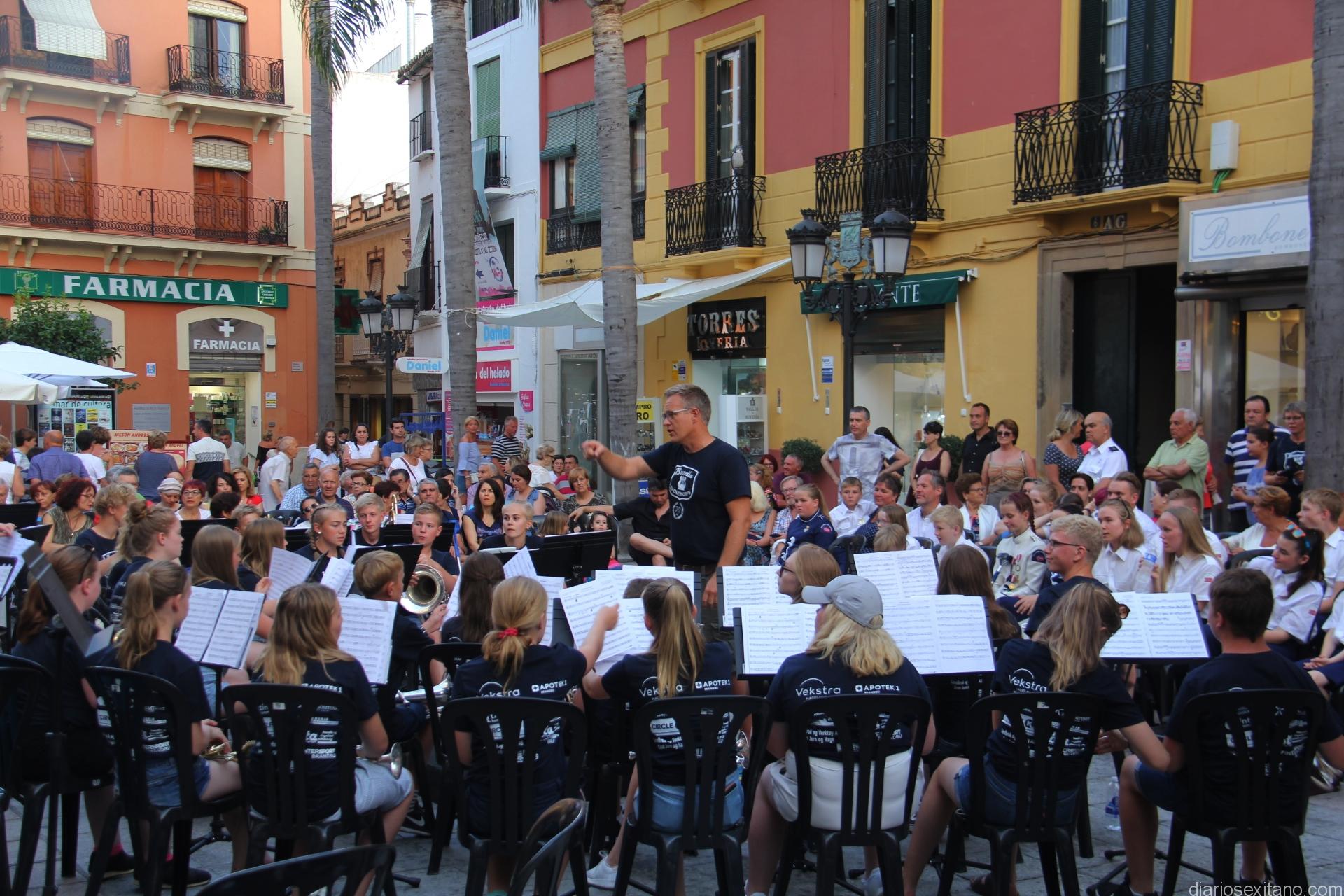 El primer gran concierto estuvo protagonizado por la Banda Municipal de Música de Almuñécar y dos bandas nórdicas que ofrecieron un repertorio de música popular y versiones modernas de temas famosos que hicieron las delicias del público que ocupó el aforo y las terrazas de la céntrica plaza sexitana.