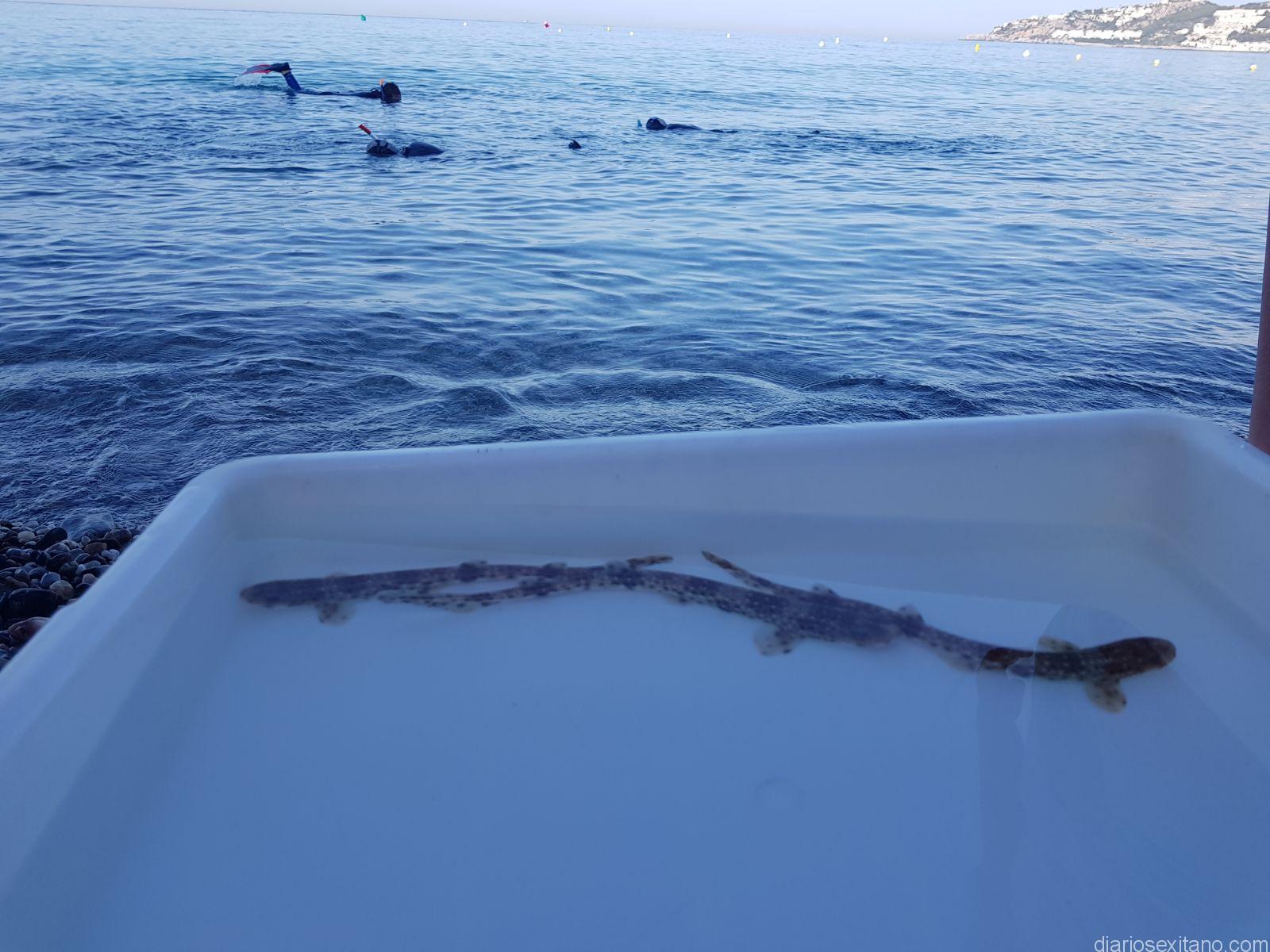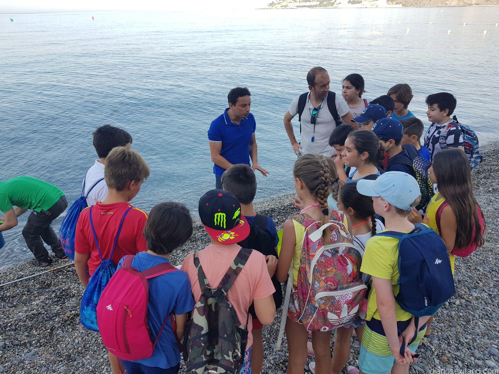 La liberación de pintarrojas, actividad incluida dentro del programa del Mes del Medio Ambiente, se llevó a cabo en presencia de alumnos de centros educativos sexitanos y la ayuda de buceadores con el fin de realizar un seguimiento de los mismos en los primeros minutos en el mar.