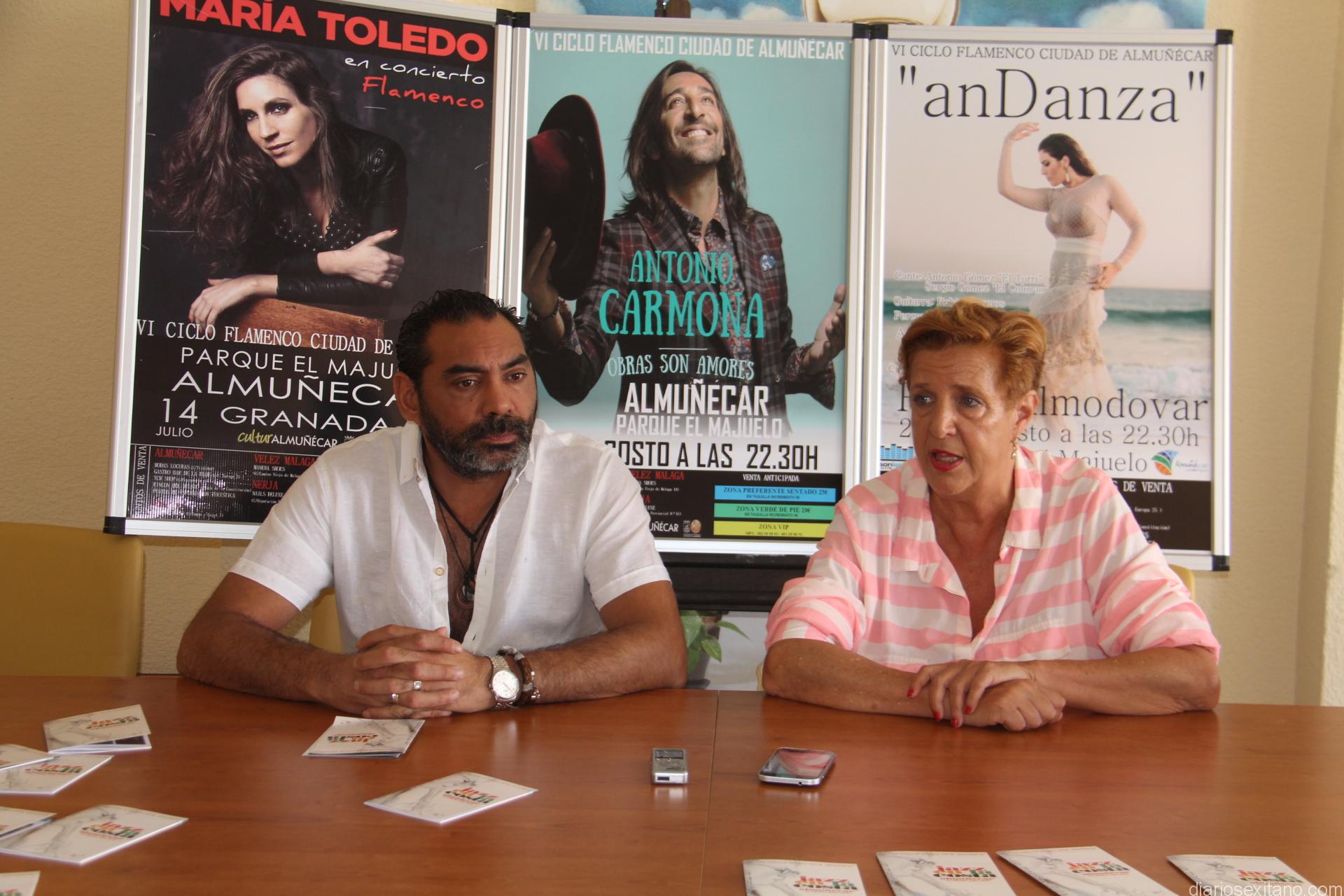 Por su parte, Pepe Luis Carmona, dijo de María Toledo, que está llamada a ser una de las grandes del flamenco “por su buen hacer y su gran personalidad sobre el escenario”, indicó, En cuanto a Antonio Carmona, es un artista que no necesita presentación y que presentará en Almuñécar su último trabajo que tan buen acogida ha tenido. Ellos junto con la bailaora local, Paola Almodóvar que también dará a conocer su espectáculo “anDanza” . Tres grandes conciertos que esperamos sean del agrado de todos los amantes al flamenco” señaló Pepe Luis Carmona.
