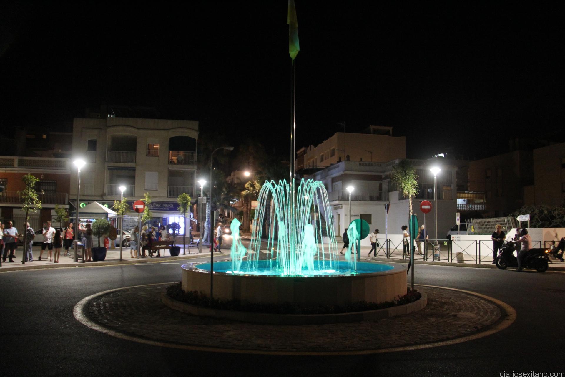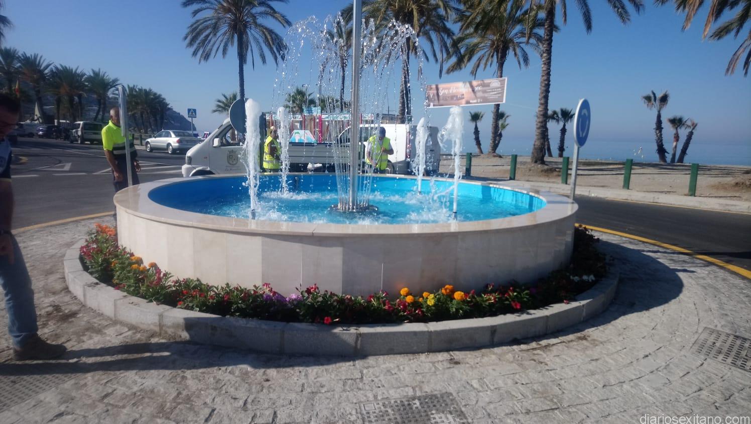 La Herradura ha mejorado este fin de semana el embellecimiento de su acceso a la playa con la puesta en servicio de una fuente ornamental que ocupa el centro de la rotonda que regula el tráfico en la confluencia de la avenida Prieto Moreno y el paseo Andrés Segovia.