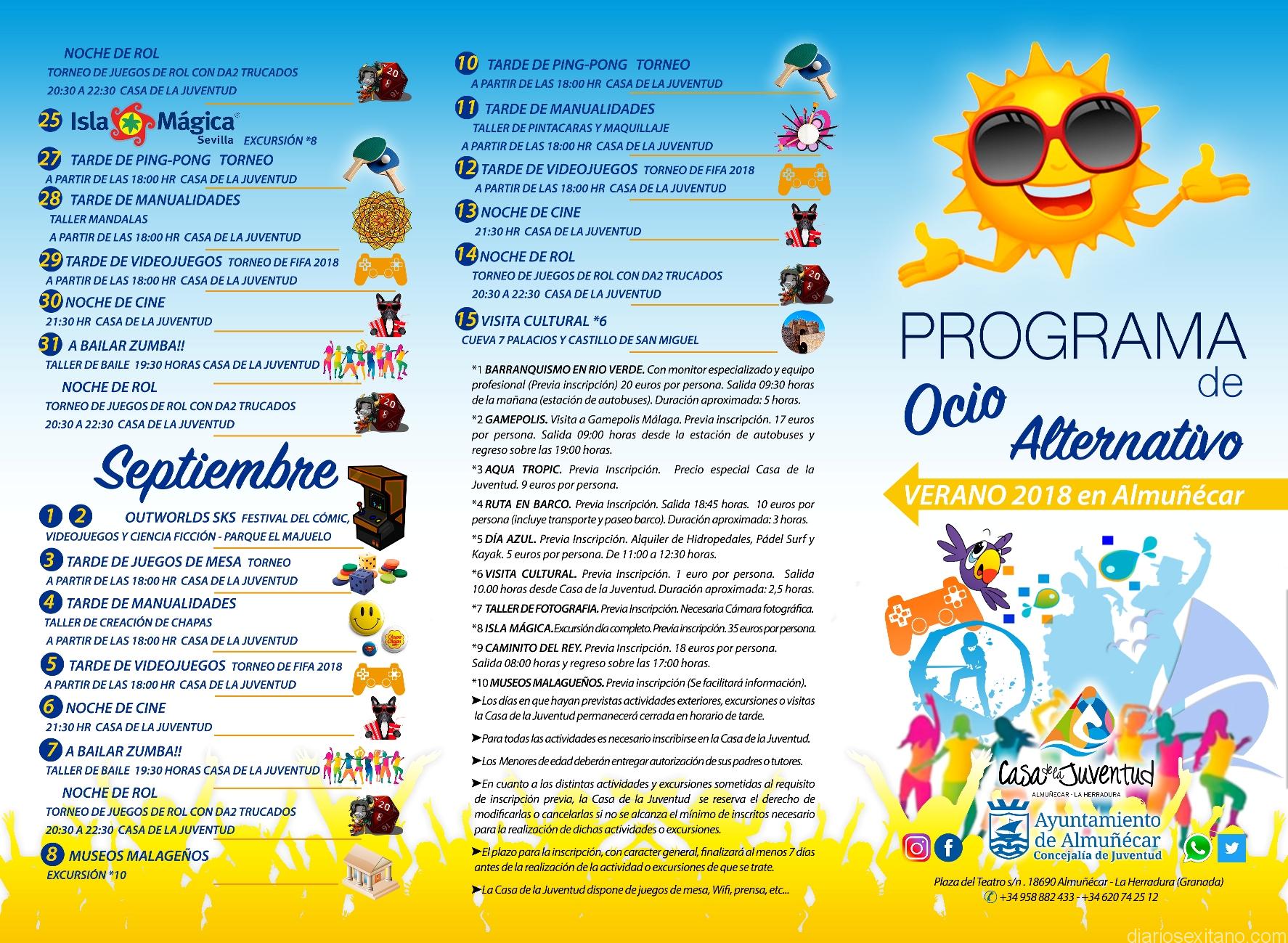 El objetivo, como su nombre indica, es crear un ocio alternativo para nuestros jóvenes, una actividad alternativa y dinamizadora para esas jornadas vacacionales de verano. “Si tengo que recalcar, que los menores de edad para las actividades o excursiones deberán ir acompañados o autorización de sus padres”, señaló Medina.