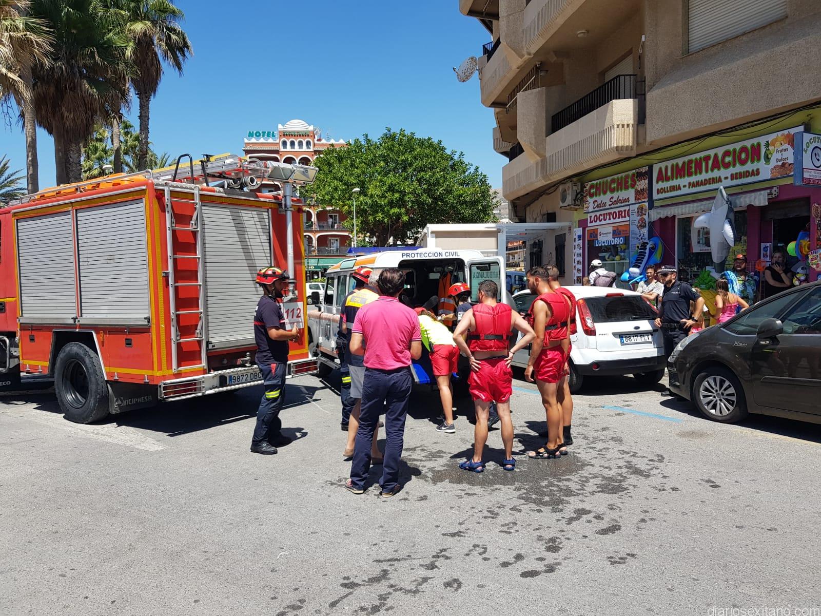 Hasta el lugar se personaron dos patrullas de la Policía, junto con el retén de guardia de Bomberos, Protección Civil, ambulancia, y dos embarcaciones con sus respectivos patrones y tres socorristas para rescatar a la persona herida y evacuarla al Centro de Salud.