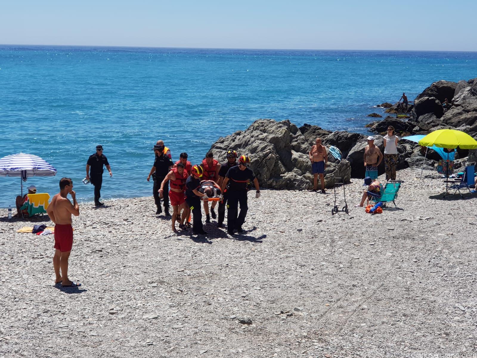 La voz de alarma sonó este lunes poco antes de las 13 horas, en la Jefatura de la Policía Local, Bomberos, Protección Civil y Socorristas de Almuñécar ante la petición de auxilio de un bañista que se encontraba herido en el Peñón del Medio (Peñones del Santo).