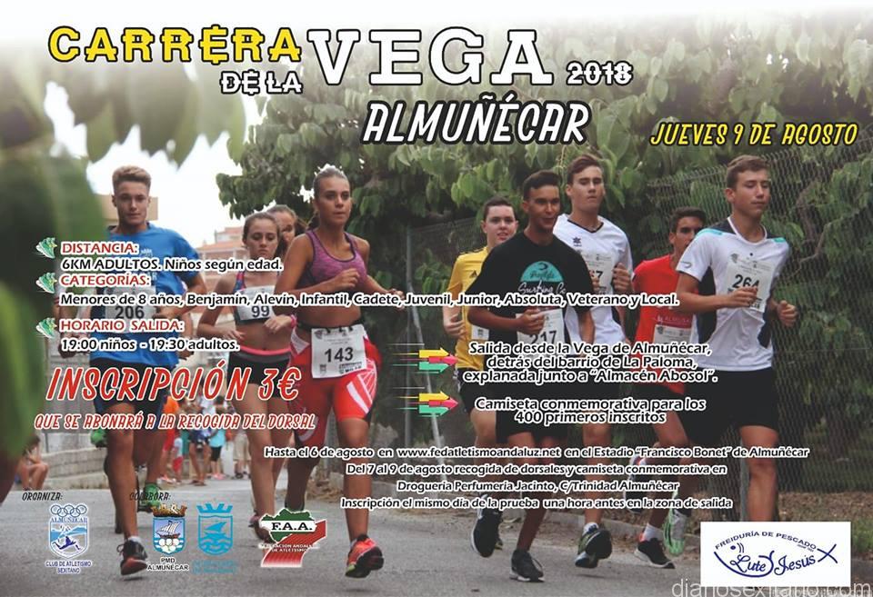 La Carrera de la Vega de Almuñécar ya tiene fecha y apertura de inscripciones. Se celebrará el día 9 de agosto y las inscripciones se pueden realizar hasta el mismo día en Droguería Perfumería Jacinto (calle Trinidad Almuñécar). También este año se puede realizar la inscripción a través de la página web de la Federación Andaluza de Atletismo (fedatletismoandaluz.ne) hasta el día 6 de agosto.