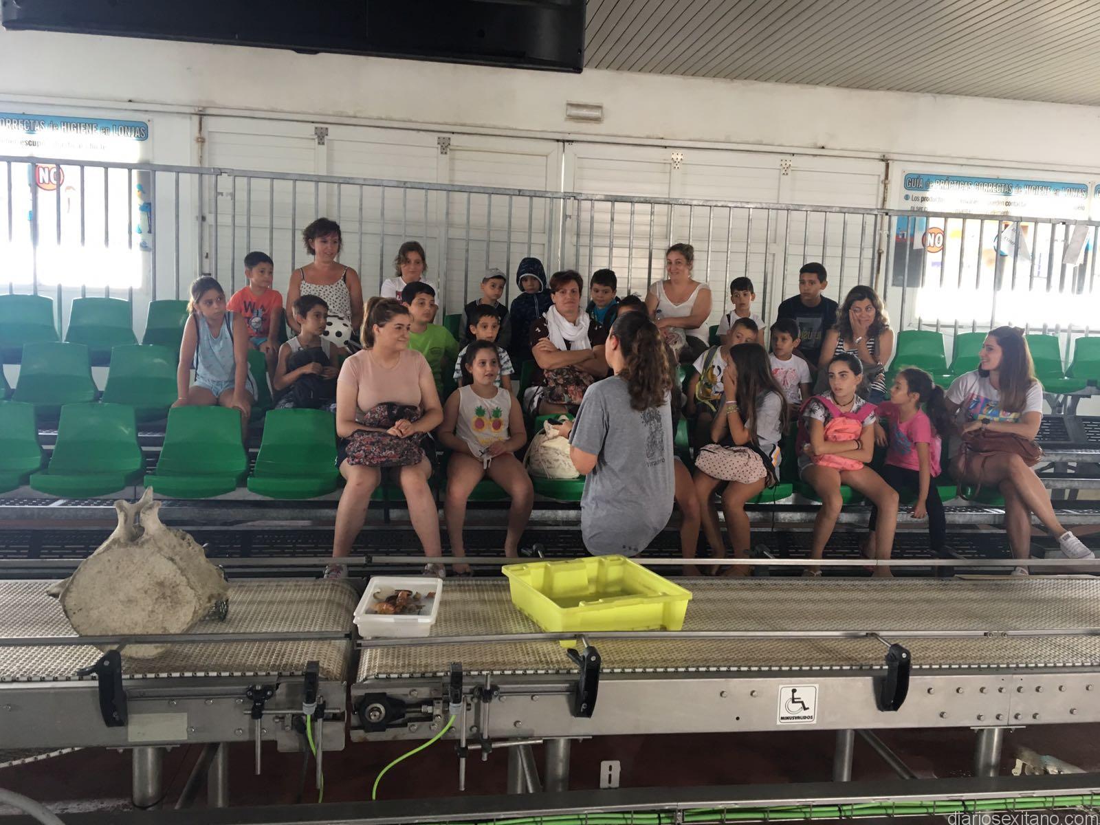 Los vecinos de Torrecuevas, además de recorrer las instalaciones portuarias, tuvieron la ocasión de conocer el sistema de subasta del pescado que se utiliza cada día pasa en la lonja pesquera, algo que ha cambiado y modernizado en los últimos años.