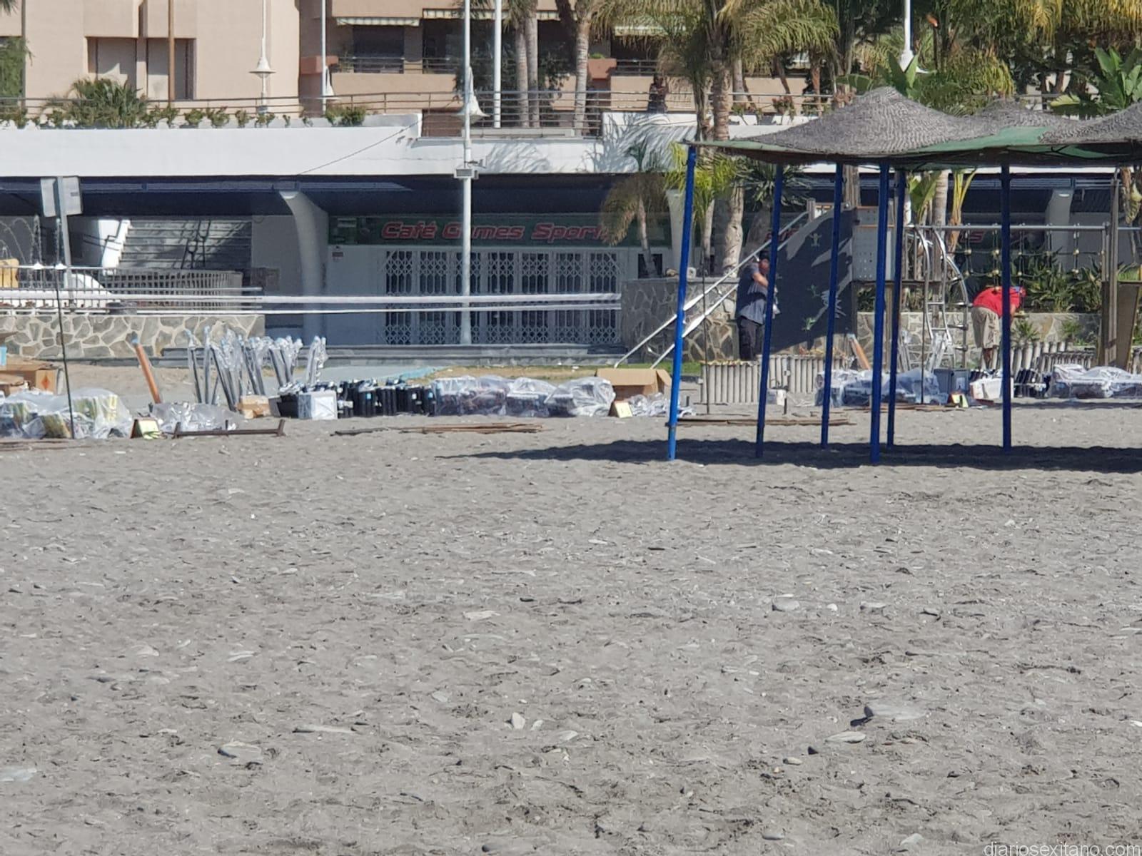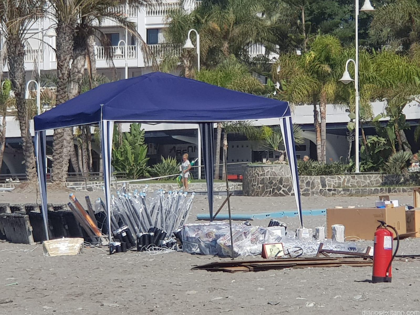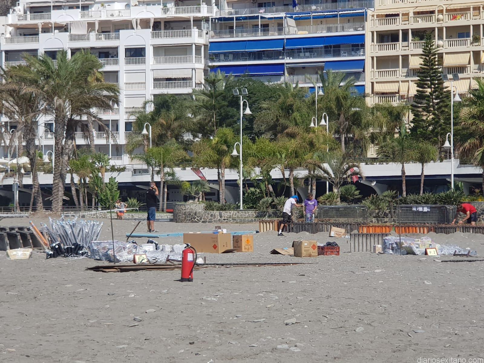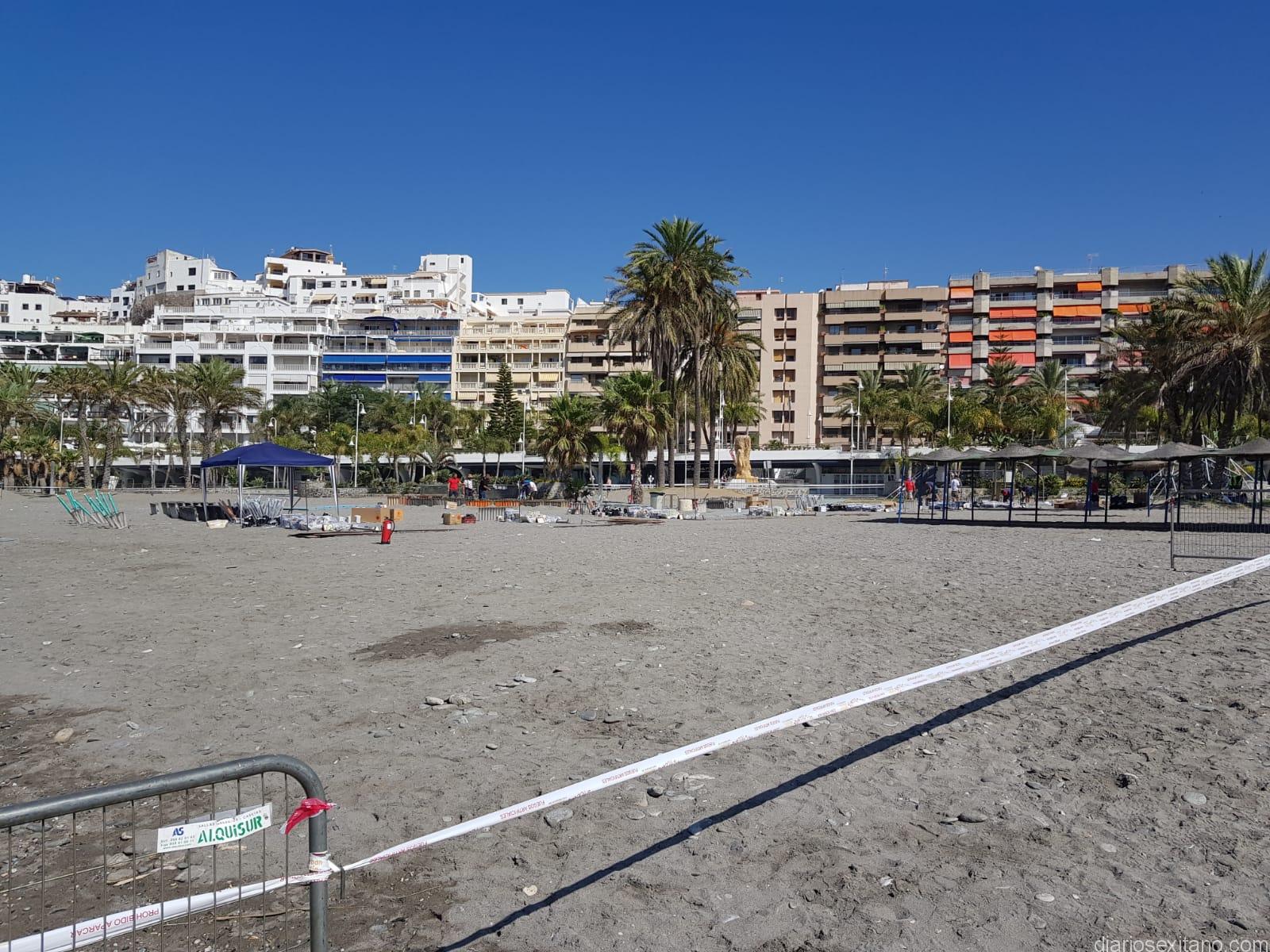 El montaje de todo el dispositivo pirotécnico comenzó este lunes en la playa Puerta del Mar, el Castillo de San Miguel y lo Peñones del Santo, que una vez más volverán a ser escenario del gran espectáculo piro-musical.