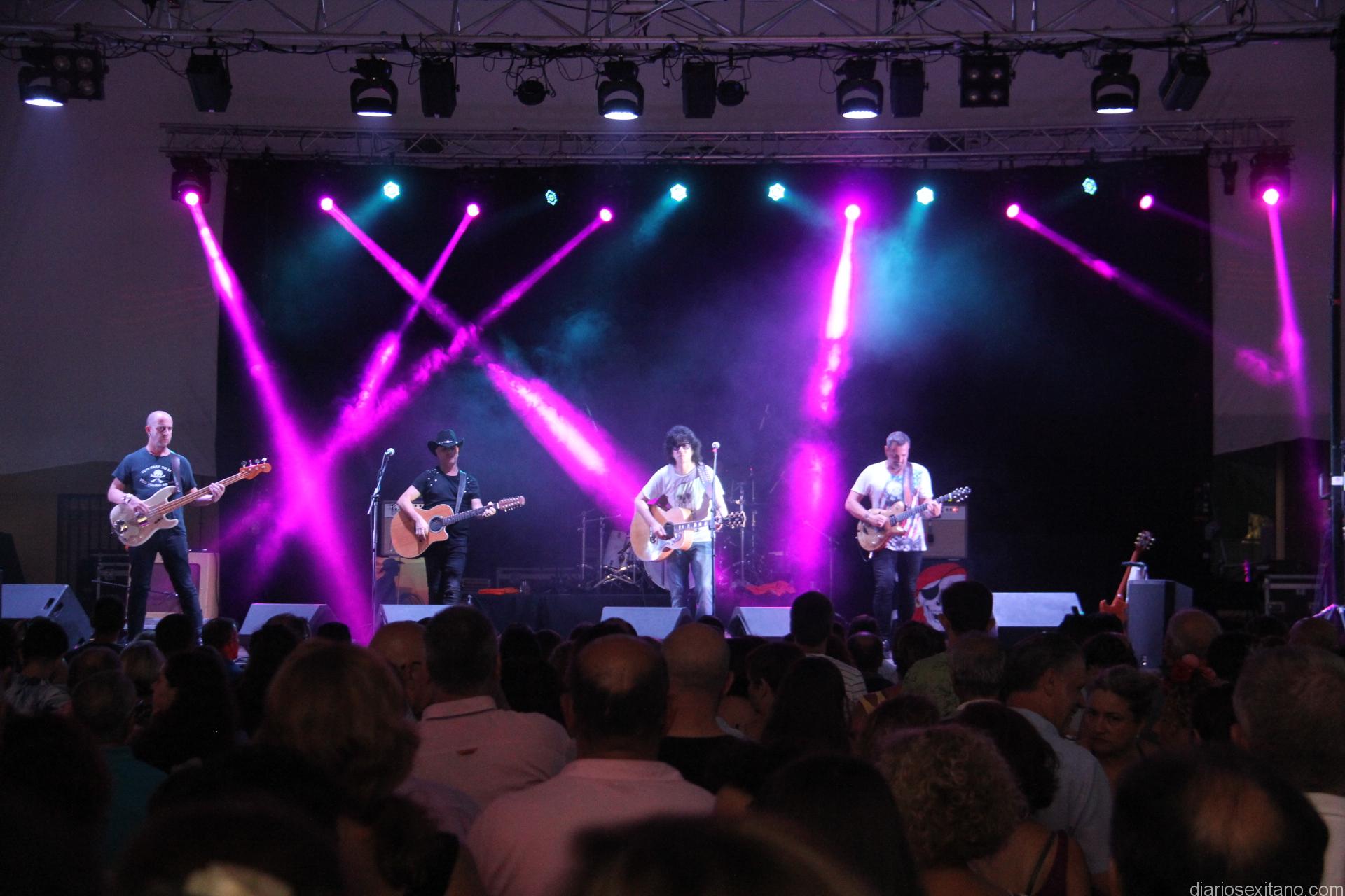 El cantante y guitarra Manuel España y su banda gustó y se gustaron sobre el escenario sexitano con canciones que ya forman parte de la banda sonara de generaciones. El grupo granadino conectó desde el primer momento con su música y éxitos que siguen gustando como Mil calles llevan hacía ti o cuando brille el sol pero también con bellas canciones como Al otro lado y trabajos actuales que recoge el álbum “Por la cara” que es el título de su gira con la que de nuevo volvieron a provocar los ritmos y miradas cómplices al tiempo que no dejaba de bailar a un auditorio entregado.