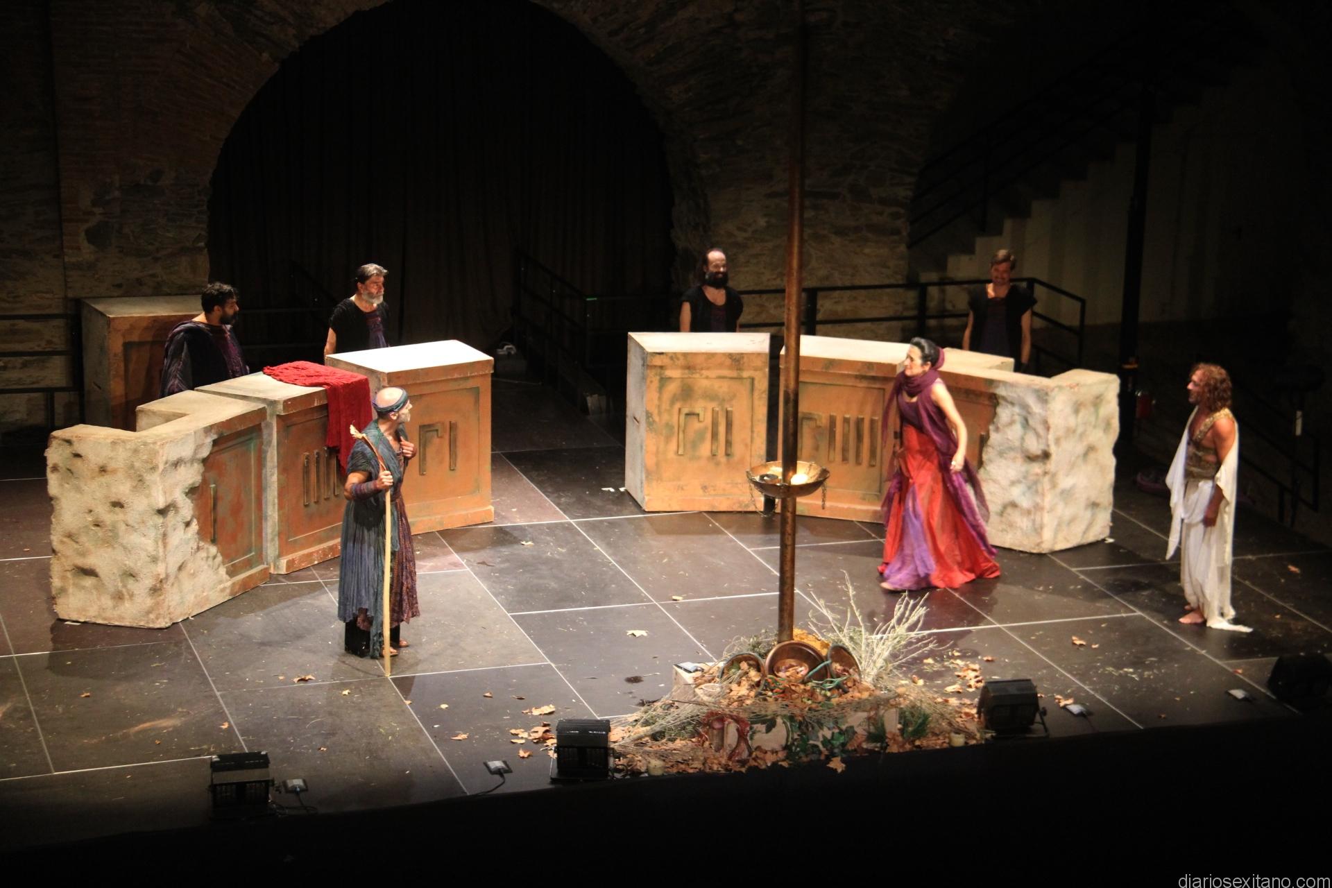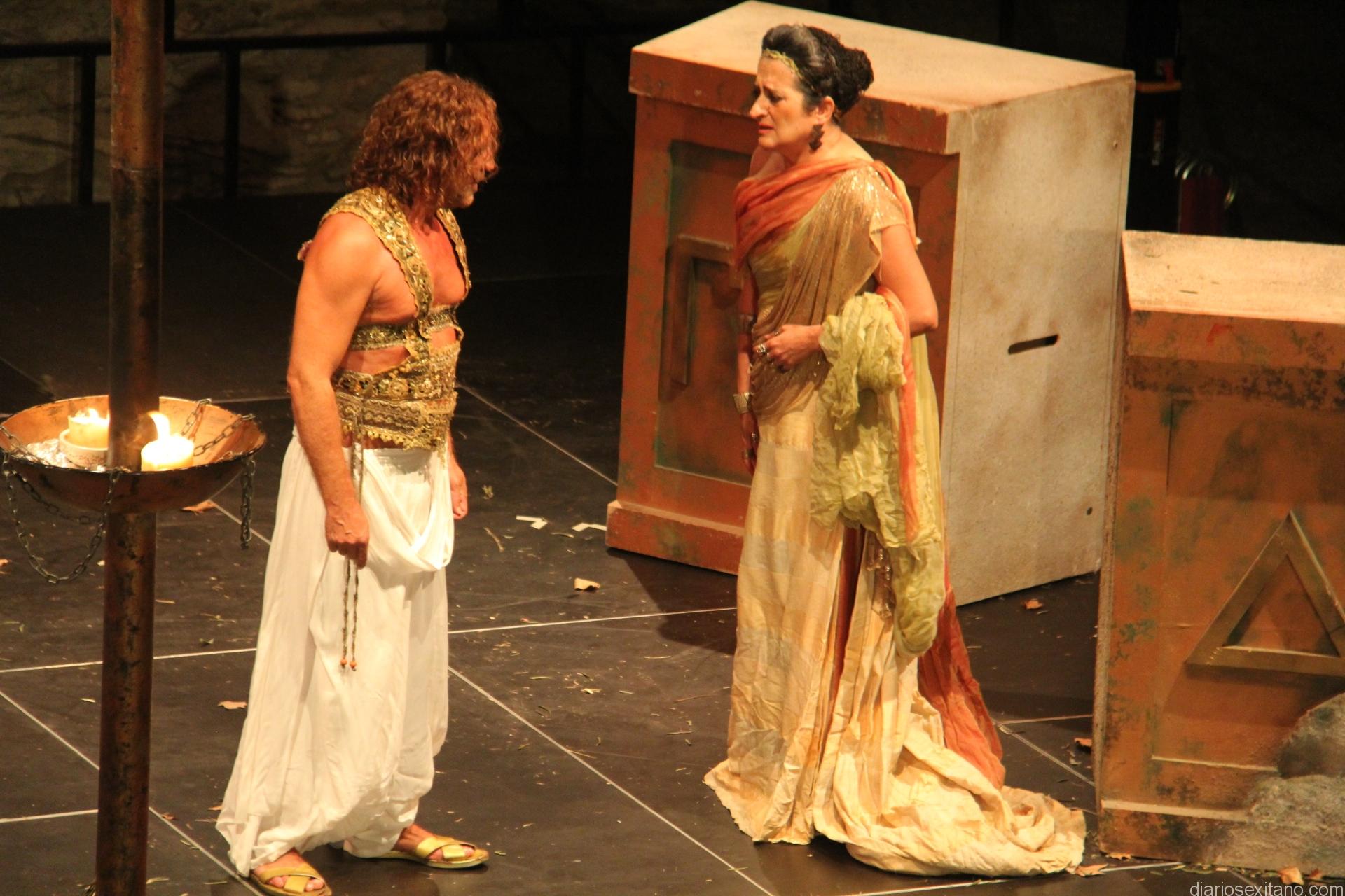 Con una interpretación magistral y una verdadera lección de José Vicente Moirón, mostrando un Edipo racional y cercano, nada encorsetado y a su lado un coro masculino que le acompaña con un nivel realmente excelente, además de la guinda de Memé Tabares y su Yocasta, ese remanso de paz, el verdadero descanso del guerrero, el público disfrutó anoche en el auditorio del Acueducto romano de La Carrera de Almuñécar de un “espectáculo emocionante” con la representación de la obra de Sófocles, “Edipo Rey” del Teatro del Noctámbulo en el X Festival Grecolatino “Sexi Iulium Firmun” que se viene celebrando en la localidad sexitana desde el pasado martes y hasta este sábado, bajo la organización del Área de Cultura del Consistorio almuñequero.