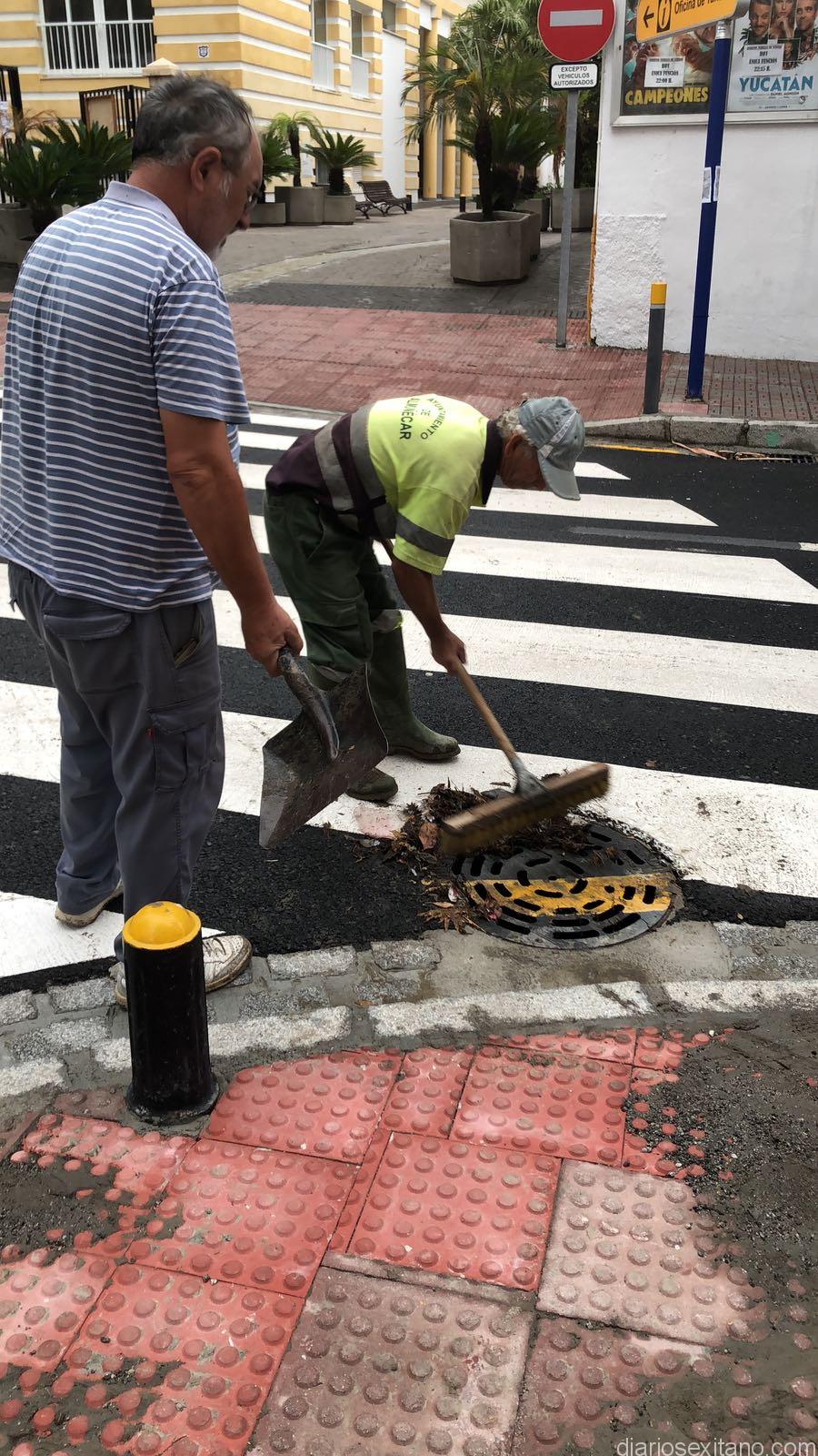 Aunque se realizaron trabajos de limpieza en las principales zonas afectadas en La Herradura, este lunes operarios municipales siguen trabajando en la recogida y eliminación de tierra y piedras que fueron arrastradas por la lluvia en el centro como consecuencia de las obras de rehabilitación del casco antiguo que se vienen realizando. También se retiraron residuos en las desembocaduras de ramblas y las que quedaron depositadas en playas. Además de habilitar, con maquinaria, salidas de emergencia en las zonas de playa.