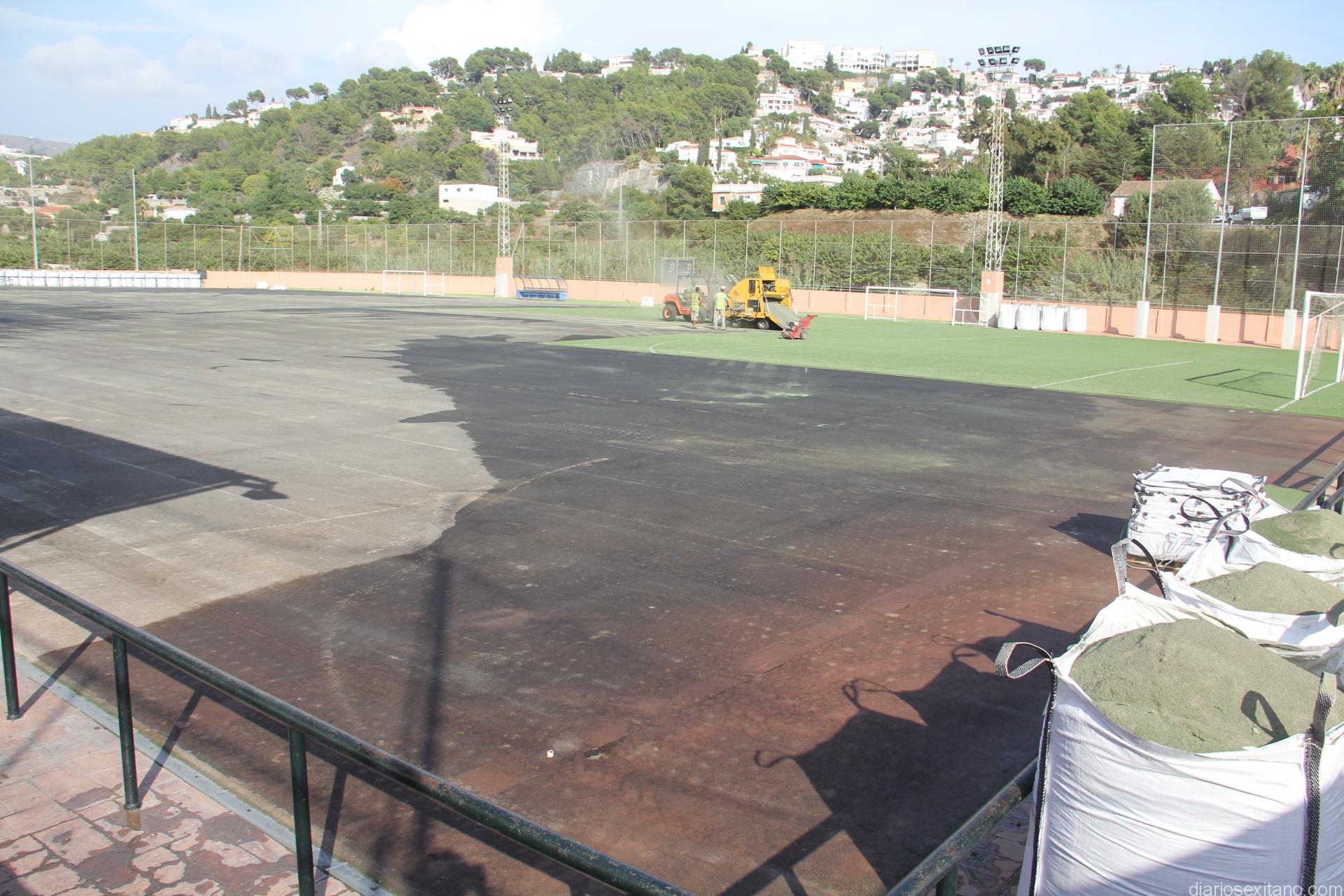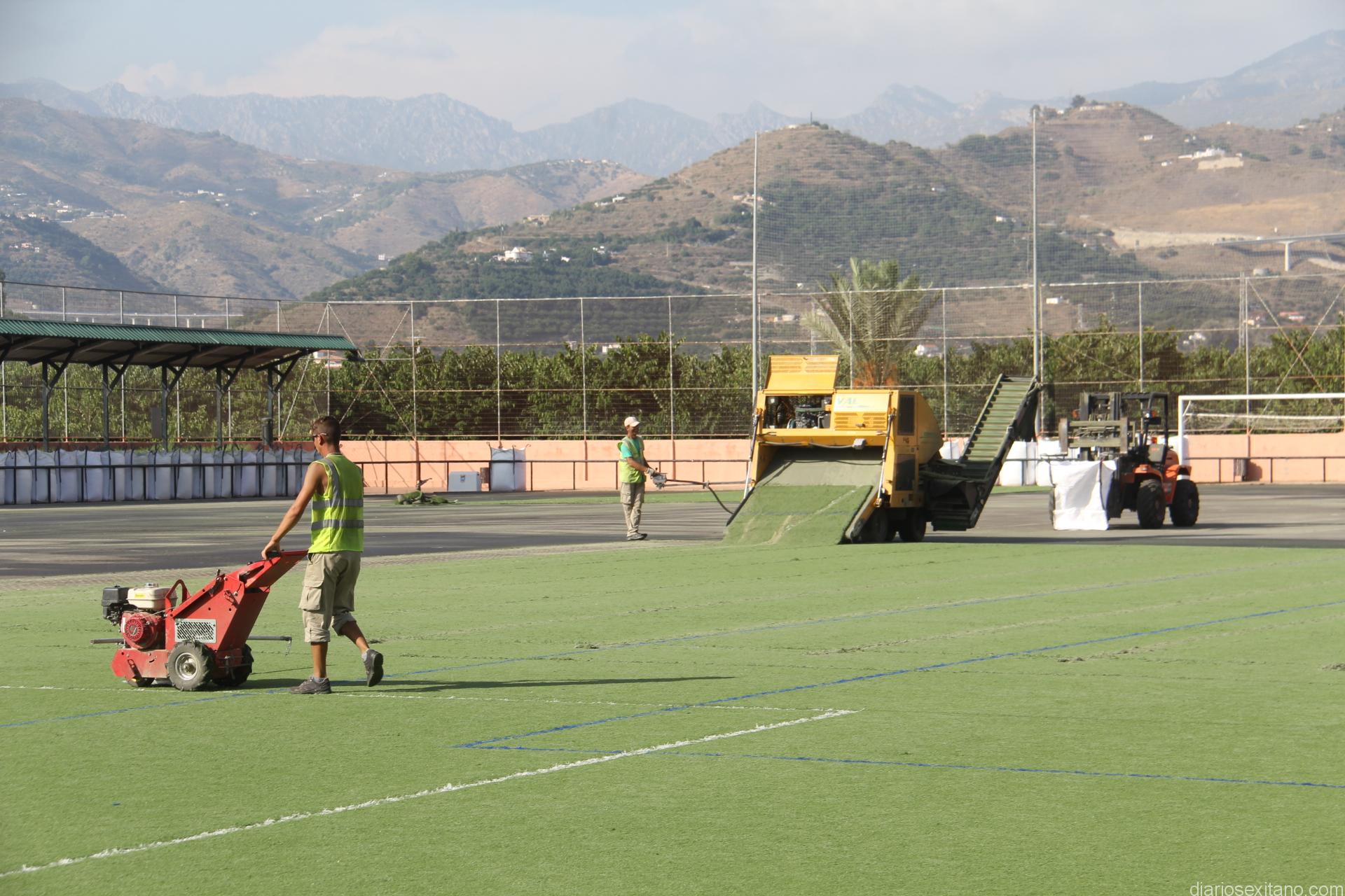 Tras una larga tramitación administrativa y una vez adjudicado las obras del cambio de césped artificial a la empresa “Mondo”, después de casi 14 años se espera que esta temporada clubes y deportistas podrán contar con esta importante mejora que se ampliará a otros servicios fundamentales y muy necesarios para la práctica del fútbol en la citada instalación sexitana.