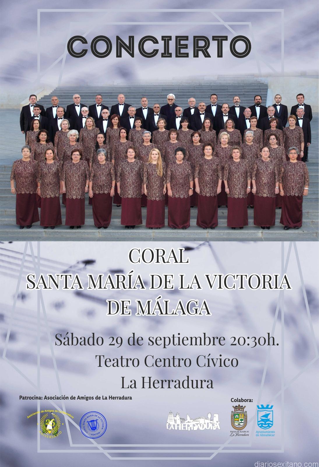 La Coral Santa María de la Victoria, de Málaga, ofrece un concierto este sábado, 29 de septiembre, a las 20,30 horas, en el auditorio del Centro Cívico de La Herradura, sobre “Antología de la Zarzuela”