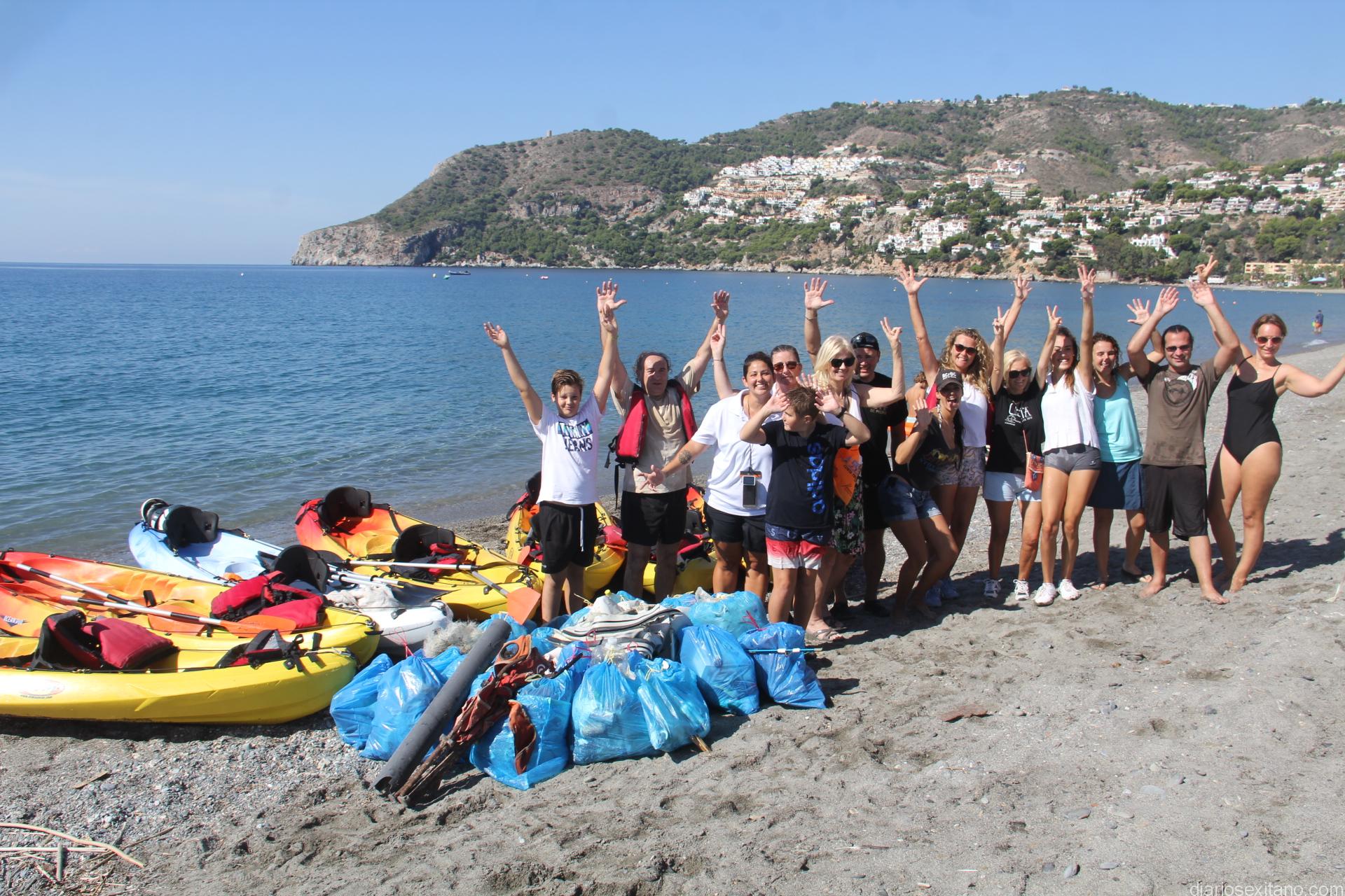 La actividad, que cuenta con la colaboración del Ayuntamiento de Almuñécar y las áreas de Medio Ambiente y Tenencia de Alcaldía de Le Herradura, se ha desarrollado desde las 10 de la mañana y hasta las 12,30 horas. “Los voluntarios se han organizado por grupos de 10 a 15 personas y también repartidos por zonas, para abarcar el máximo posible de espacio entre todos los participantes. Hemos querido centrarnos, principalmente, en la retira de colillas de la arena y los plásticos y envases que se hallaban entre las rocas cercanas a la playa de Calaisa para lo cual un grupo lo han retirada por medio de kayak”, relataba la coordinadora quien se mostraba muy contenta con la respuesta y éxito que había tenido la actuación.