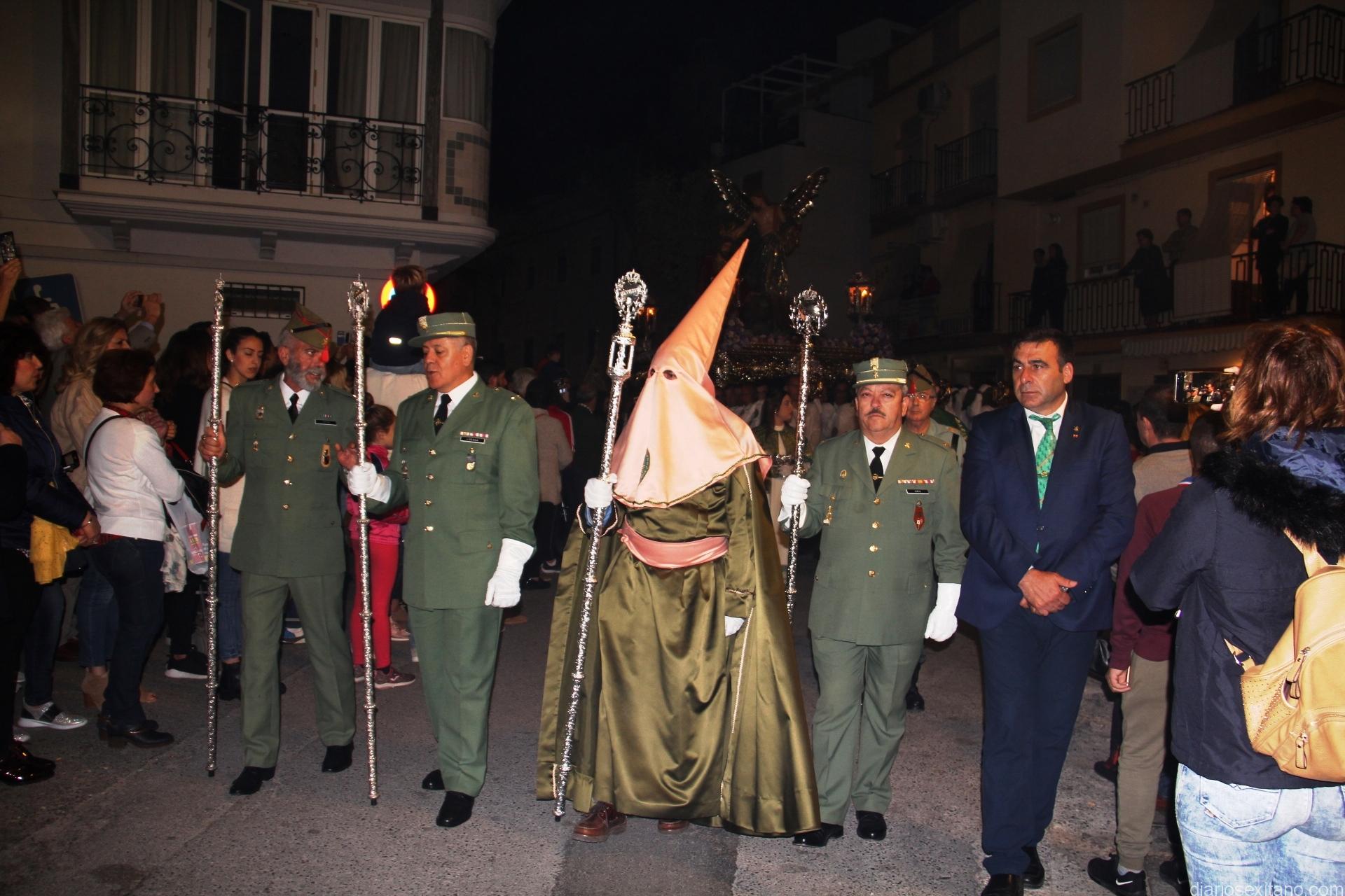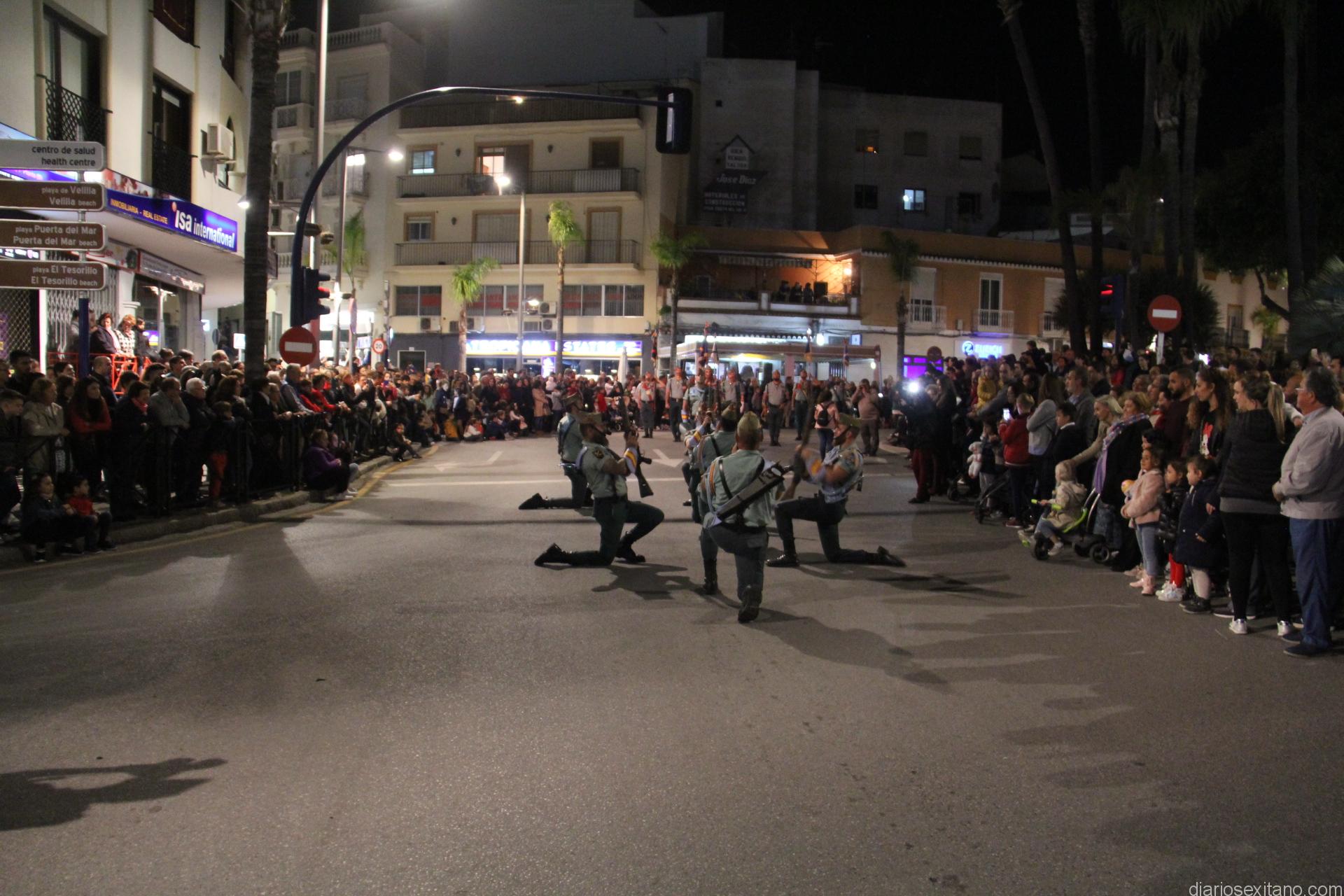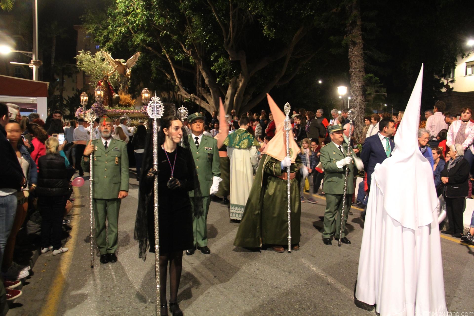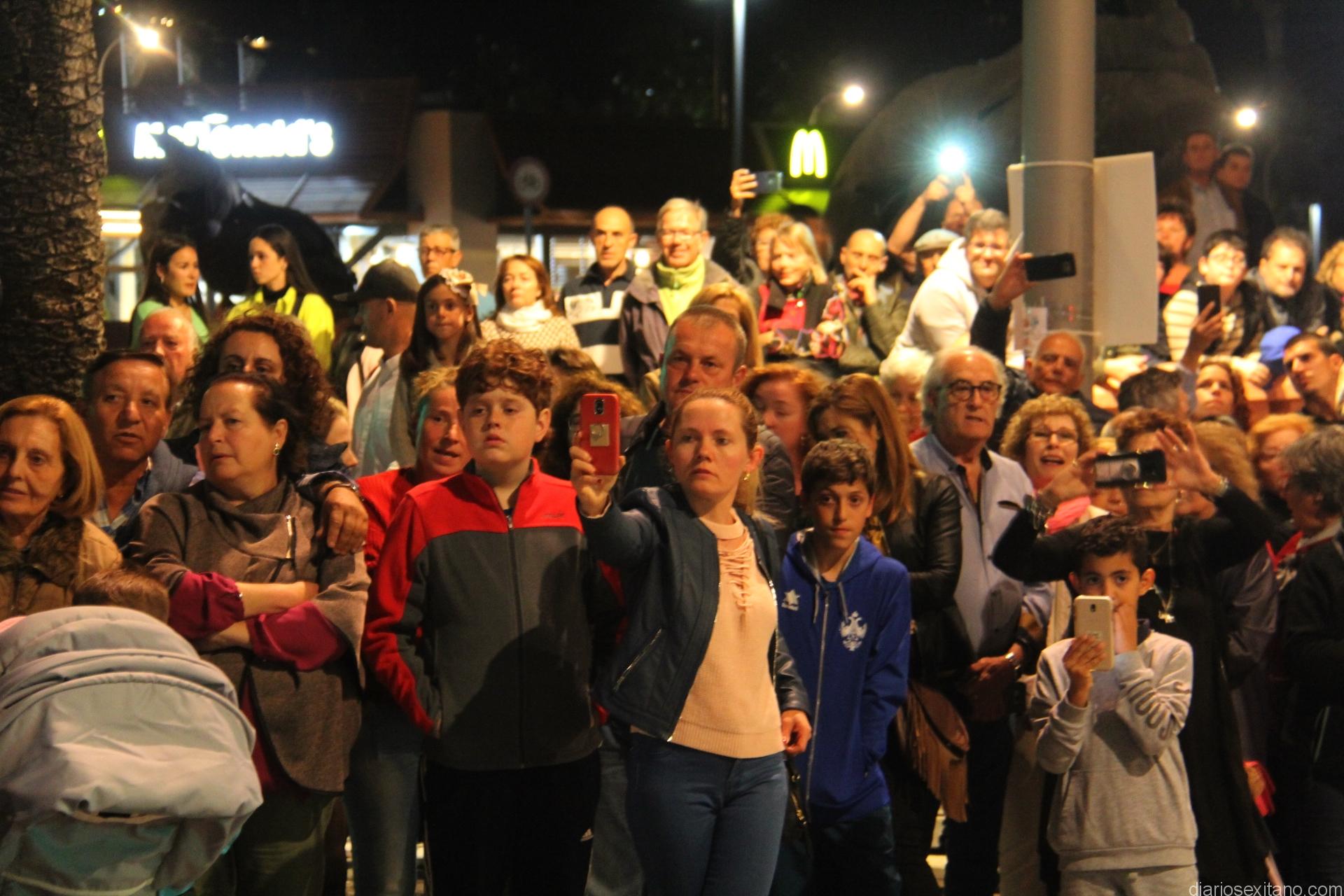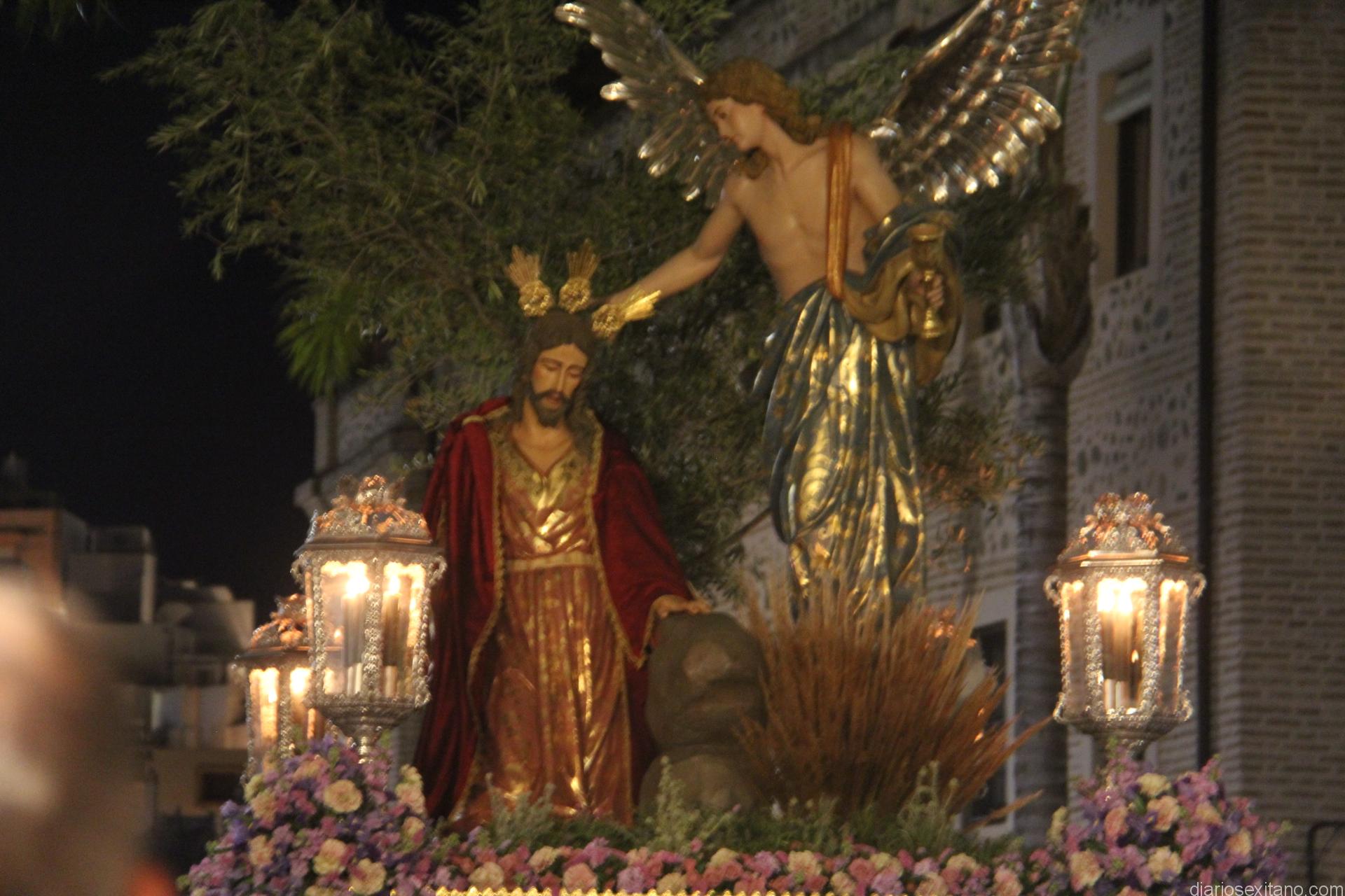 Tal y como estaba previsto, el paso de misterio que talló el imaginero granadino, Miguel Zúñiga, salió del templo parroquial por vigésimacuarta ocasión ya entrada la noche para realizar su recorrido por las calles y avenidas de la localidad sexitana portado por varias decenas de horquilleros. El blanco, salmón y verde oliva eran los colores que destacaban entre la multitud que aguardaba en la Puerta de Granada. Rozando el pórtico de la Encarnación y a los sones del Himno Nacional interpretado por la Agrupación Musical de la Encarnación de Almuñécar comenzaba la cofradía almuñequera la estación de penitencia.