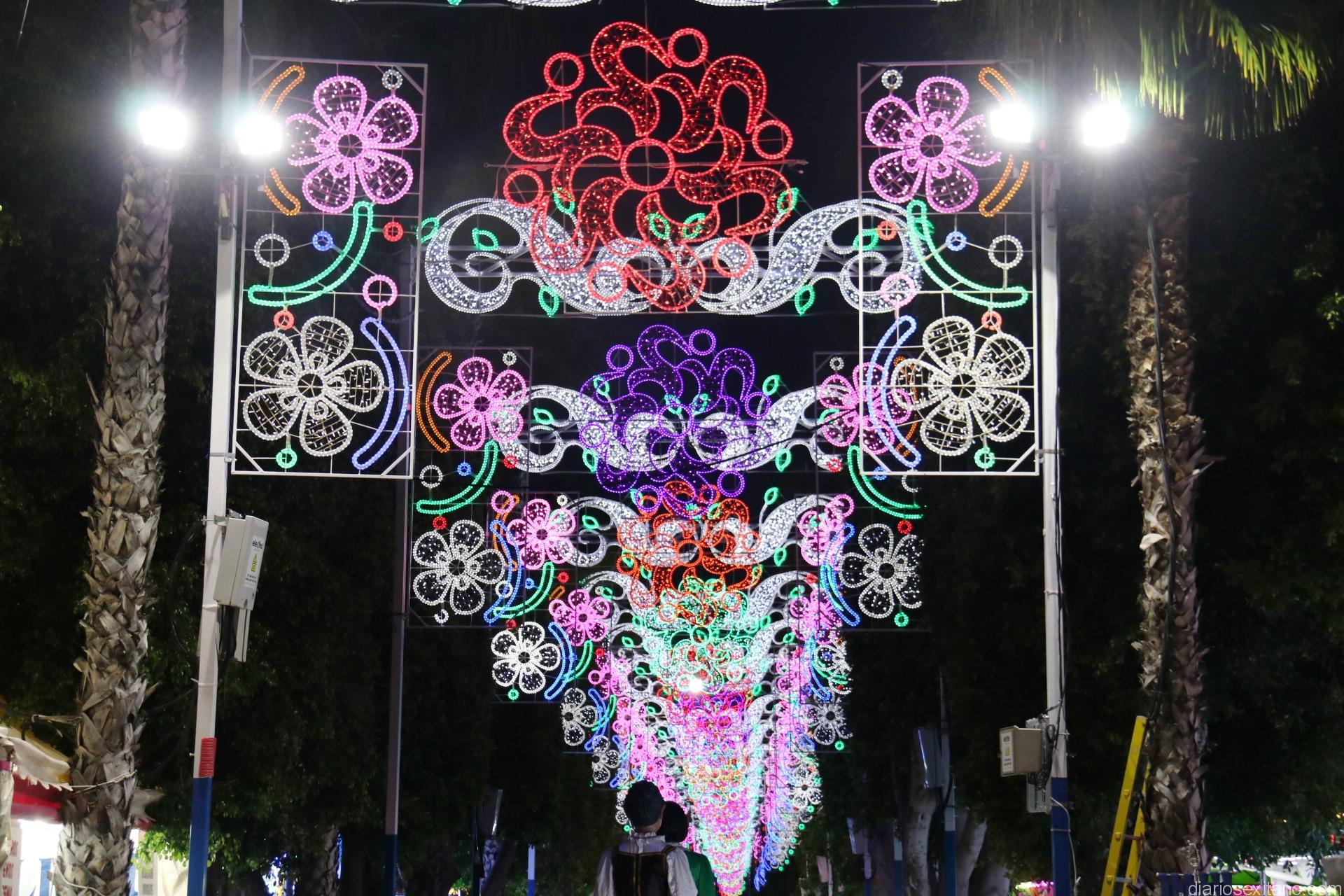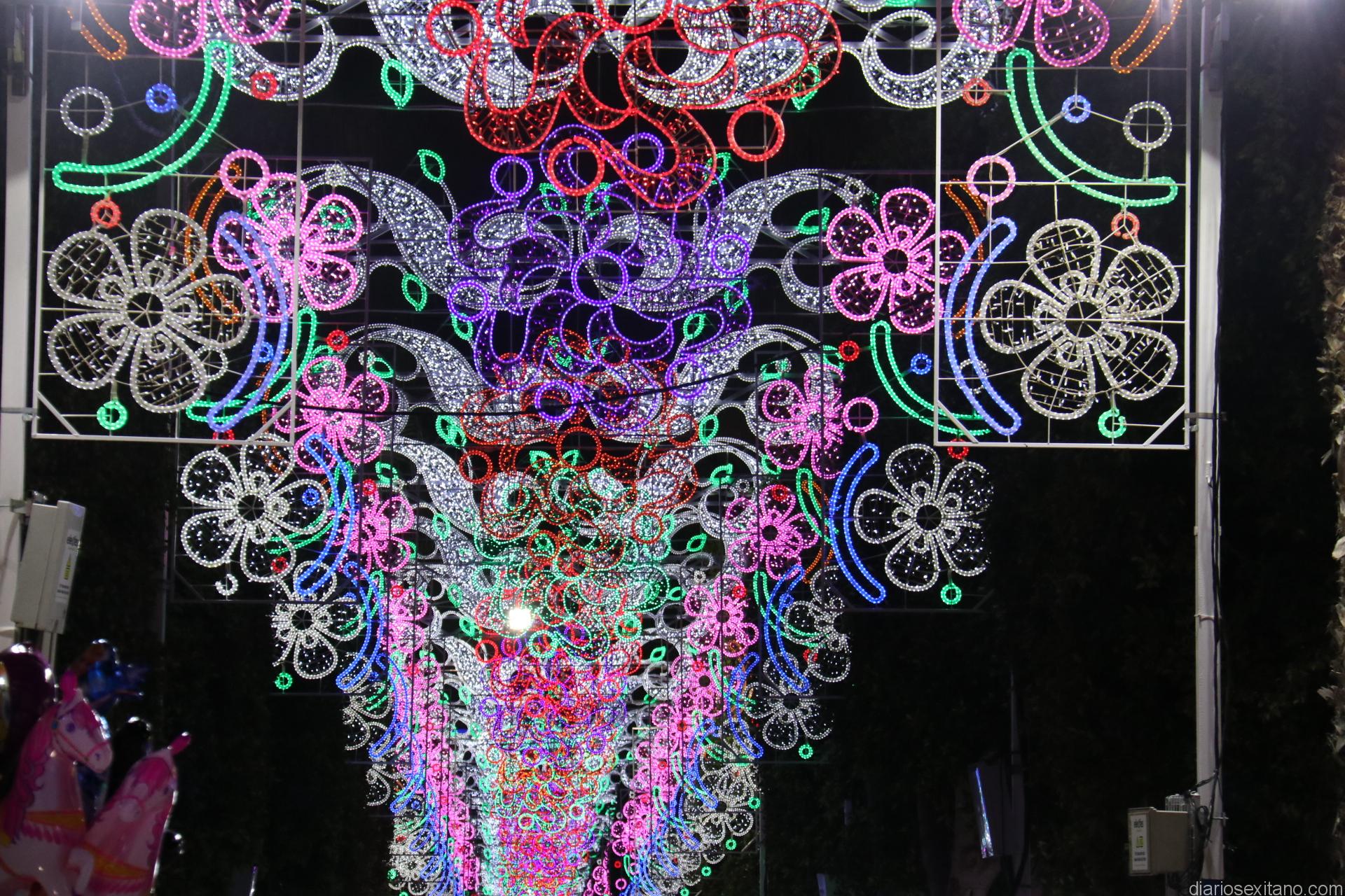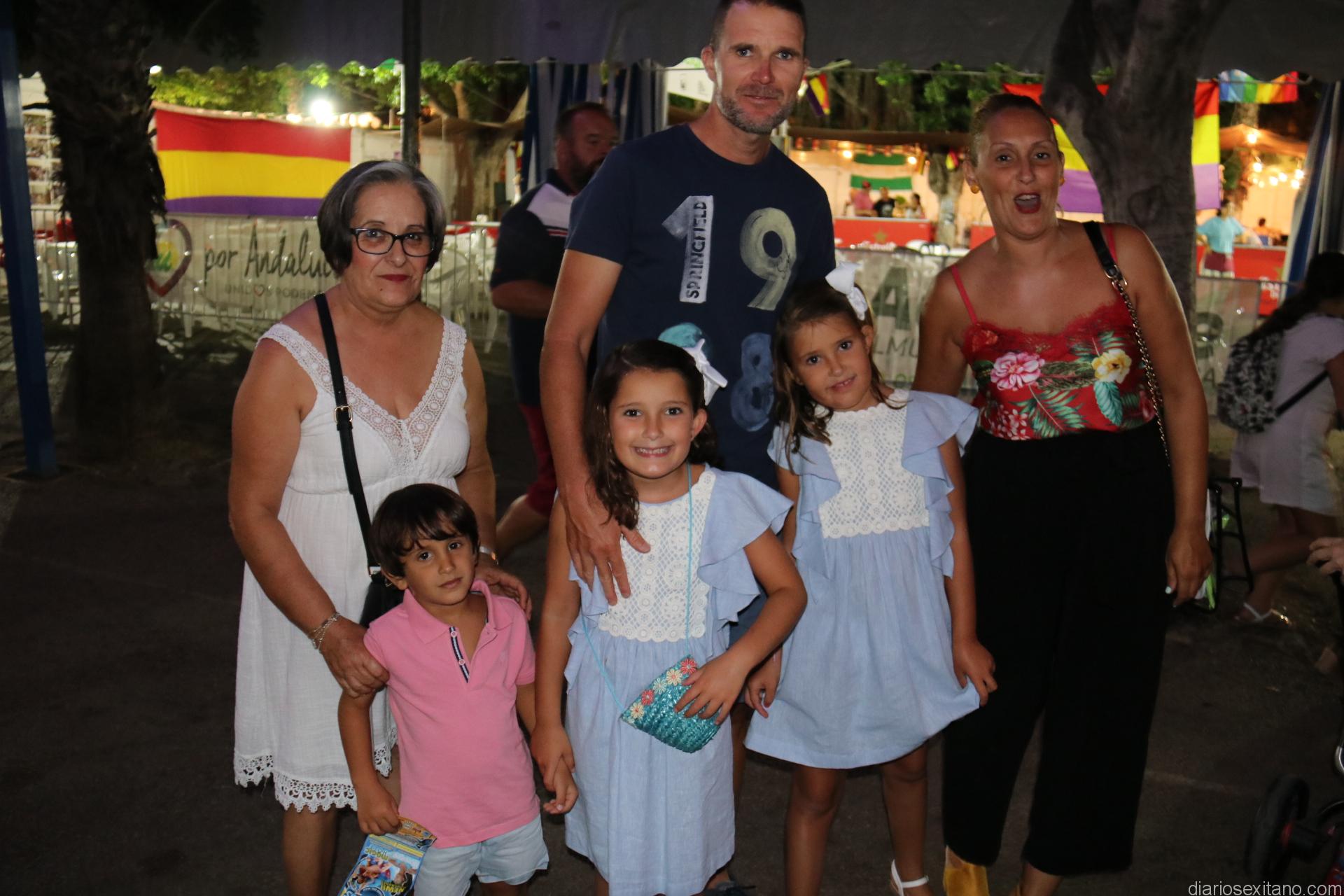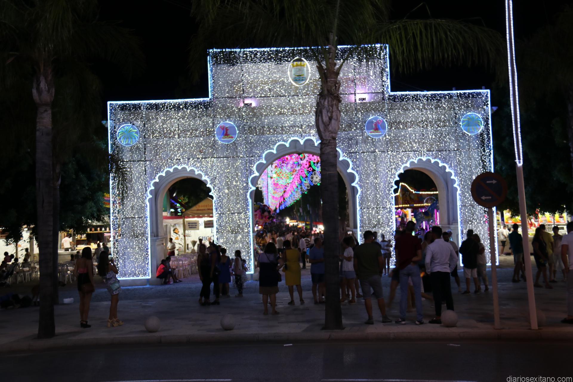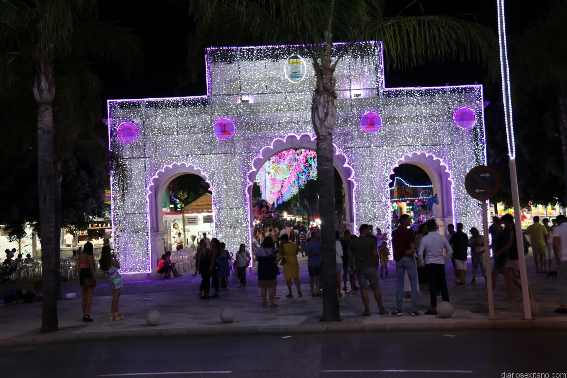 El encendido del alumbrado animó la noche en las atracciones y casetas que ocupan el recinto ferial. La alcaldesa, Trinidad Herrera, acompañada de miembros del equipo de gobierno, se rodeó de varios pequeños que apretaron el interruptor de la iluminación situado en la Puerta de Almuñécar, principal acceso al paseo Blas Infante.