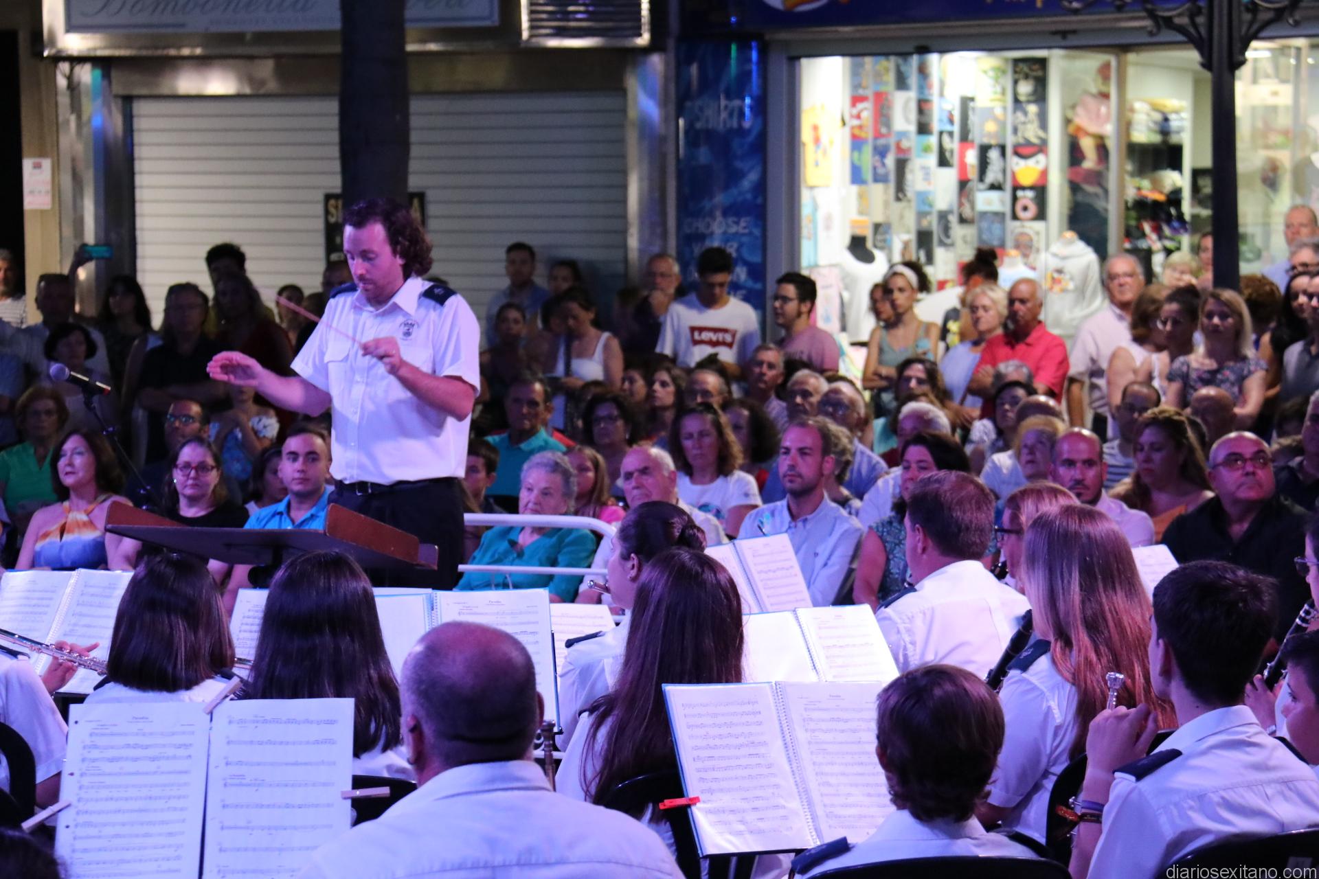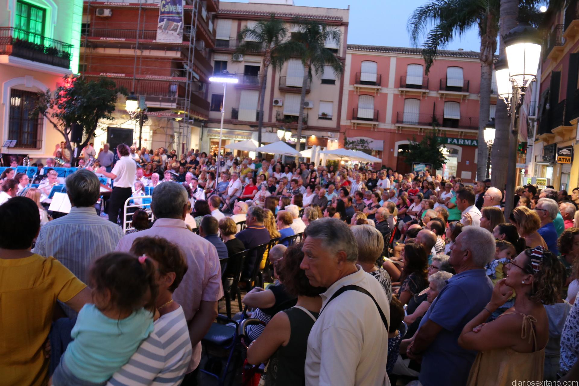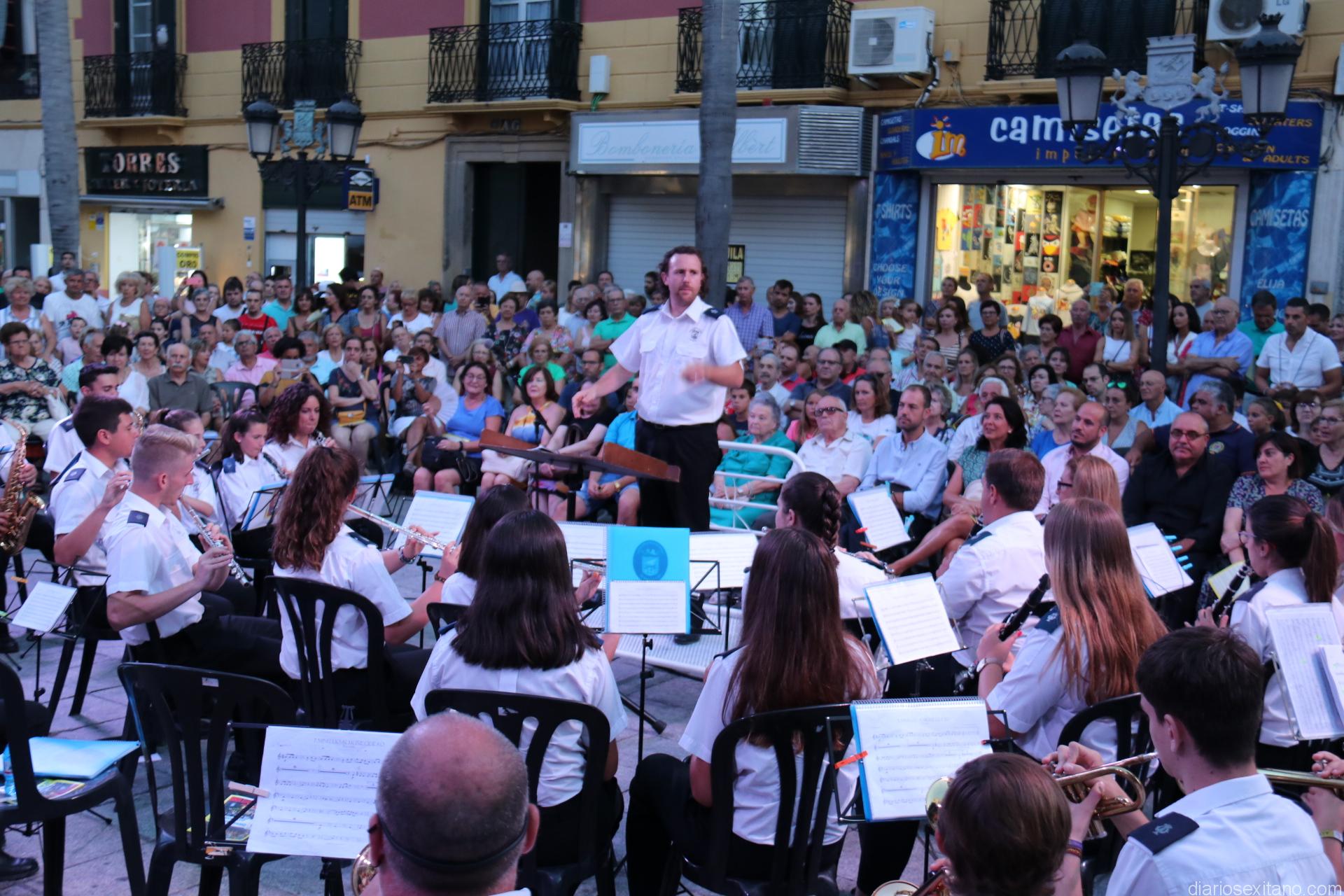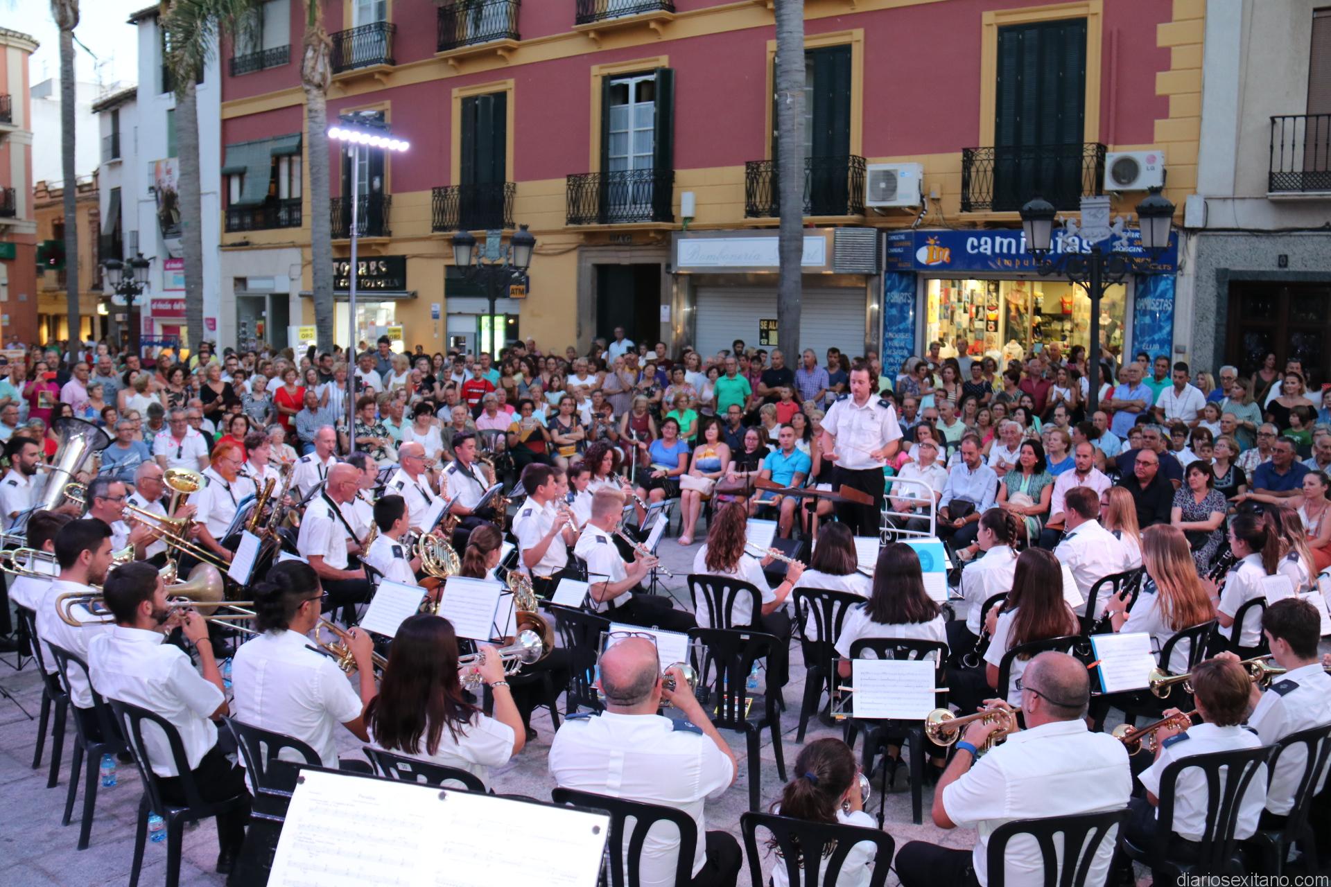 La plaza de la Constitución sexitana llena de público fue testigo de uno de los conciertos más brillantes que ha ofrecido la citada banda, bajo la dirección de David Pino Campos, y que no defraudó a nadie.