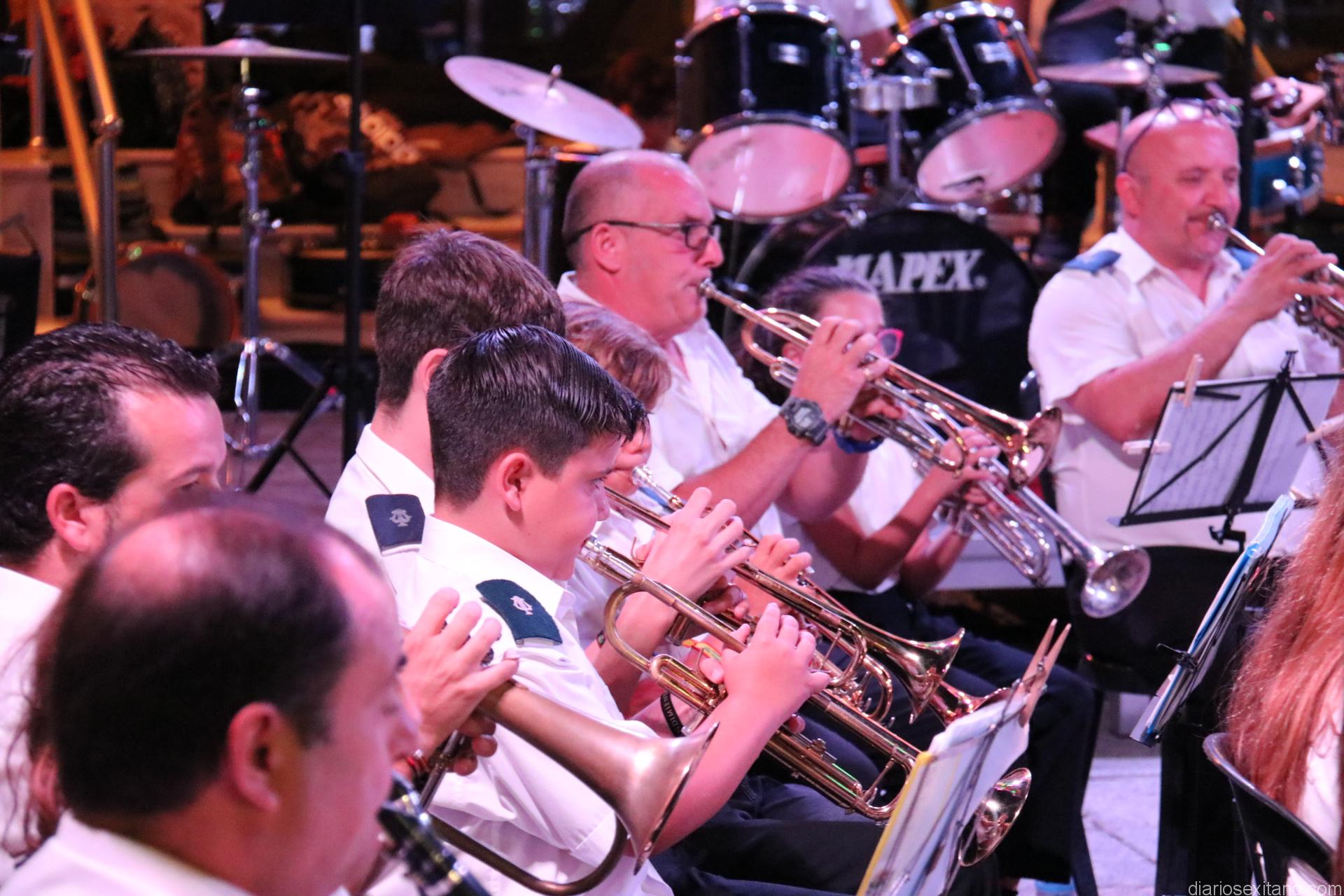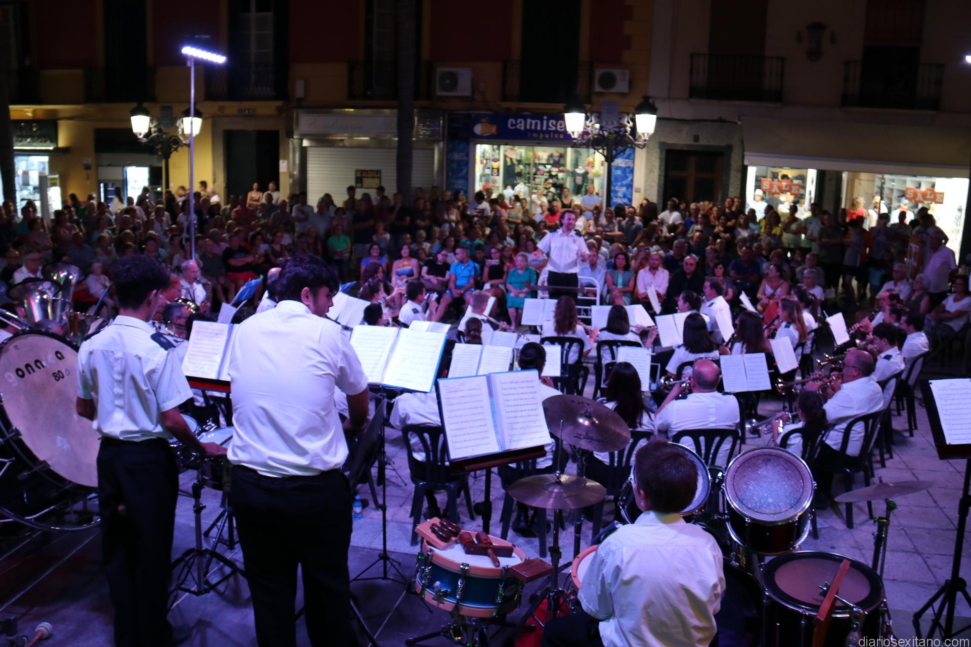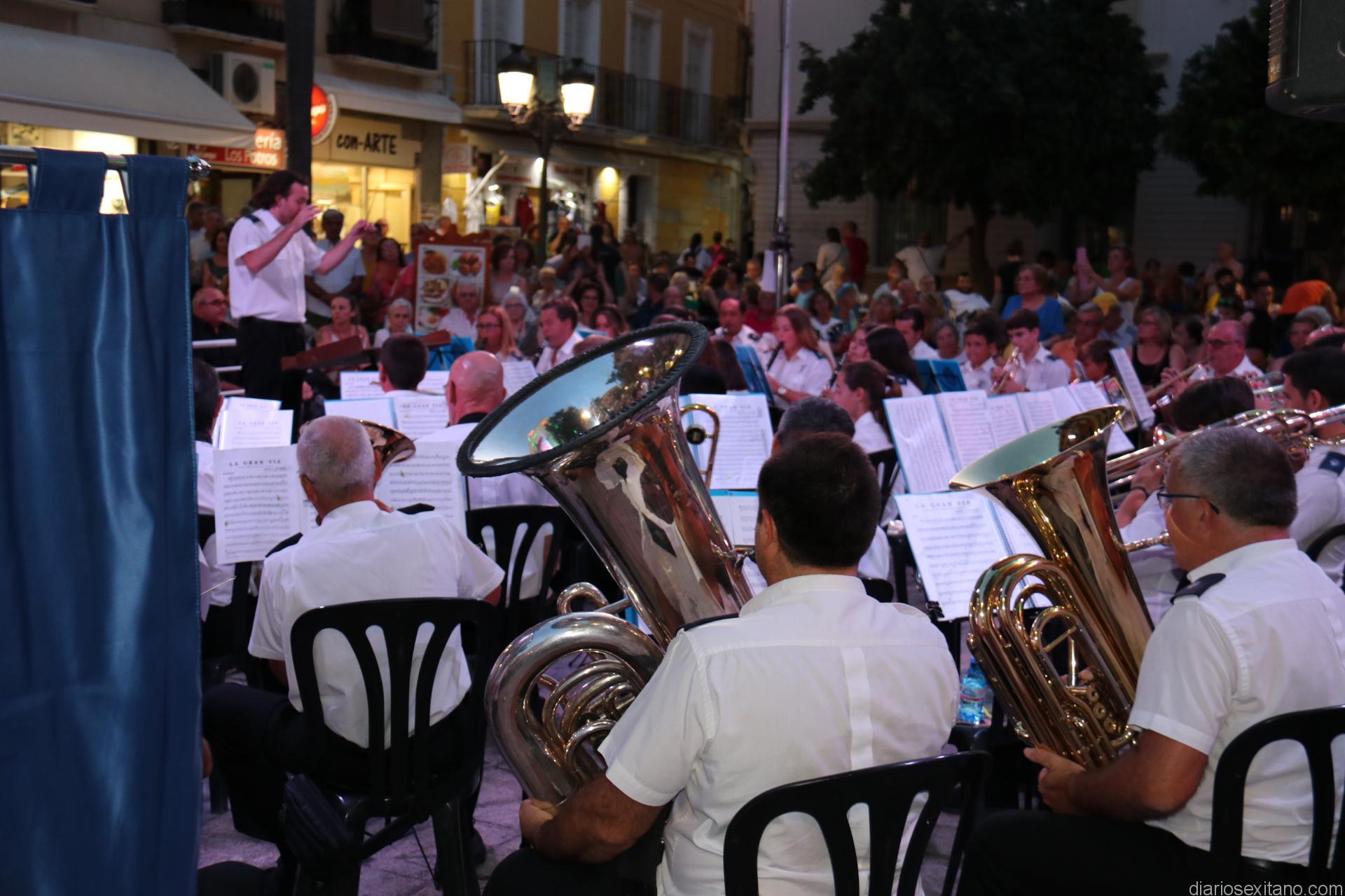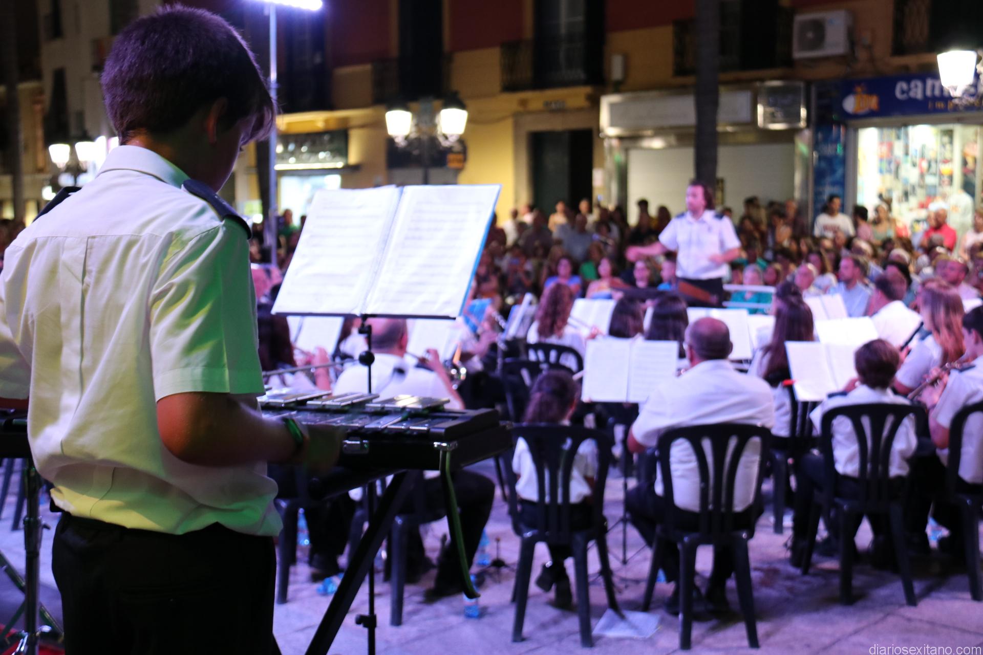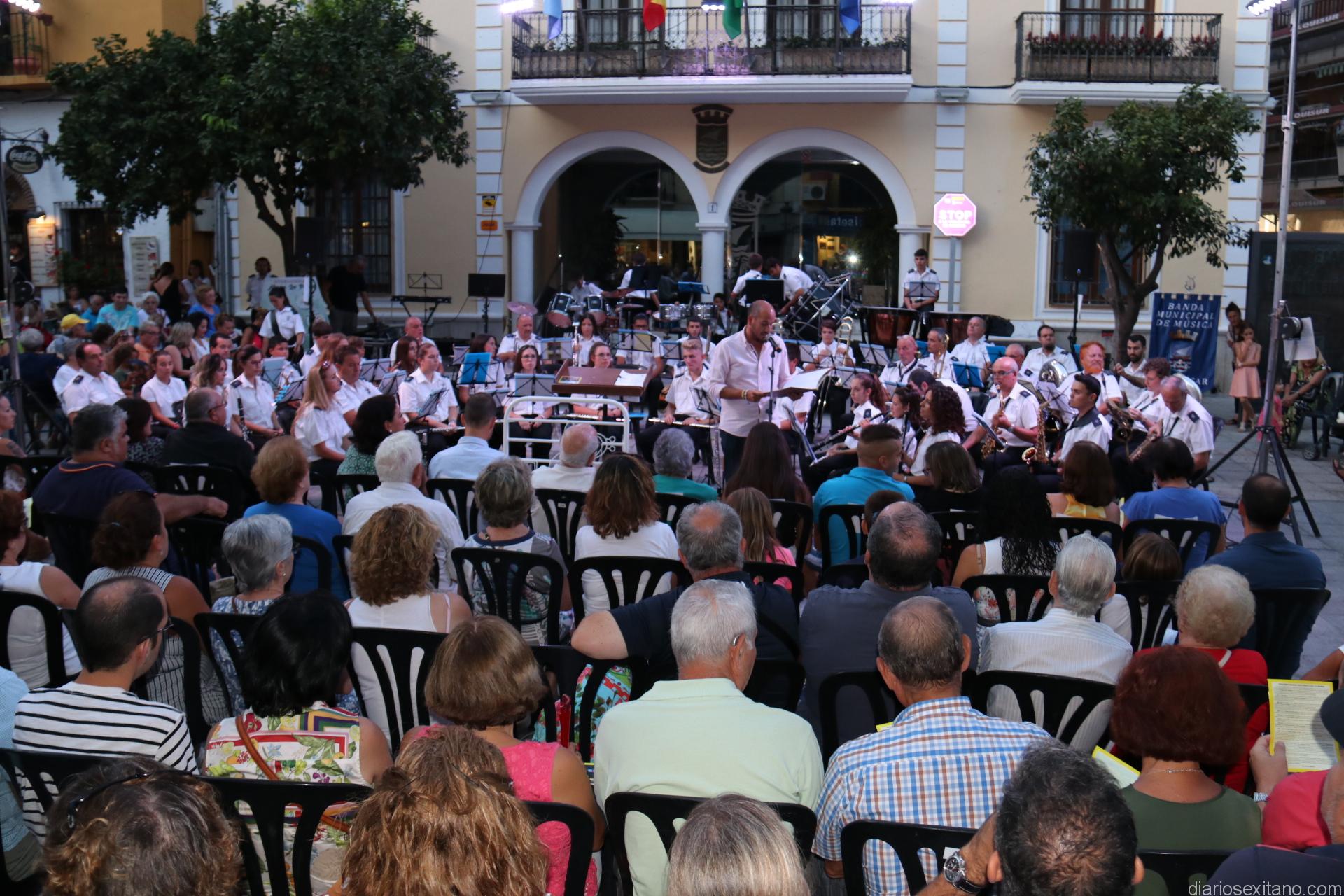 La plaza de la Constitución sexitana llena de público fue testigo de uno de los conciertos más brillantes que ha ofrecido la citada banda, bajo la dirección de David Pino Campos, y que no defraudó a nadie.