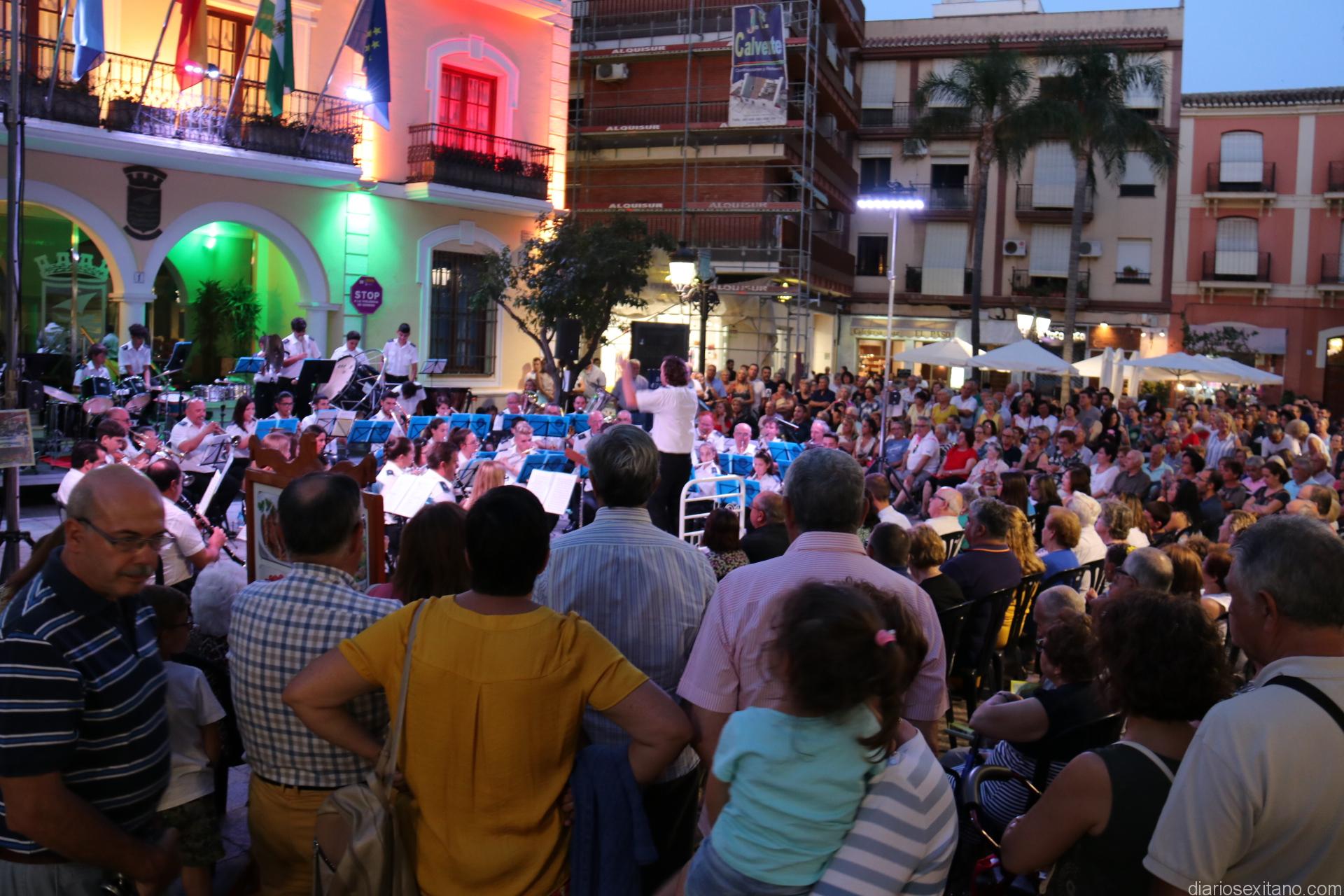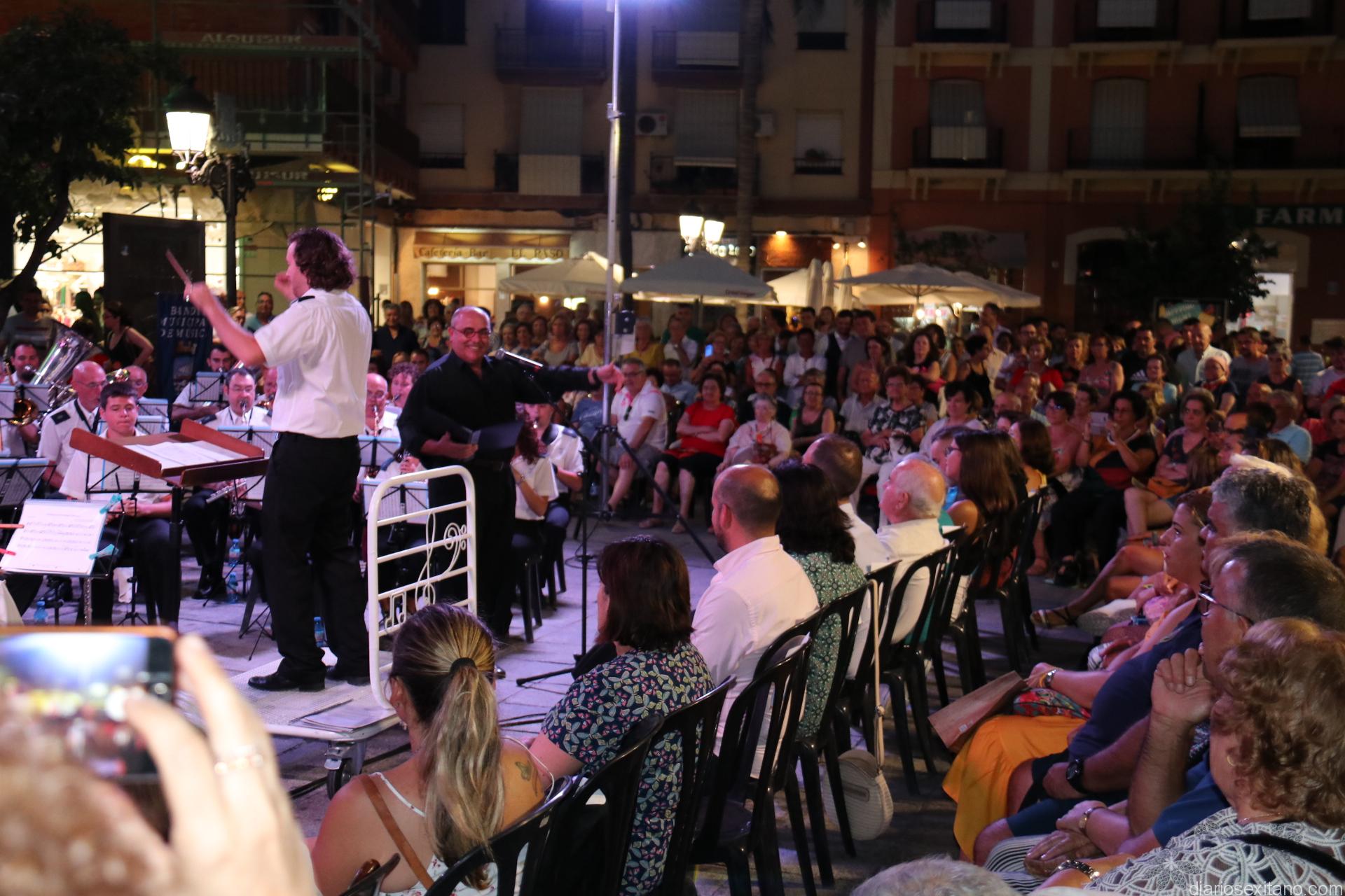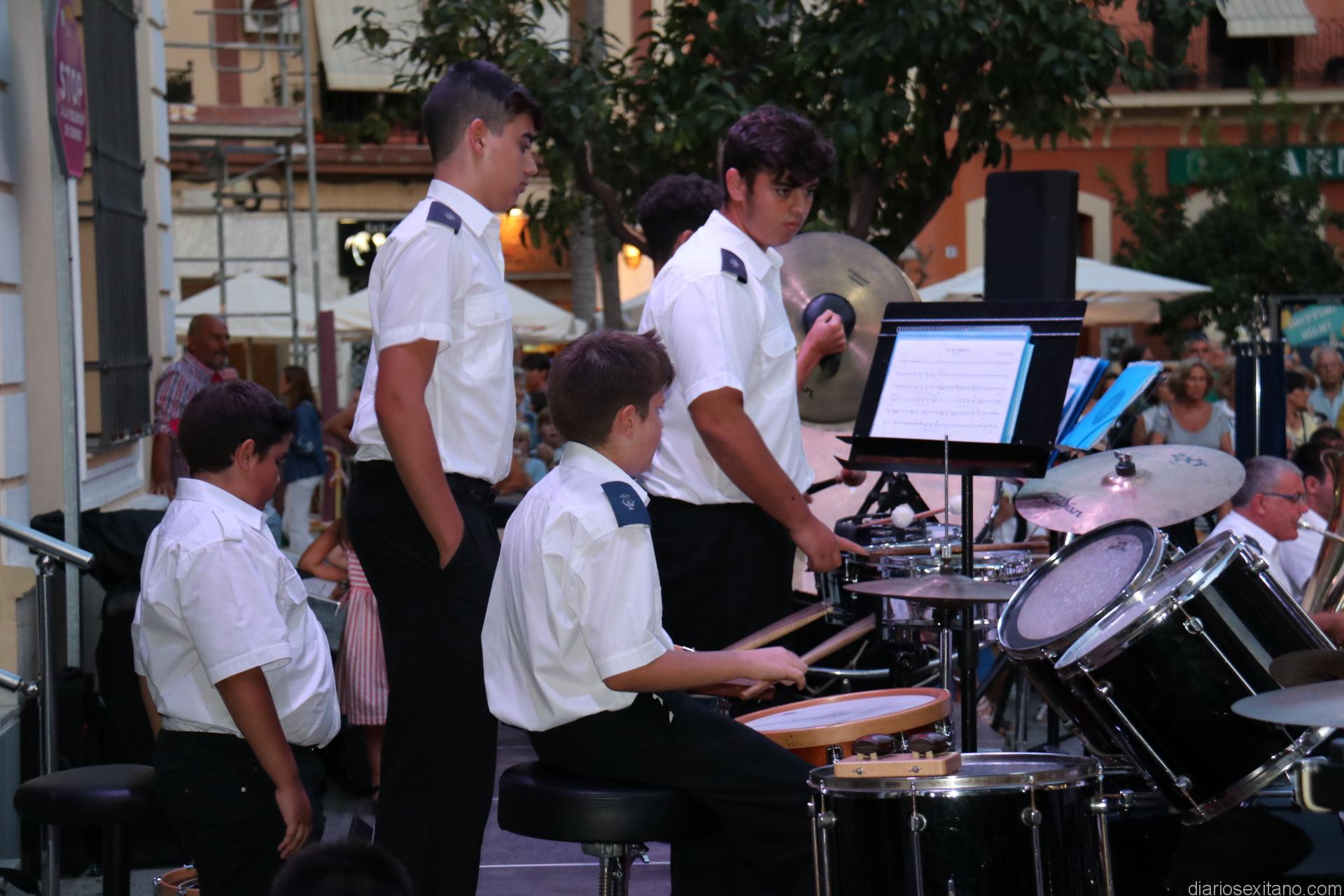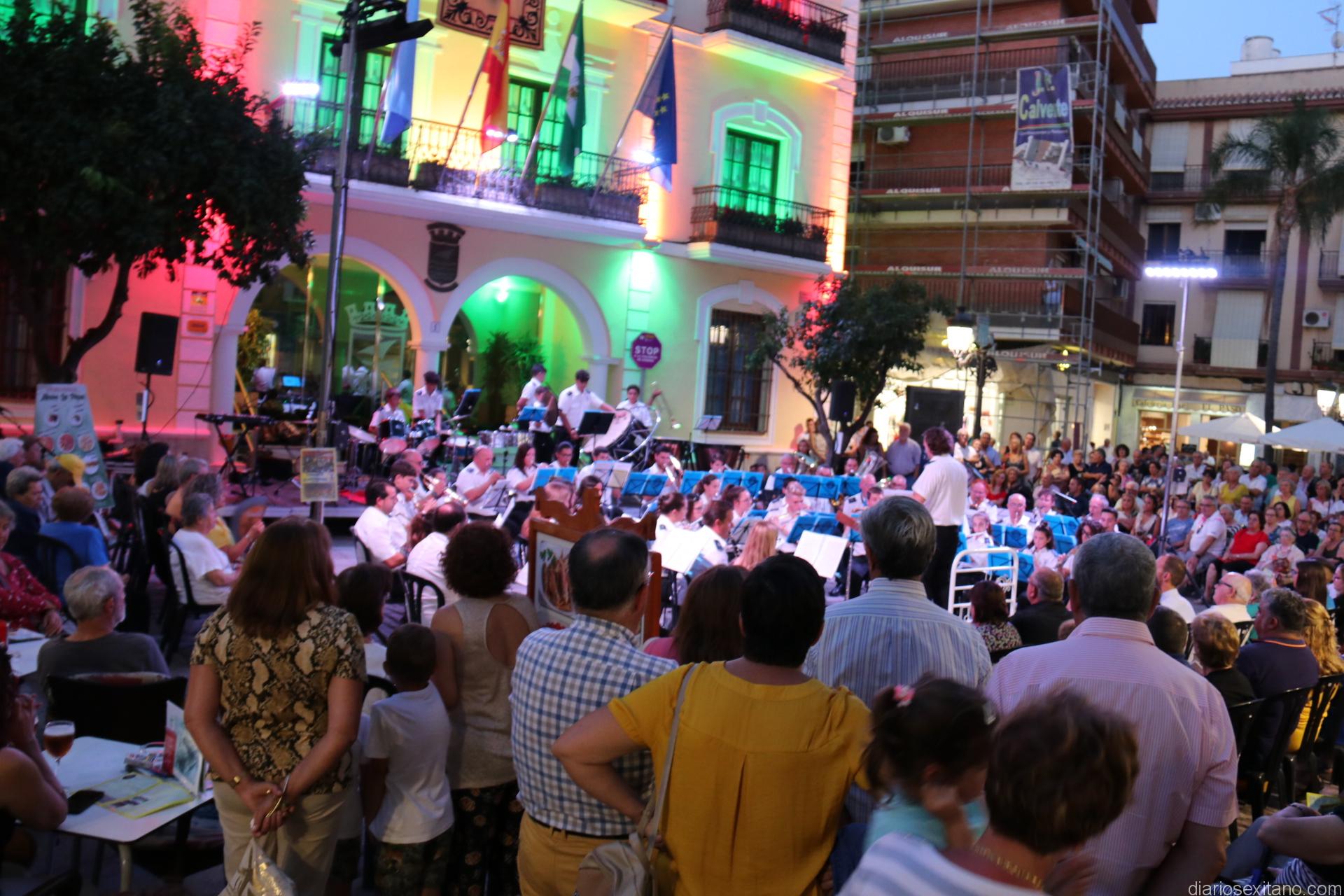 La plaza de la Constitución sexitana llena de público fue testigo de uno de los conciertos más brillantes que ha ofrecido la citada banda, bajo la dirección de David Pino Campos, y que no defraudó a nadie.