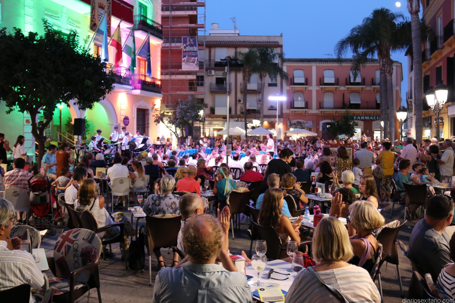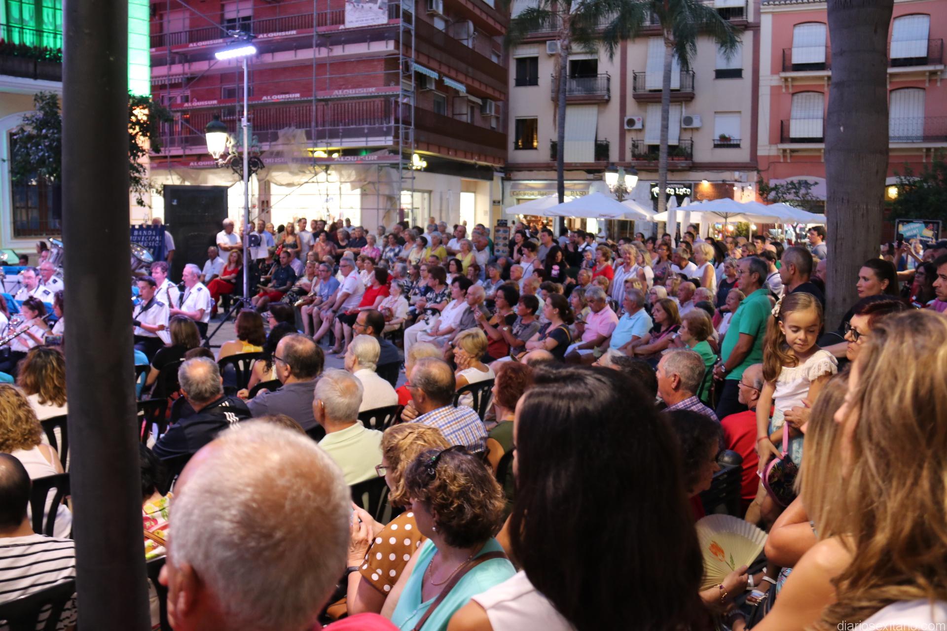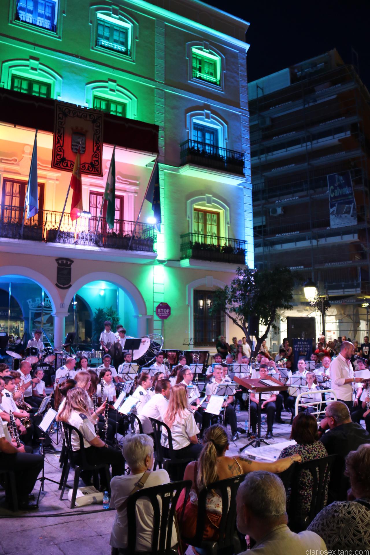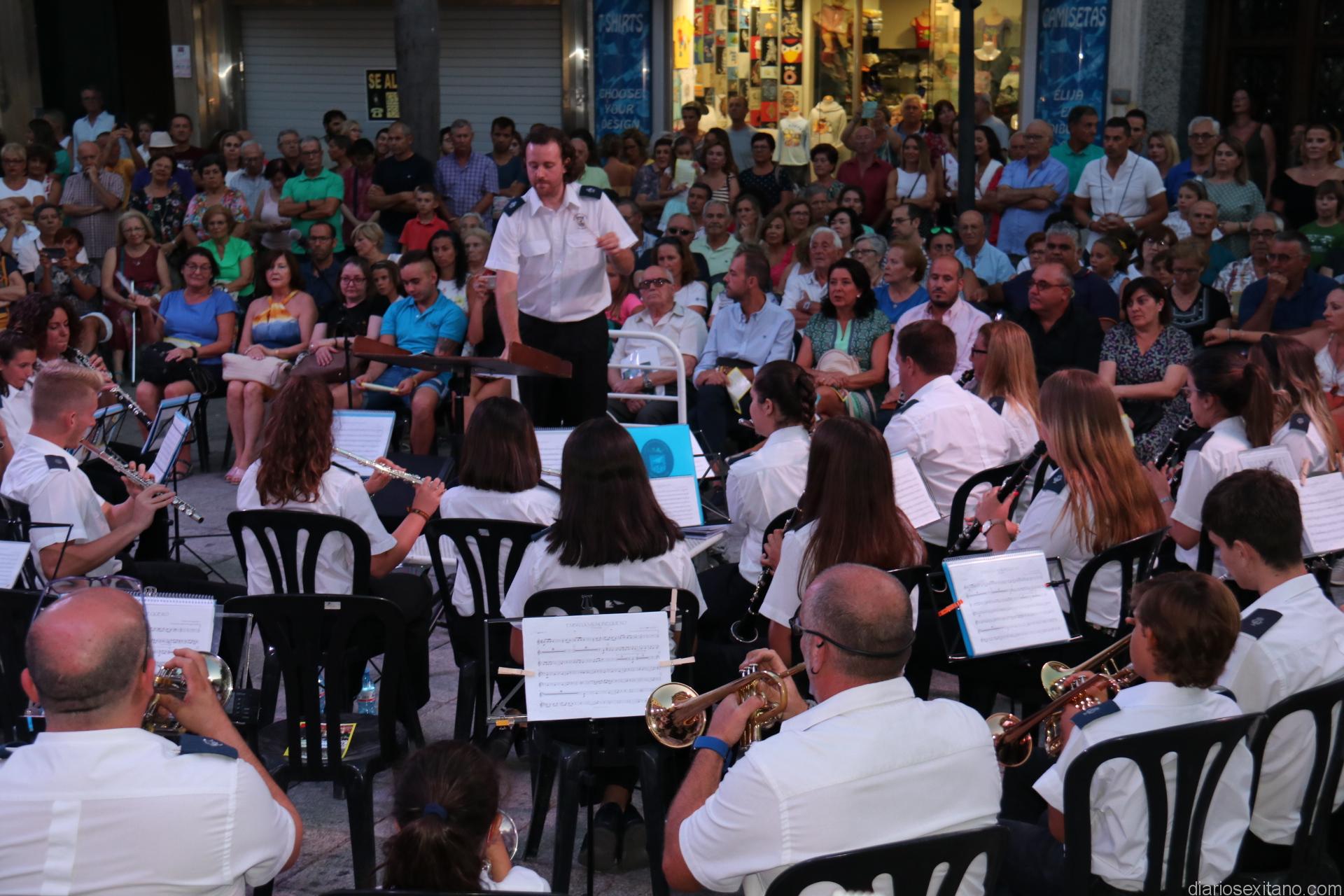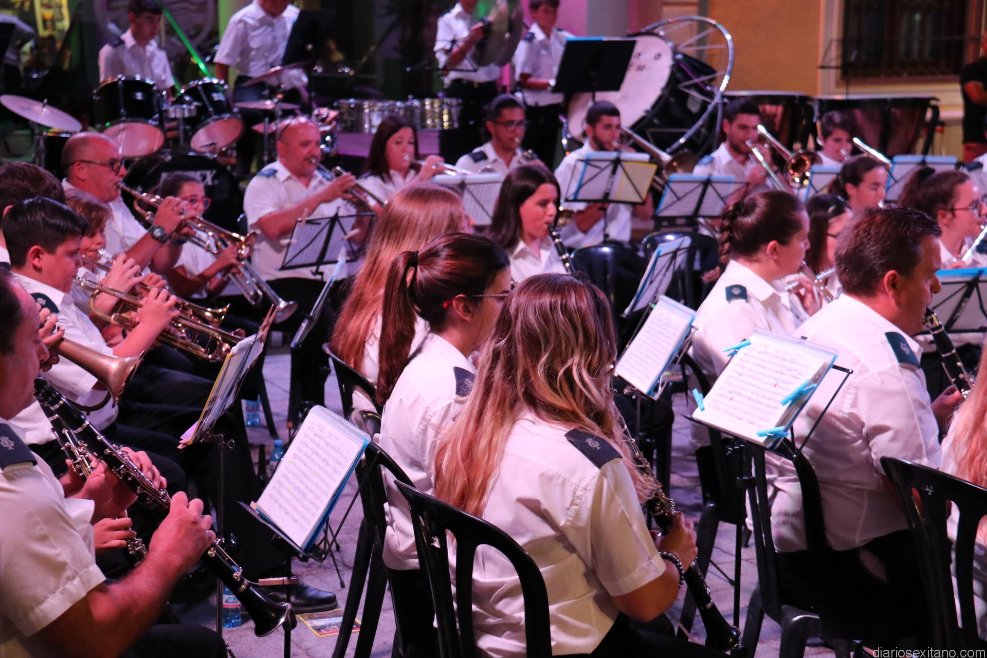 La plaza de la Constitución sexitana llena de público fue testigo de uno de los conciertos más brillantes que ha ofrecido la citada banda, bajo la dirección de David Pino Campos, y que no defraudó a nadie.