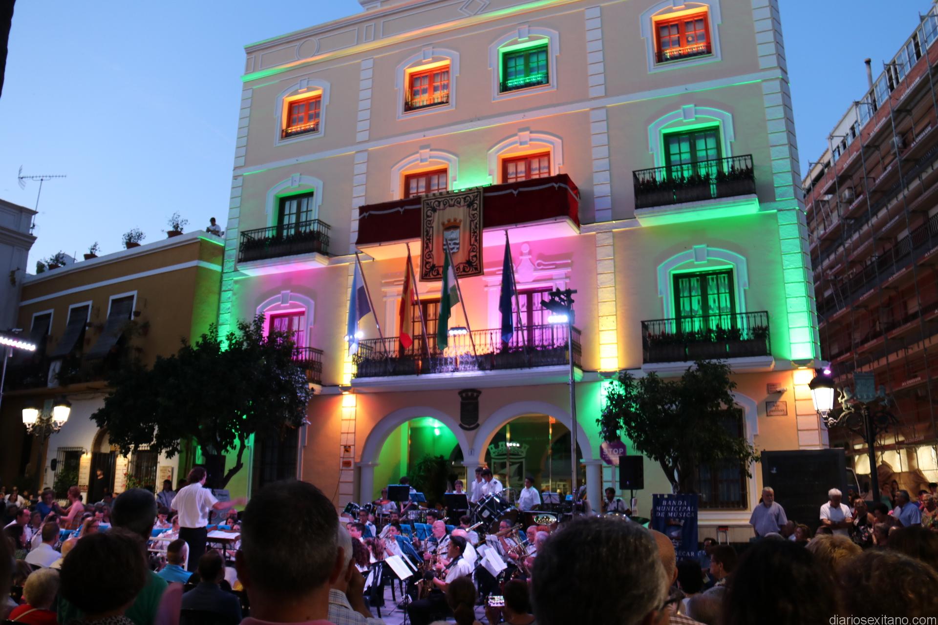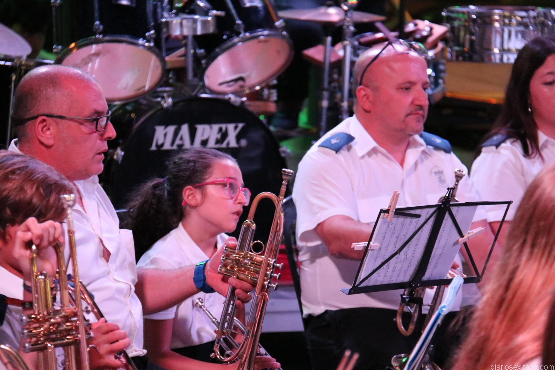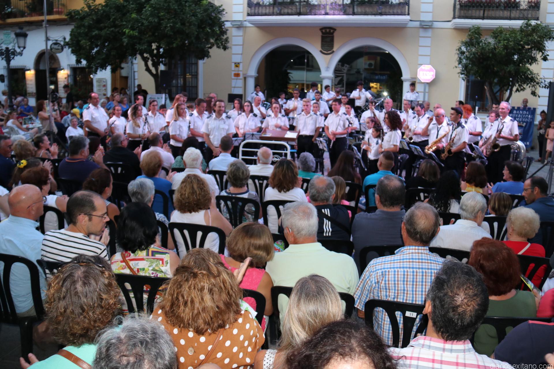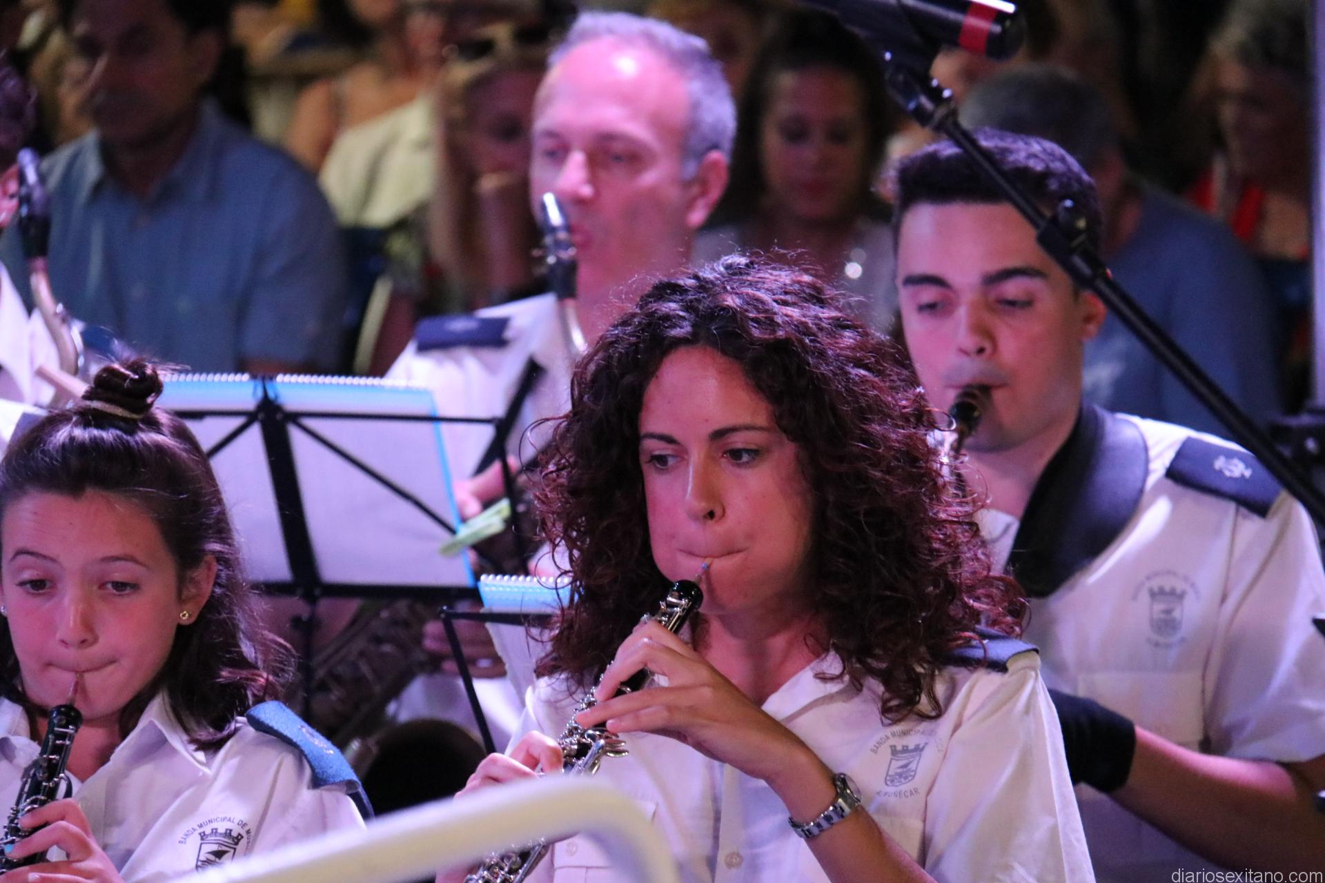 La plaza de la Constitución sexitana llena de público fue testigo de uno de los conciertos más brillantes que ha ofrecido la citada banda, bajo la dirección de David Pino Campos, y que no defraudó a nadie.