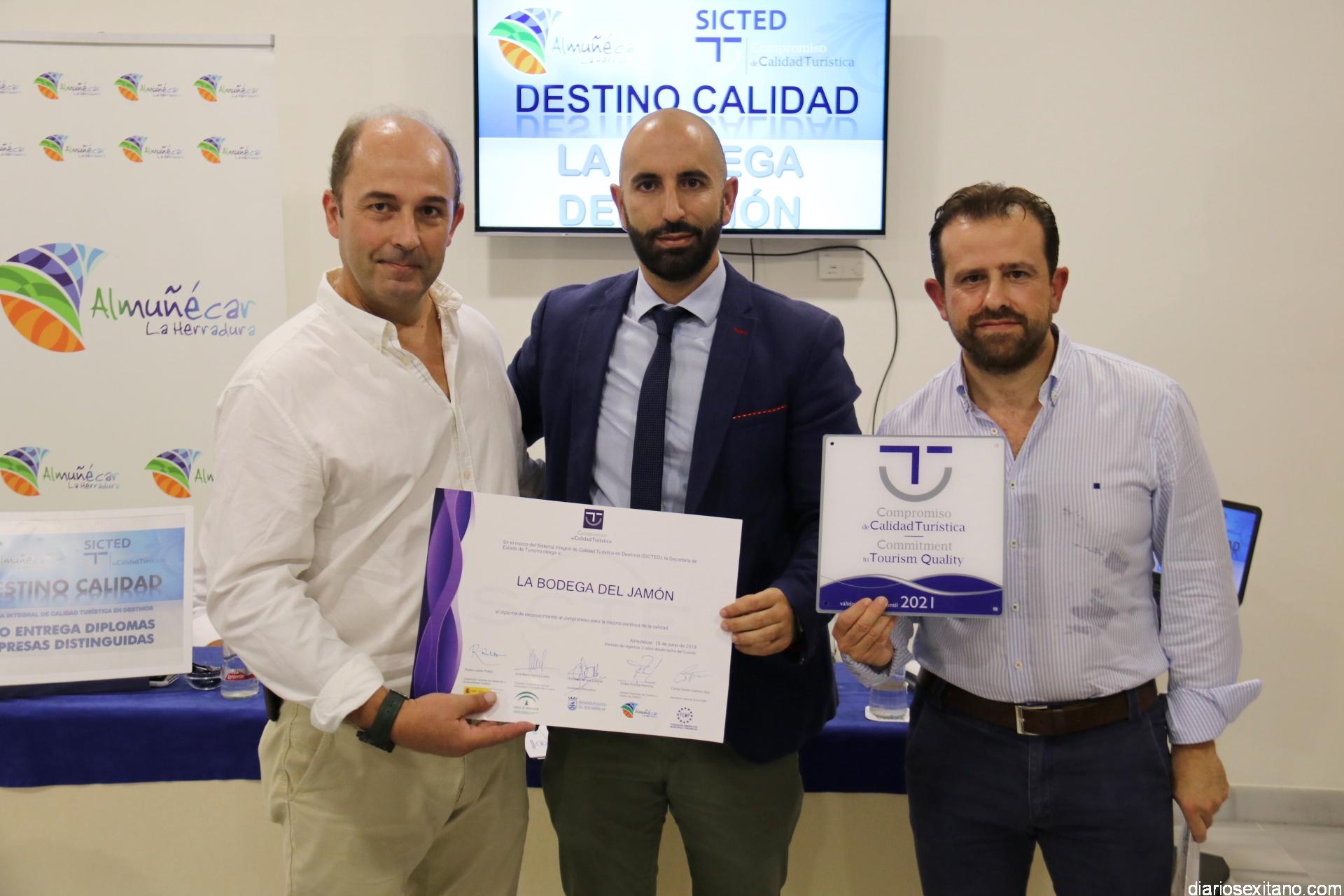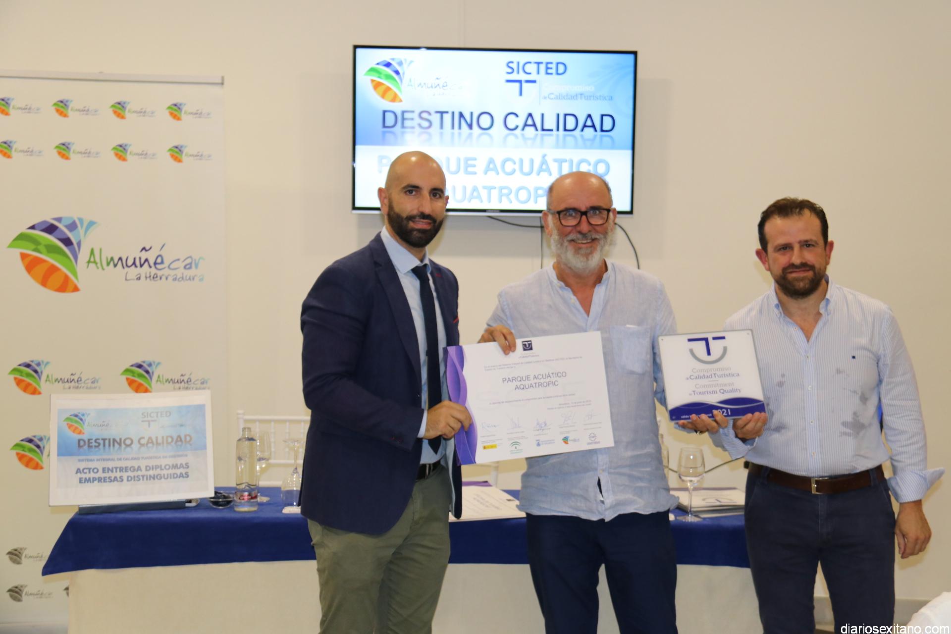La empresas y servicios que han conseguido el diploma y la placa de “Compromiso Calidad Turística” son: La Bodega del Jamón, Pastelería Mari Trini, Parque Acuático “Aquatropic”, Buceo Natura, Taxi Marcos Corral, Chiringuito La Sardina, Hotel Victoria Playa, así como los servicios: Oficina de Turismo Almuñécar y las playas de La Herradura, San Cristóbal, Puerta del Mar y Velilla.
