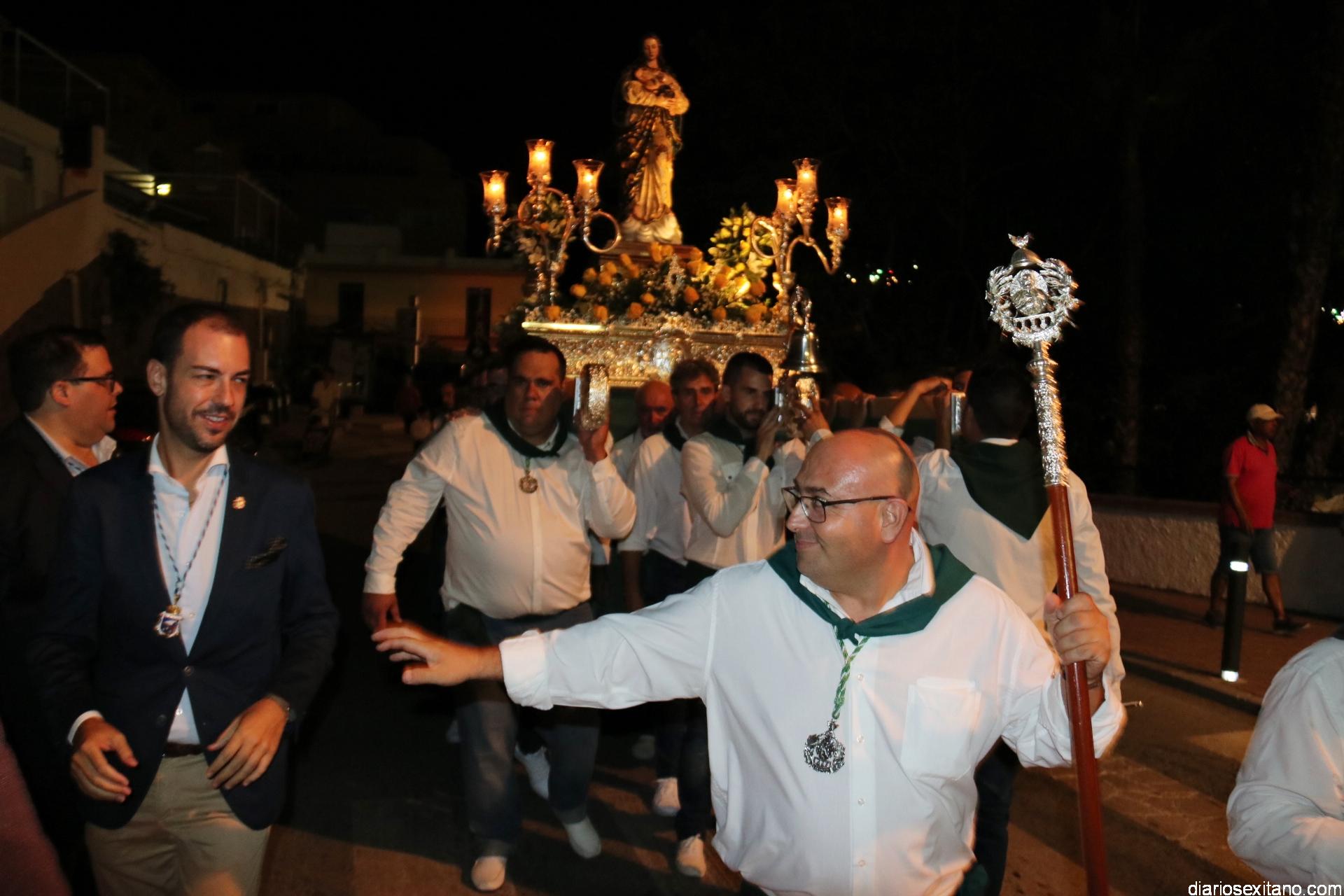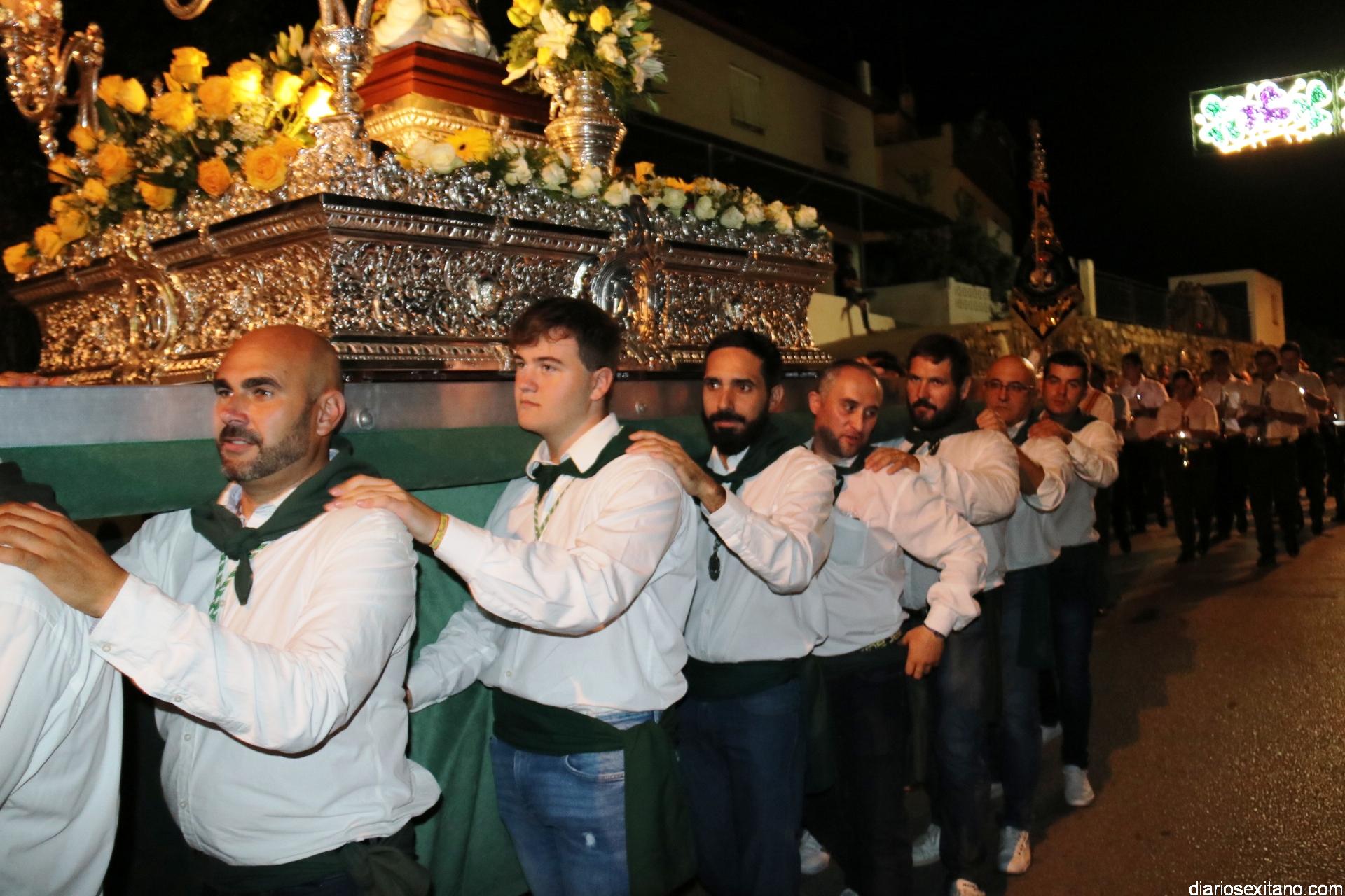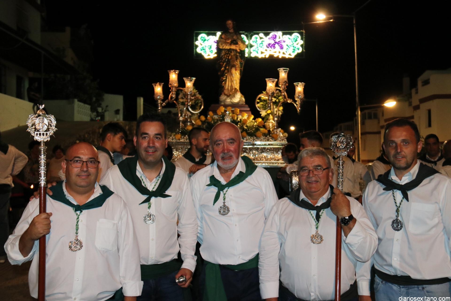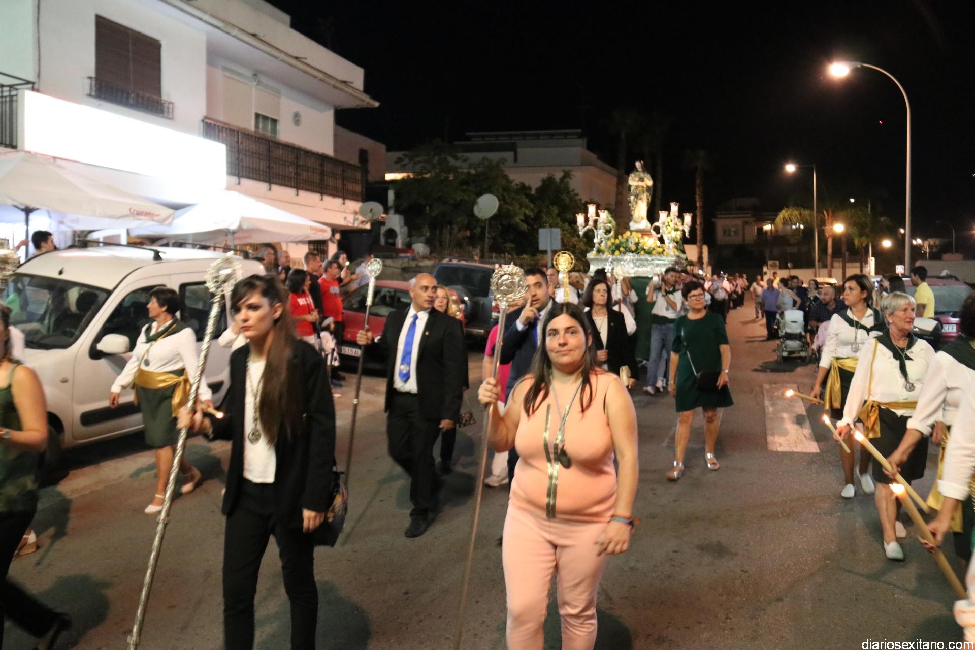 Ya por la tarde la Hermandad Virgen Madre tomaba su protagonismo en la organización de la procesión por el barrio, tras la celebración de la santa misa. La Imagen, acompañada por la Agrupación Musical Nuestra Señora de la Encarnación de Almuñécar, salió de la capilla y puso rumbo a la zona de Caicillos. En la salida no faltaron los bailes que ofrecieron Paola Almodóvar y su grupo de Andalucía Baila. Al cortejo se sumaron, en representación del Ayuntamiento, los ediles de Cultura y Fiestas, Alberto García Gilabert, junto con Rafael Caballero y Javier García, que fueron recibidos por el Hermano Mayor de la Hermandad, Lucas Vallejo.