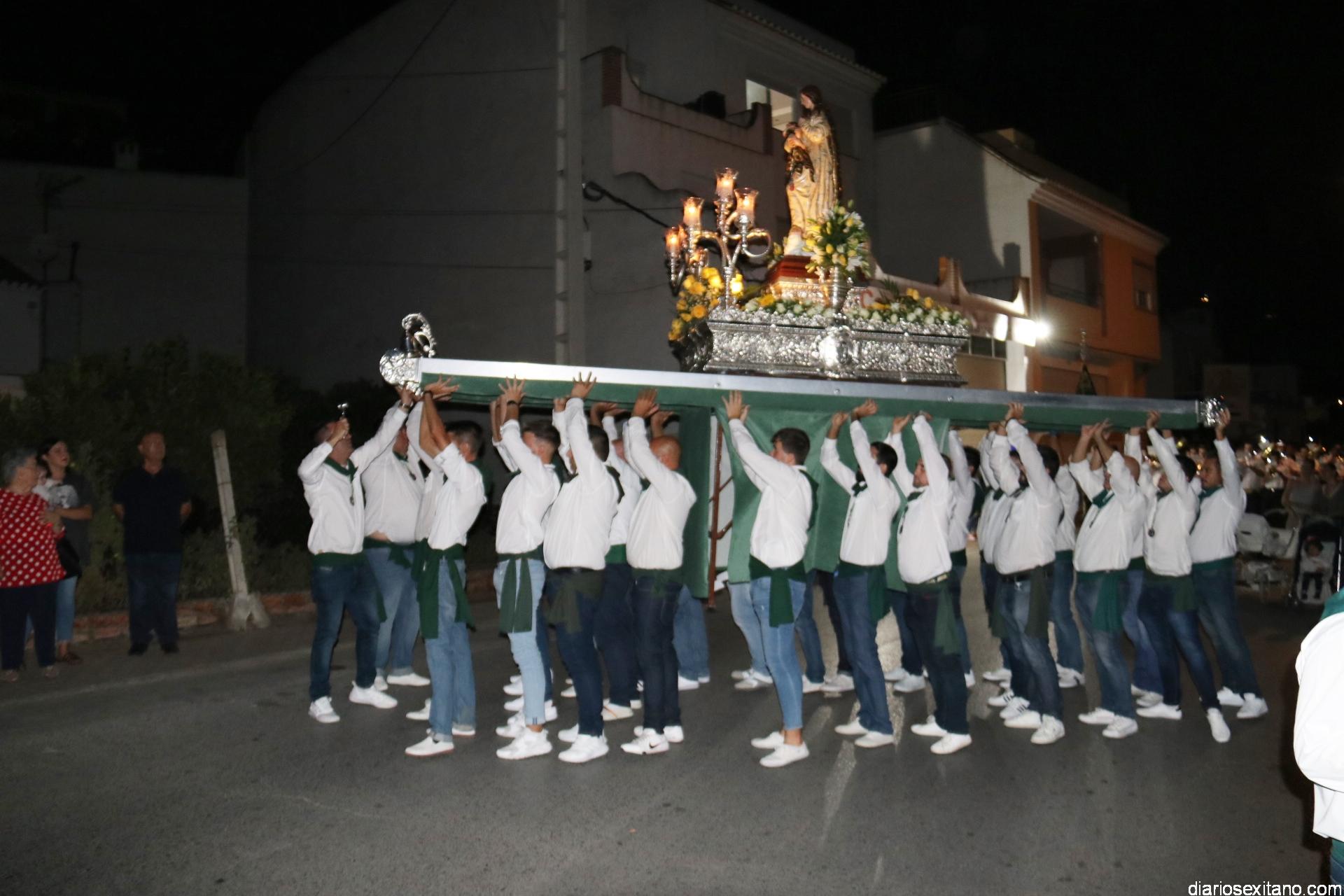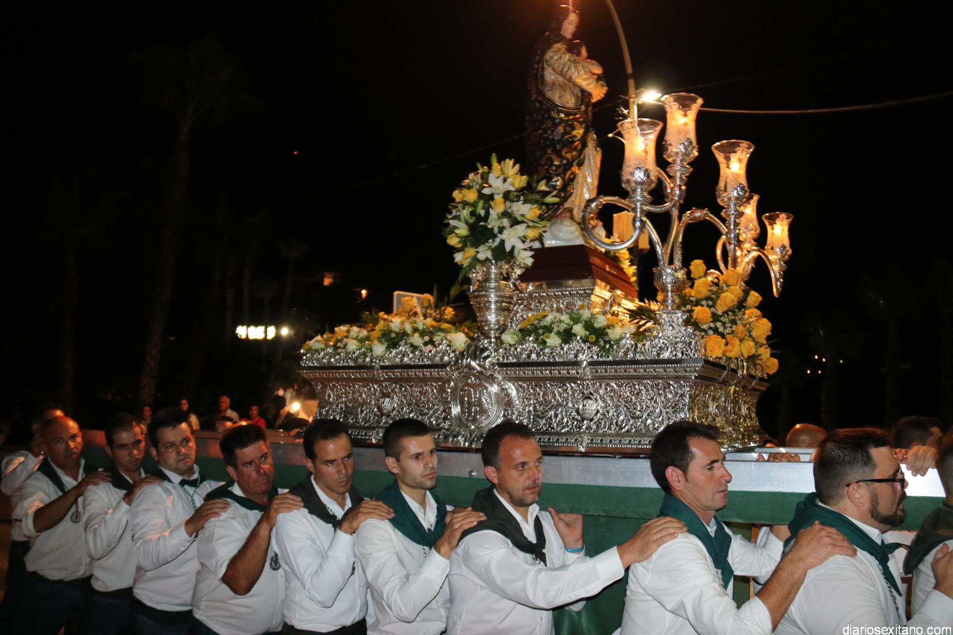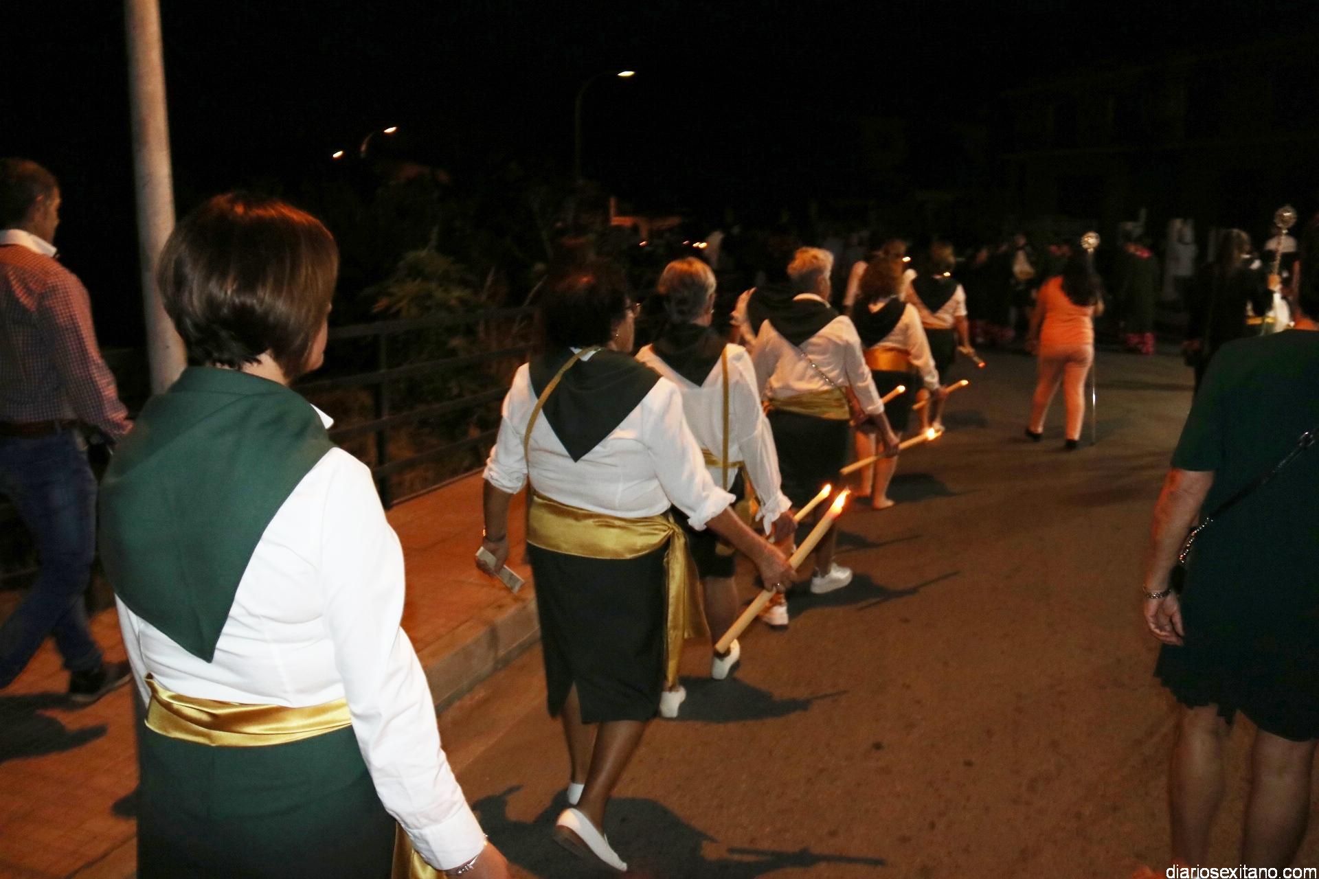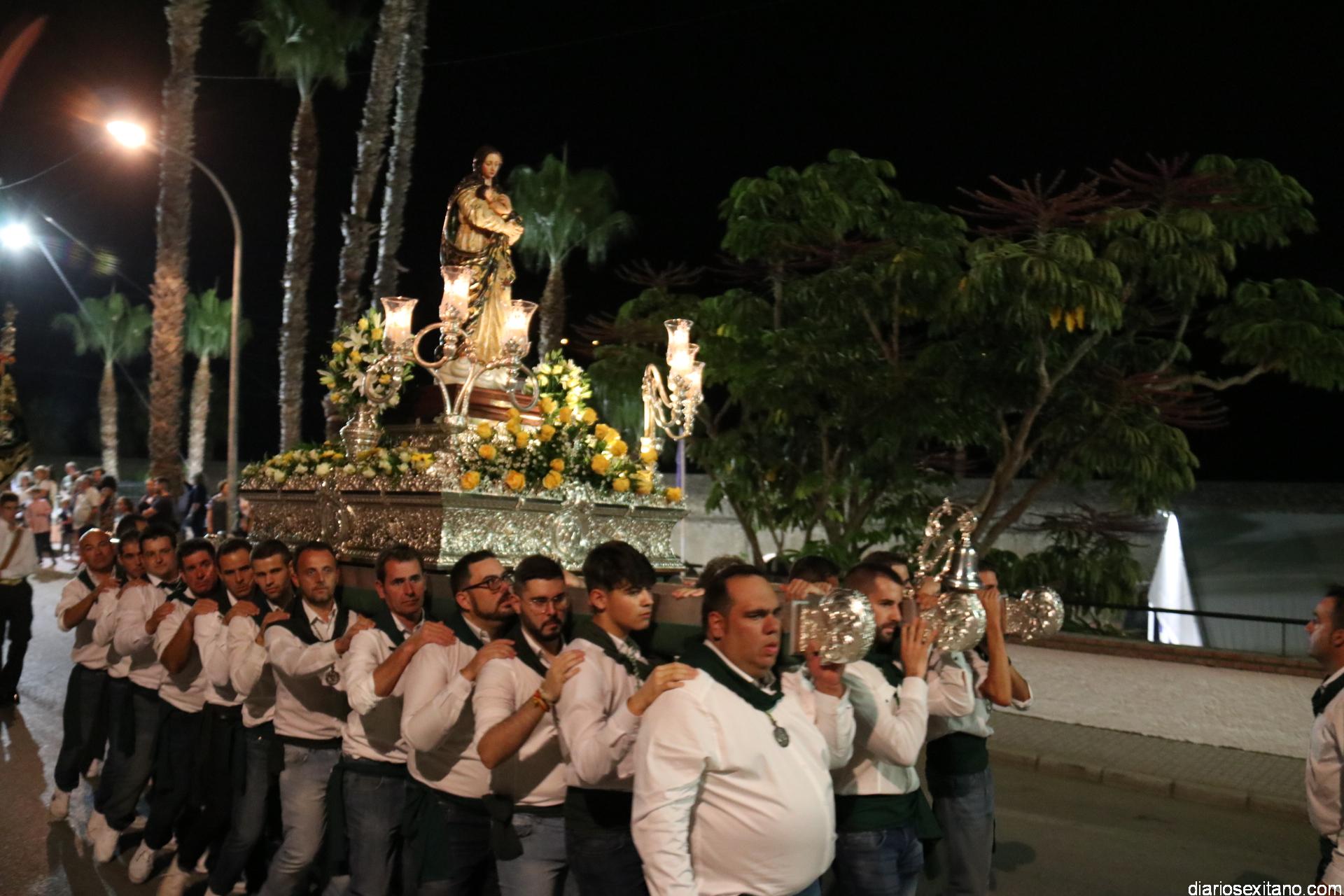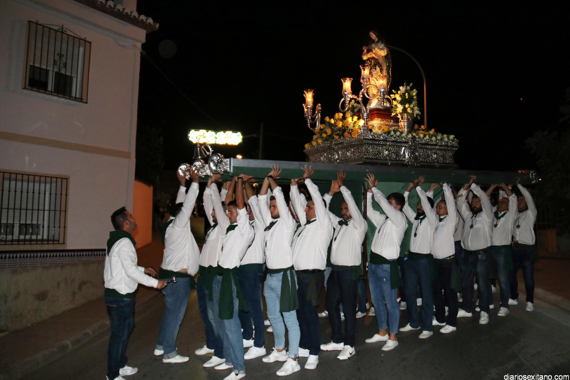 Ya por la tarde la Hermandad Virgen Madre tomaba su protagonismo en la organización de la procesión por el barrio, tras la celebración de la santa misa. La Imagen, acompañada por la Agrupación Musical Nuestra Señora de la Encarnación de Almuñécar, salió de la capilla y puso rumbo a la zona de Caicillos. En la salida no faltaron los bailes que ofrecieron Paola Almodóvar y su grupo de Andalucía Baila. Al cortejo se sumaron, en representación del Ayuntamiento, los ediles de Cultura y Fiestas, Alberto García Gilabert, junto con Rafael Caballero y Javier García, que fueron recibidos por el Hermano Mayor de la Hermandad, Lucas Vallejo.