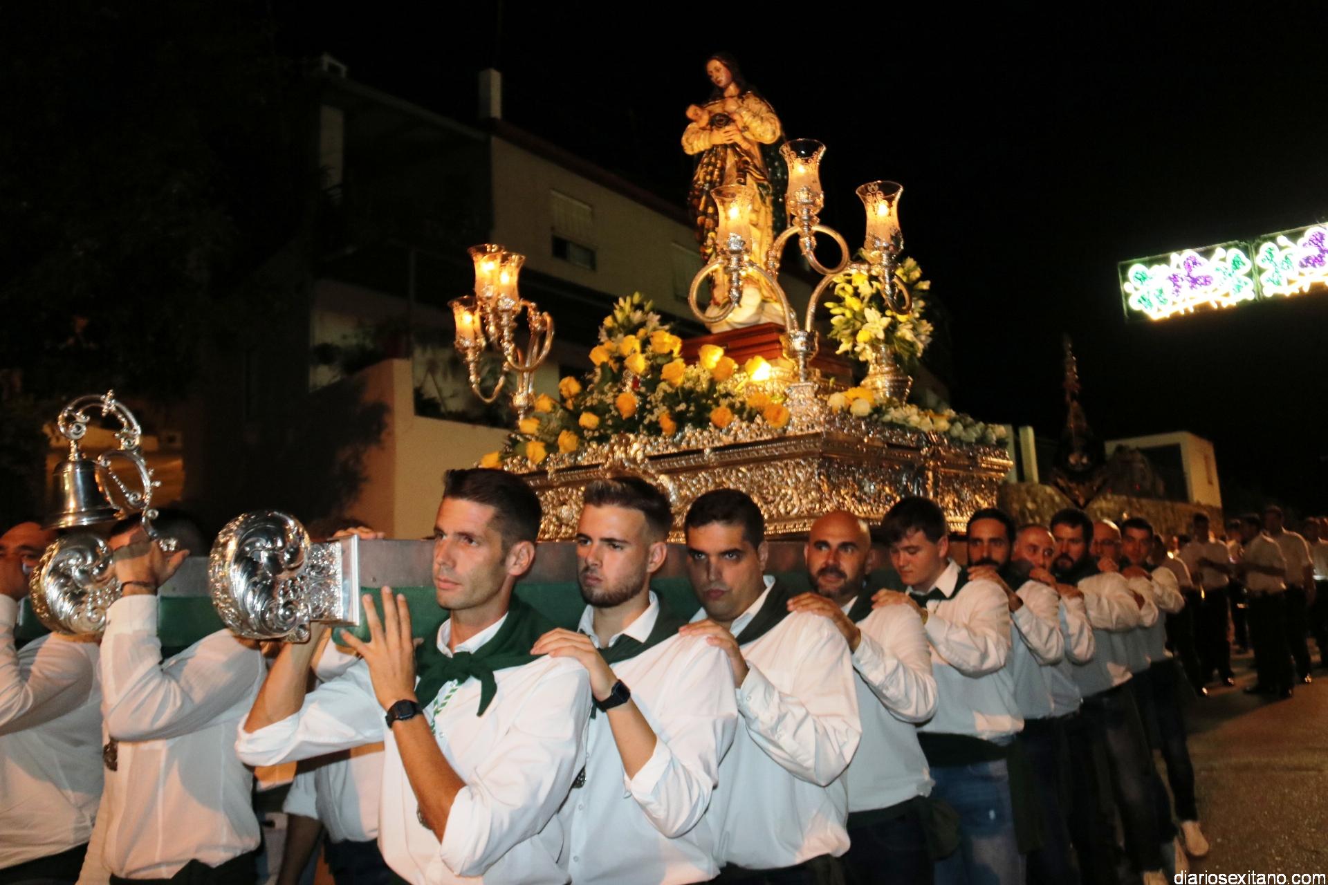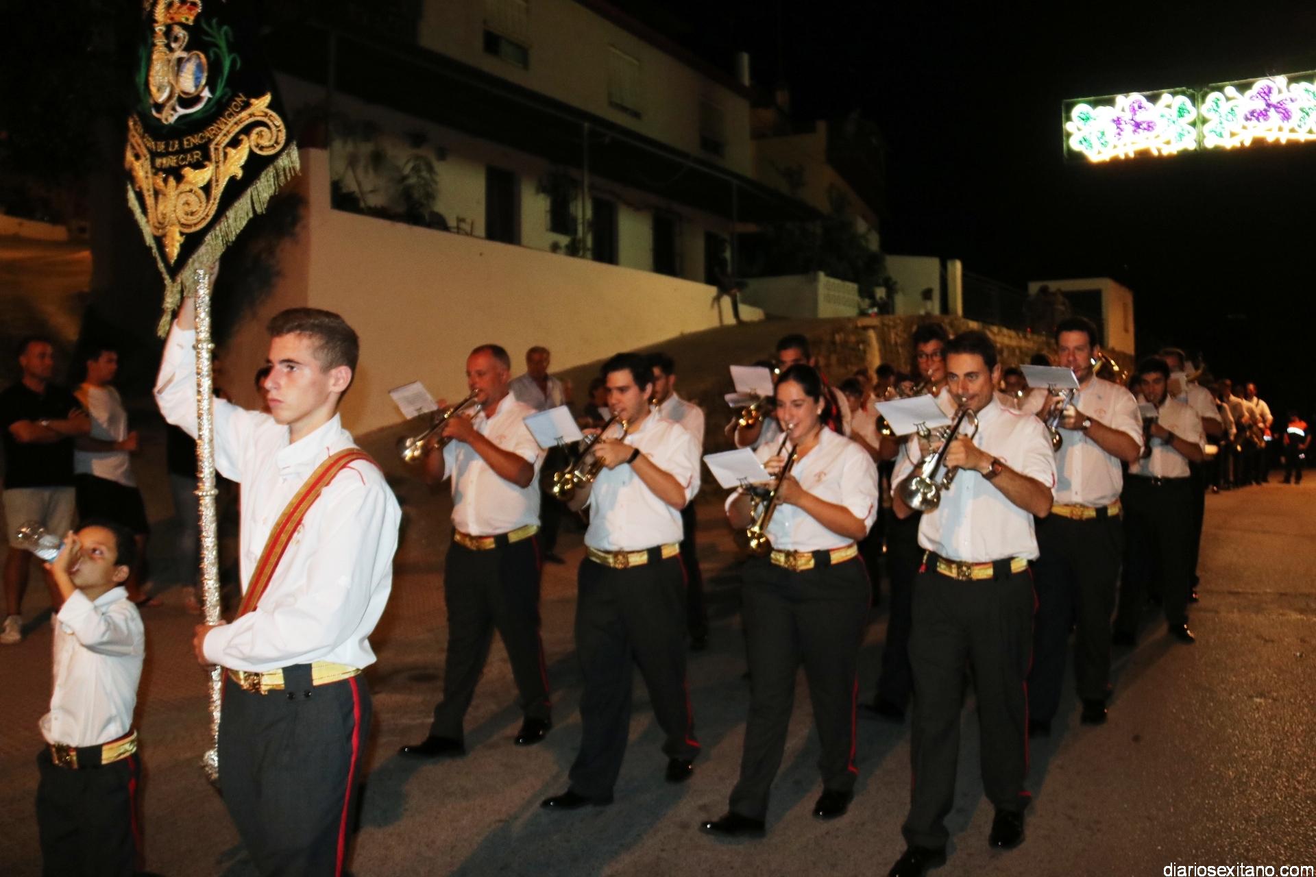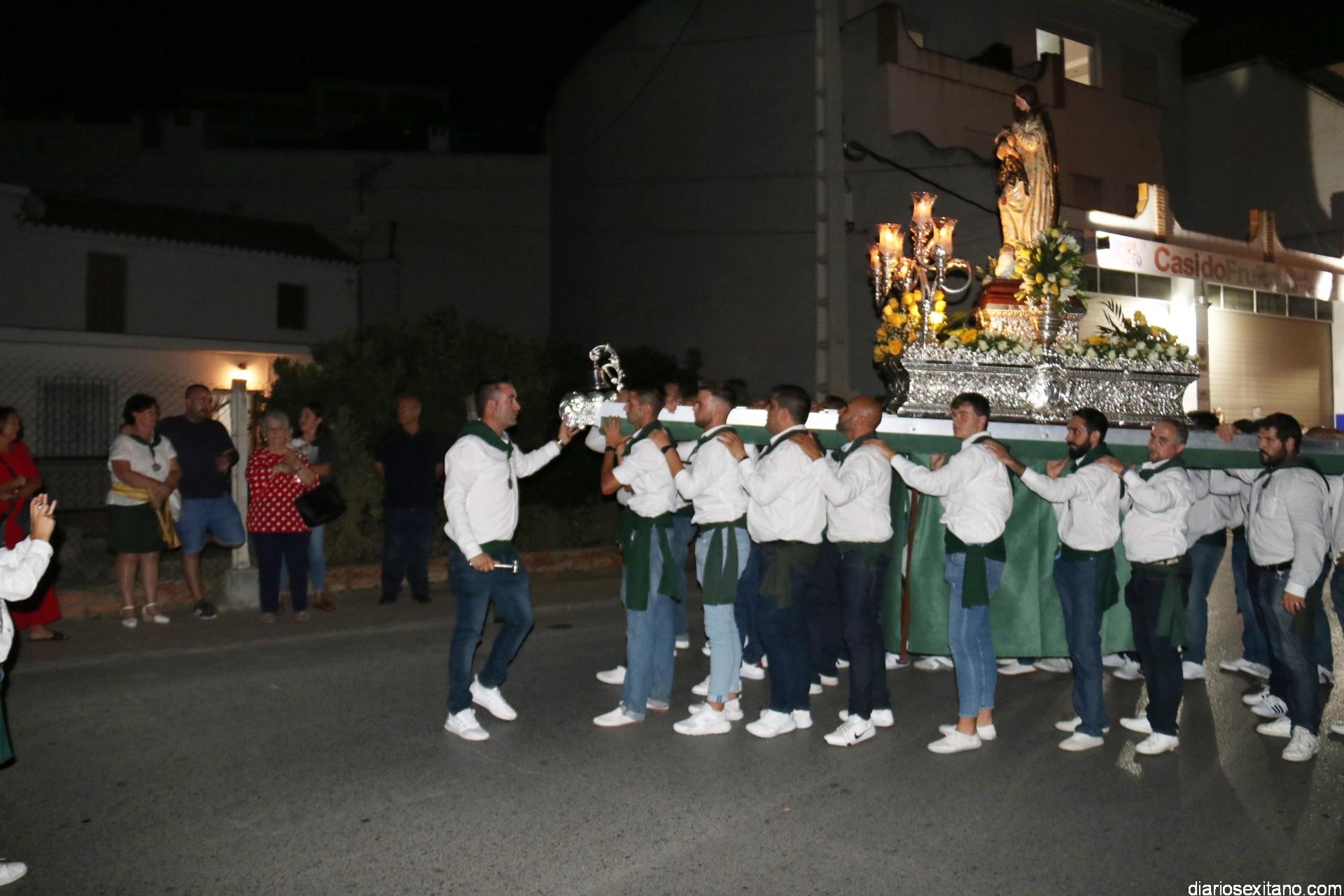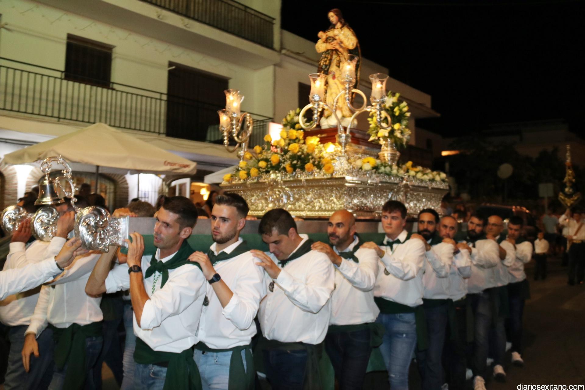 Ya por la tarde la Hermandad Virgen Madre tomaba su protagonismo en la organización de la procesión por el barrio, tras la celebración de la santa misa. La Imagen, acompañada por la Agrupación Musical Nuestra Señora de la Encarnación de Almuñécar, salió de la capilla y puso rumbo a la zona de Caicillos. En la salida no faltaron los bailes que ofrecieron Paola Almodóvar y su grupo de Andalucía Baila. Al cortejo se sumaron, en representación del Ayuntamiento, los ediles de Cultura y Fiestas, Alberto García Gilabert, junto con Rafael Caballero y Javier García, que fueron recibidos por el Hermano Mayor de la Hermandad, Lucas Vallejo.