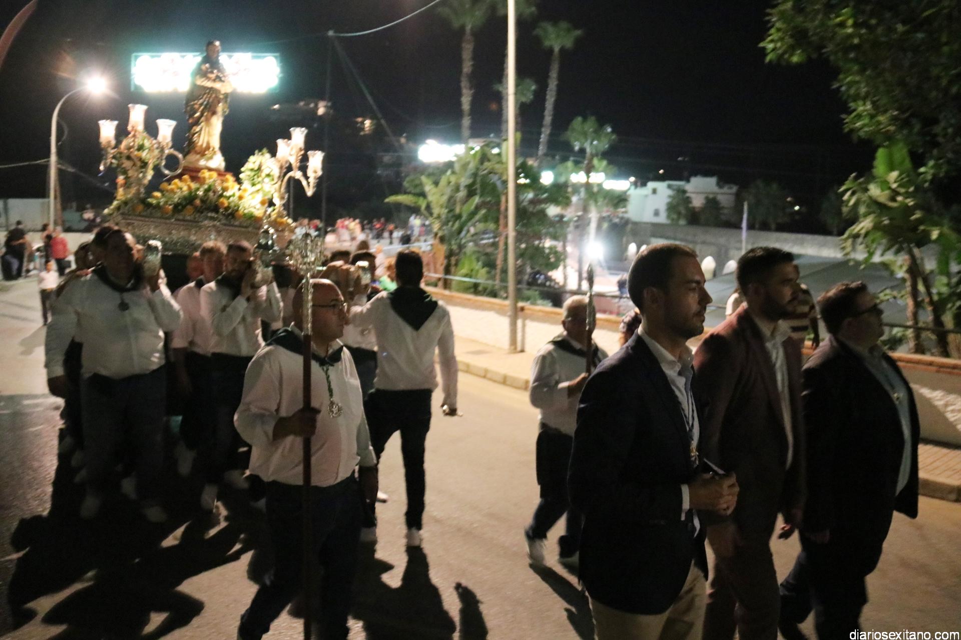 Como es tradicional la procesión, al ocupar la carretera autonómica que comunica Almuñécar con los demás pueblos de Valle de Río Verde y Granada, contó con la colaboración de la Policía Local y Protección Civil.