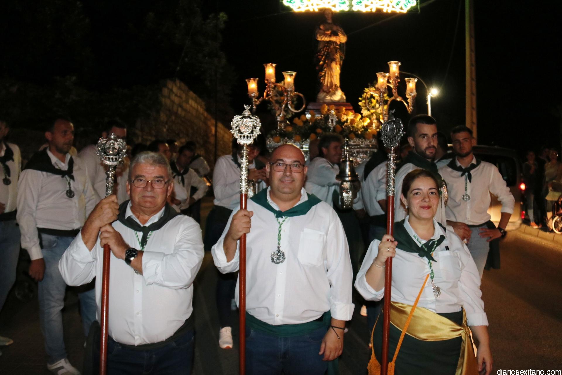 Ya de vuelta la Imagen a ermita, vecinos y visitantes disfrutaron del gran castillo de fuegos artificiales en la Rambla, antes de concentrarse en la caseta oficial donde la Orquesta Blanco y Negro animó la noche hasta bien entrada la madrugada.